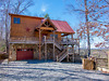 Large cedar log home. Soaring great room with river rock fireplace, sep. dining room. Huge master on...
