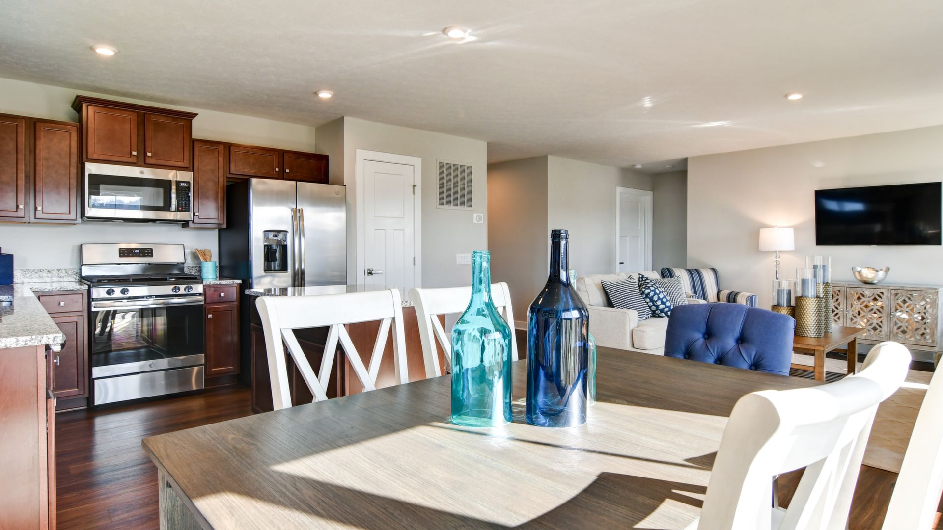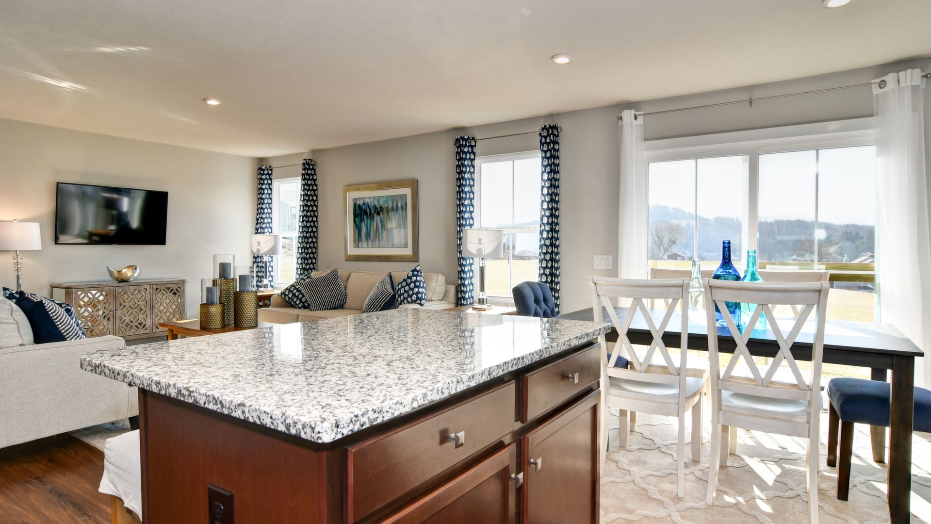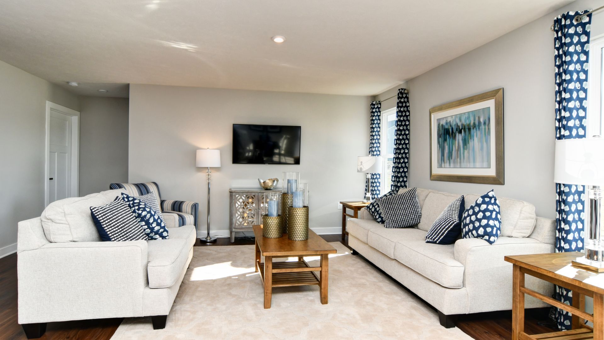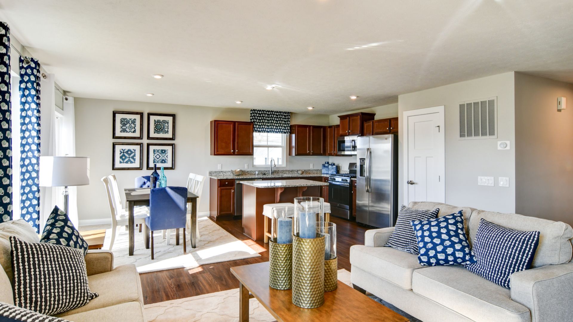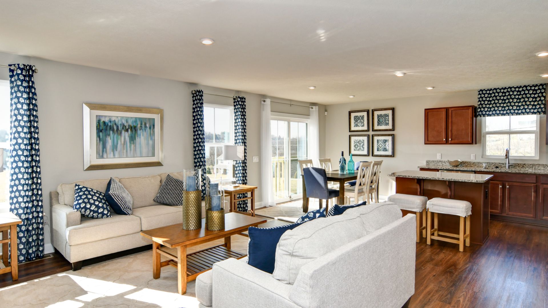 Come see this gorgeous one-level ranch home, it won't last long! Beautiful partial stone cottage style exterior with upgraded landscaping, an irrigation lawn system and spacious backyard. This home features 2 bedrooms, office, 2 full baths, huge laundry room, kitchen island with granite countertops, walk-in shower in master bedroom, ceramic tile in both bathrooms and laundry room, carpet in bedrooms & luxury vinyl flooring throughout the rest of the home. All stainless steel kitchen appliances included. Includes security system. This model home includes all window treatments, area rugs, & bedding. A must see!