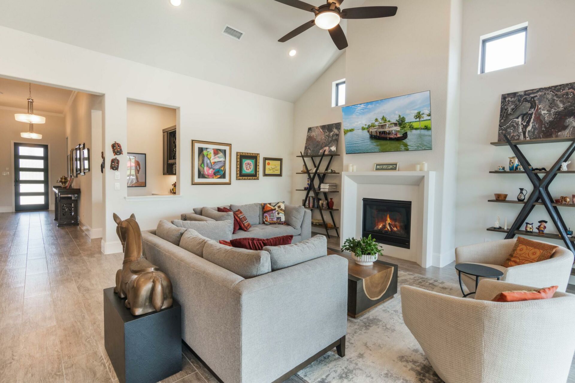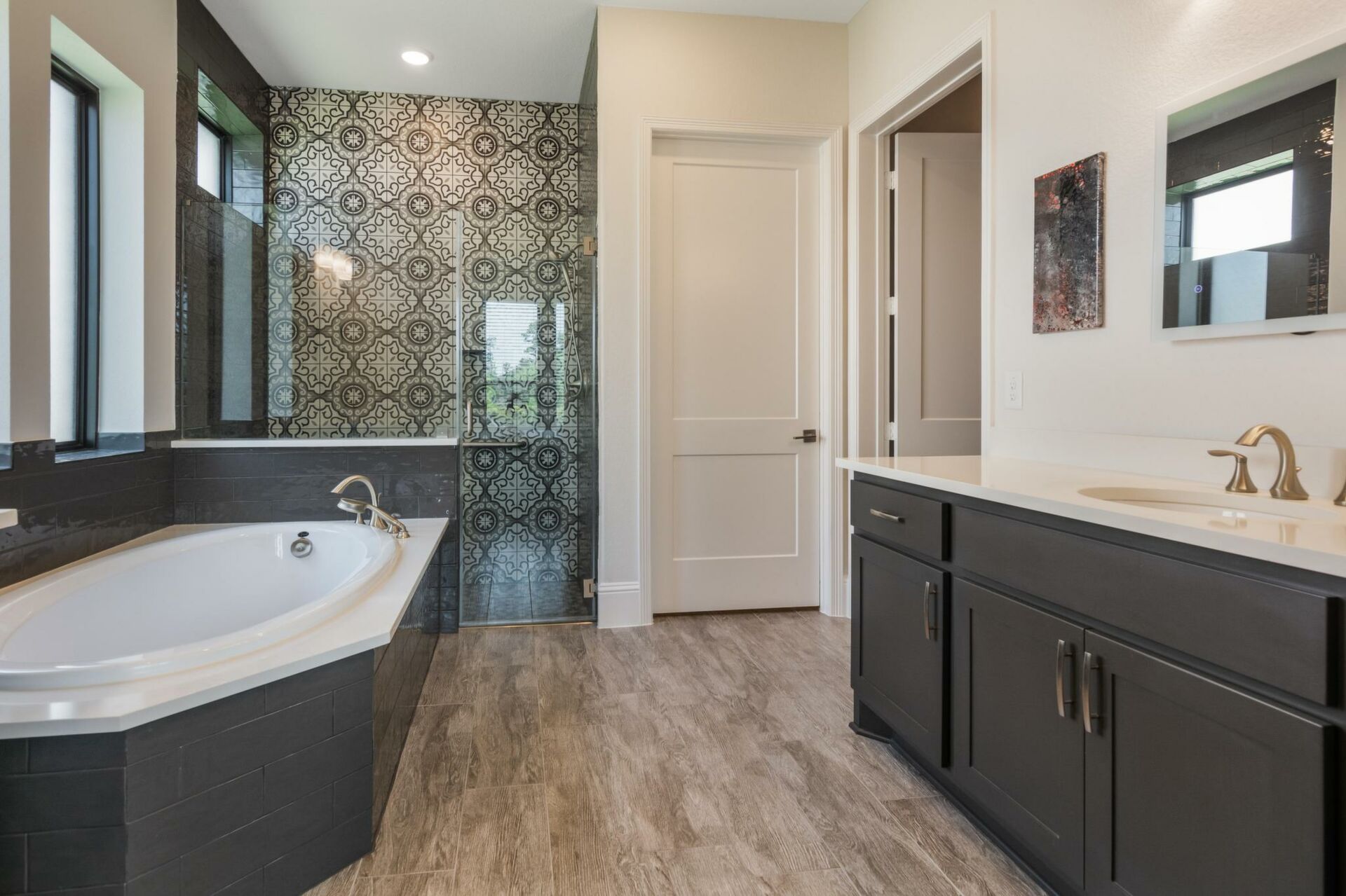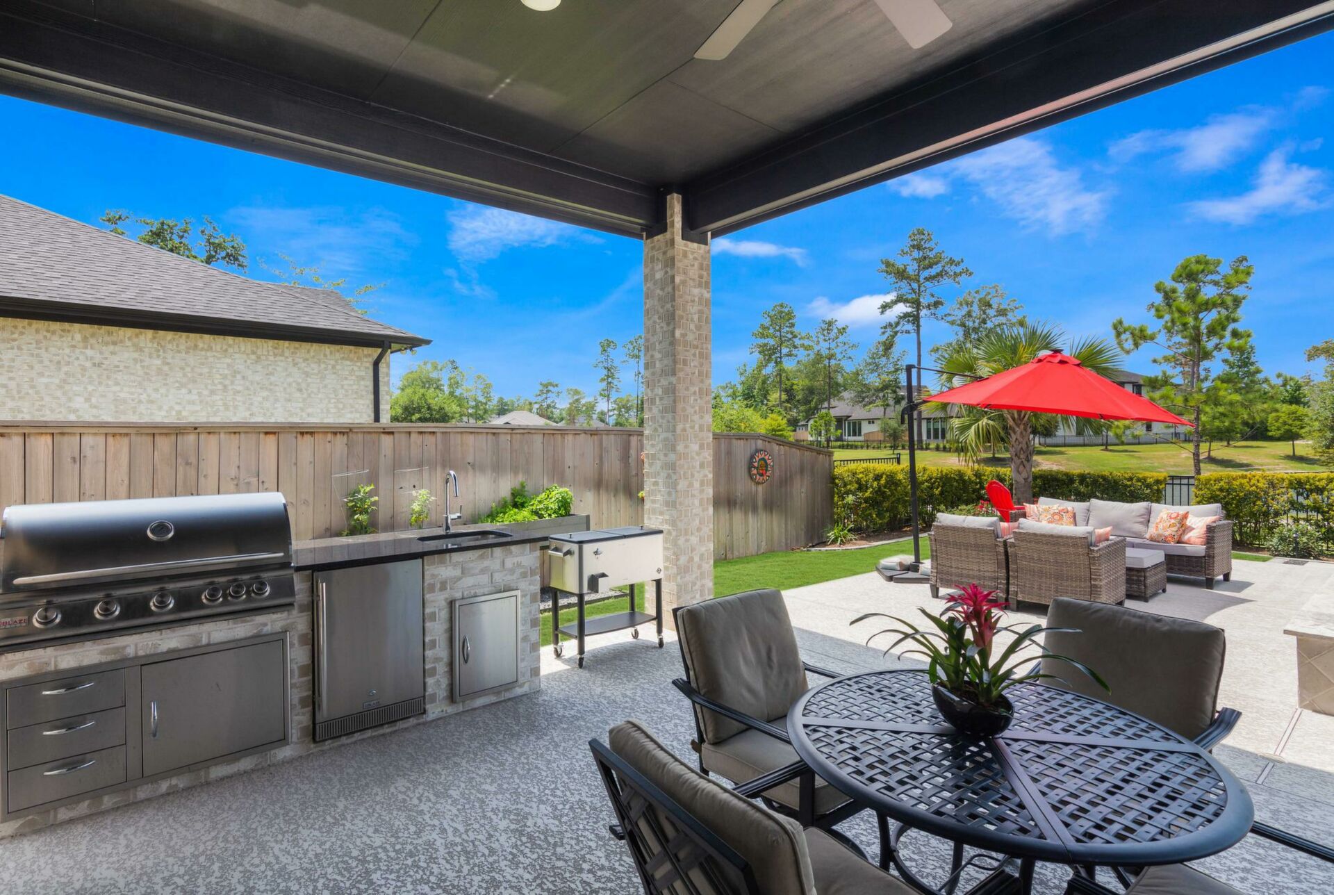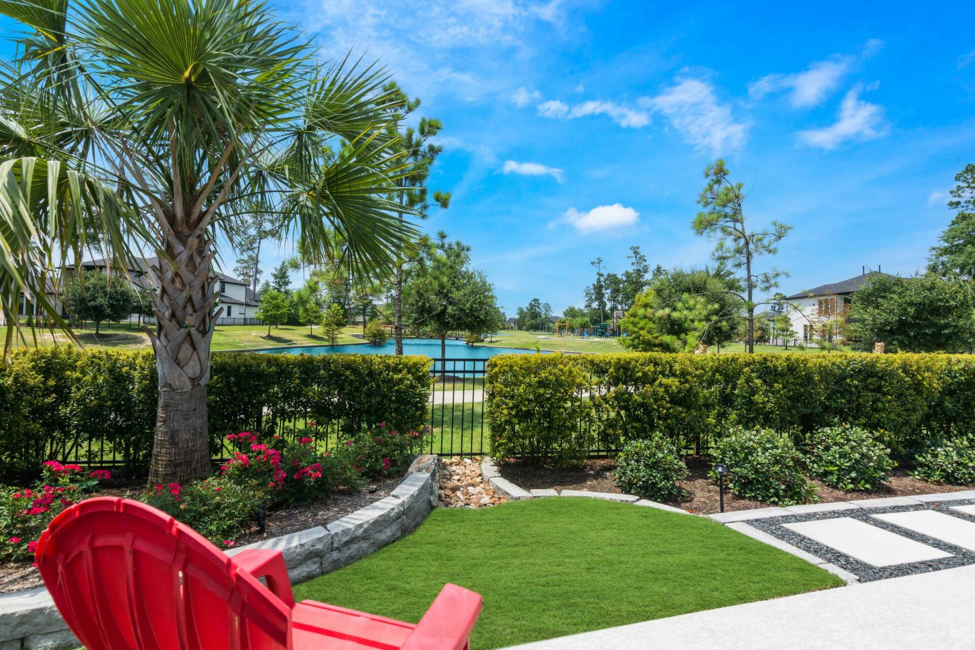 VERY RARE OPPORTUNITY BUY!!! PRIME LOT LOCATION serene waterview & beautiful park setting situated in the highly sought-after gated community of Harper's Preserve. This stunning one-story modern designer home is BETTER THAN NEW with over 200K in upgrades & added features. Meticulously well cared for Drees Custom Home is move-in ready. Outdoor living features a 'resort like' setting w/wonderful amenities including a gorgeous, heated spa & swimming pool, summer kitchen, covered patio and an amazing view. Inside is luxury wood plank style 'tile' flooring throughout the entire home! Awesome Nano doors providing a Panoramic view, gas-log fireplace, huge island kitchen, dining w/scenic view, home office w/contemporary barn doors, owner's suite enjoys beautiful view & huge closet. High beamed ceilings, large pantry & oversized garage, southern exposure provides perfect natural light. Located minutes to brand new HEB and ALL Woodlands amenities & major highways. Don't miss this one!!