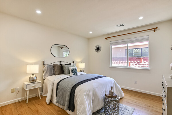Gorgeous 3119 SF Cupertino home with high ceilings. Double door entry. Bright & open gourmet kitchen w/ granite countertops & backsplash, SS appliances, Built-in Gas Stovetop with 5 Burners, double pane windows, recessed lighting, cabinet pantry. Formal Dining Room, Ground floor bedroom, Oversized shower with shower bench, Water closet, Walk-in closet, Jetted Tub, Dual vanities, Central AC. Walk to Apple Spaceship Campus & Main Street Cupertino