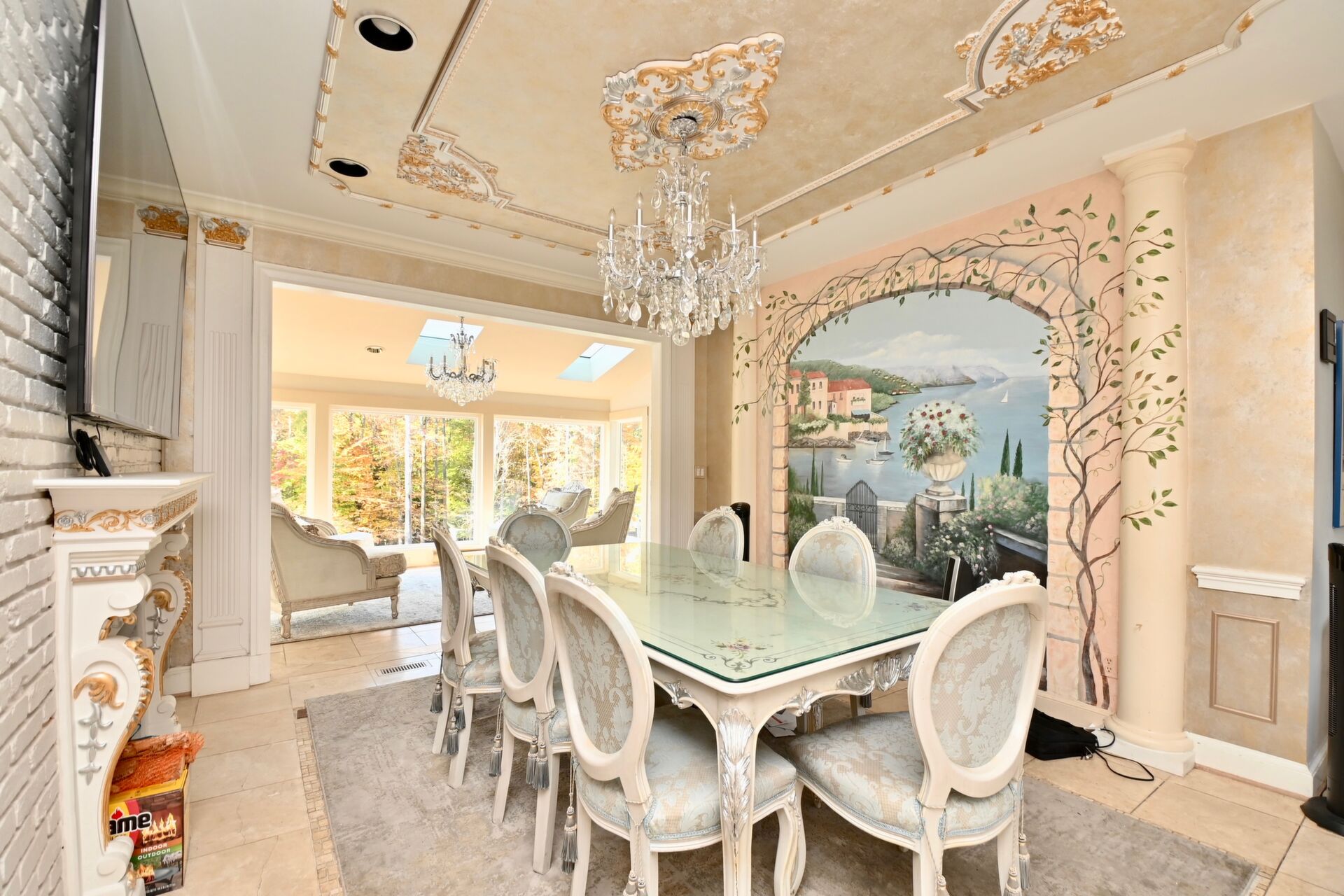 Enjoy hardwood floors, ornate ceilings, grand fireplaces, large open views to your pool, hot tub, outdoor kitchen, pergola, koi pond, tennis court, and so much more.