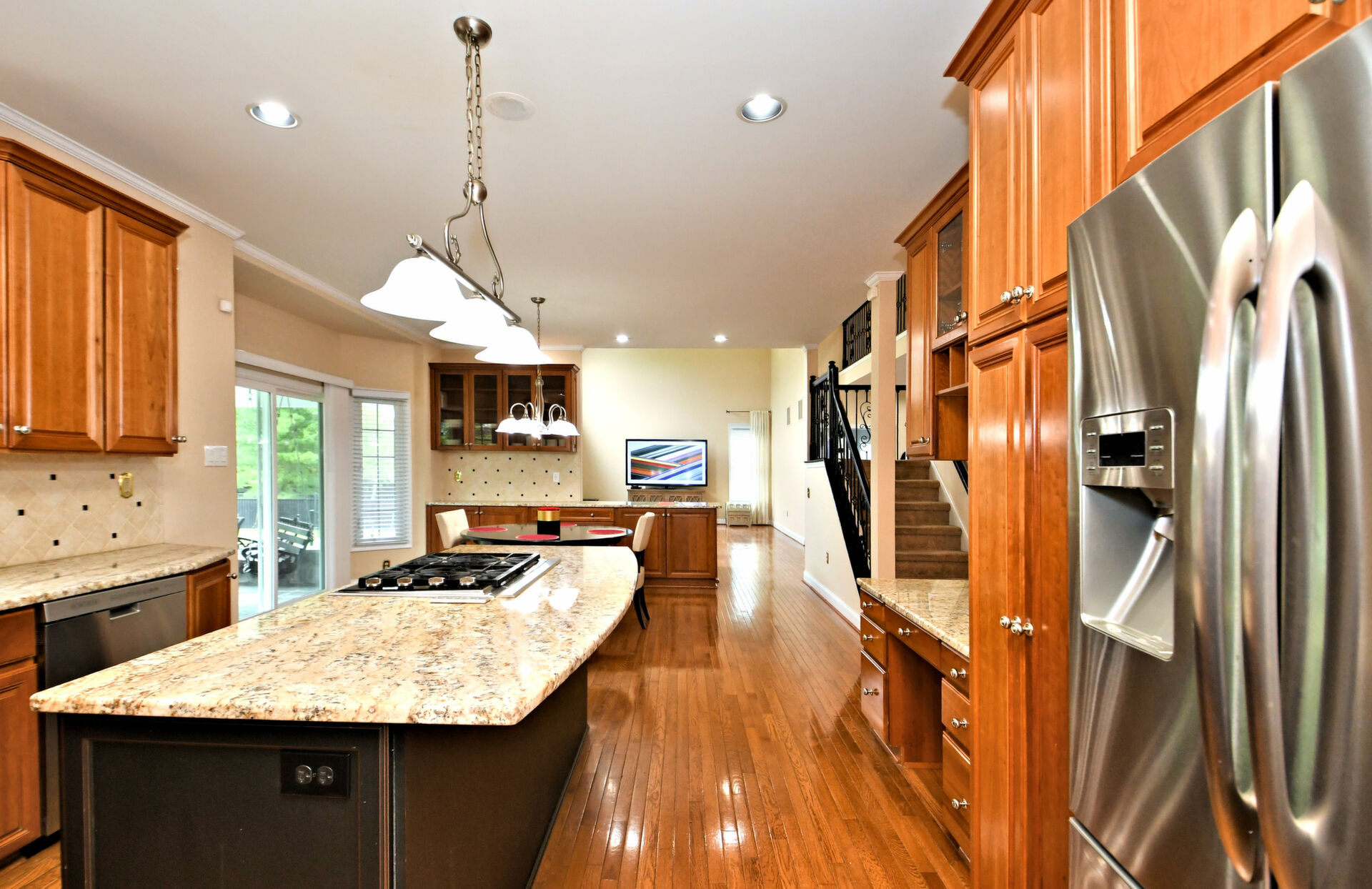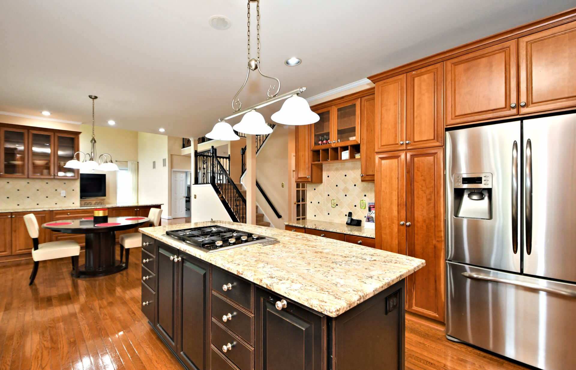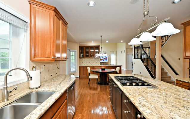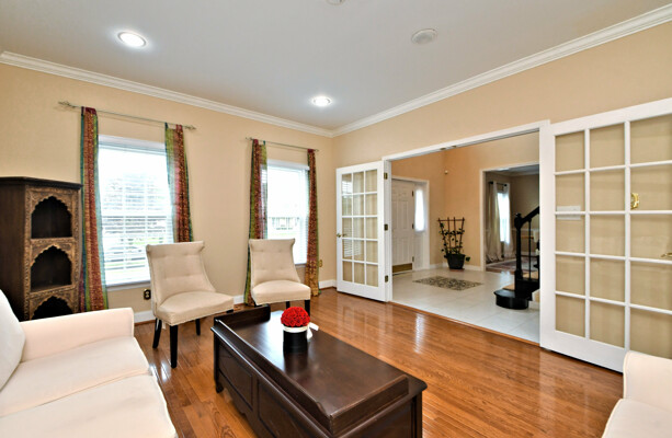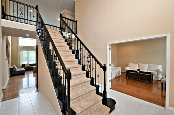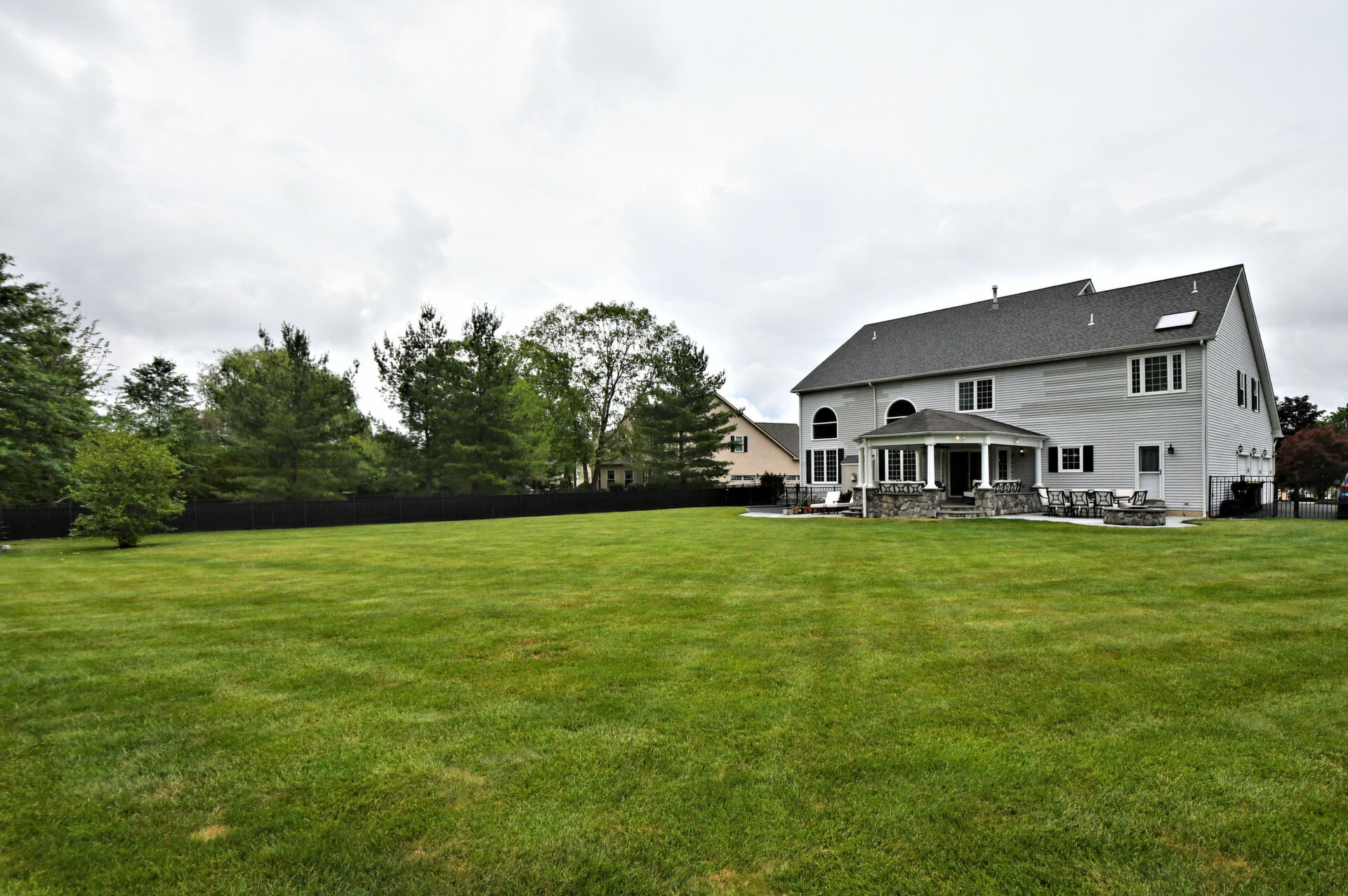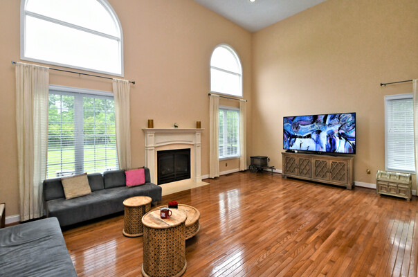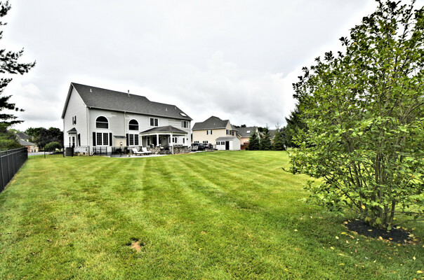 Spectacular Estate Home with over $425,000 of exquisite upgrades situated on over 1/2 acre of peaceful beautiful grounds! Dramatic two story entrance with stunning crystal chandelier opens into dining room and living room; Living room has french doors, high hats and could be used as a bedroom; Surround sound throughout; Custom railing and gleaming hardwood floors prevail, except front stairway and landing; Freshly painted; Office has new flooring, high hats and built-in custom office counters and filing cabinets ideal for remote work; New powder room; Beautiful large family room with gas fireplace surrounded by architectural detail; Fabulous large kitchen with cherry cabinets, granite countertops ideal for the bon vivant; Main bedroom is large with glowing hardwood and renovated with a modern flair in 2022; Three walk-in closets in main bedroom; Main bathroom renovated in 2022 has large soaking tub, double shower and skylights; Every bedroom has large walk in closets; Incredible finished lower level with outside exit, Awesome theatre room with abundant seating, projector, four controls and remotes for your relaxation and enjoyment; room for bedroom, full custom bath, custom kitchen. New facade installed in 2004; new patio, fireplace with seating on both sides, ceiling fan, speakers, six outlets and gas line; New french drain installed in entire back yard (similar to golf course); new pit, new fence, shed, swing reinforcement, porch roof; three car garage has new floors, multitude of shelves and new garage door openers, basement sump pump has a water back up.ROOF 2019, HVAC 2019, HOT WATER HEATER 2021. Garage has two (2) Tesla chargers. Minutes to shopping, restaurants, Whole Foods, Trader Joe's and major arteries. See Extensive Improvements along with Seller's Disclosure.