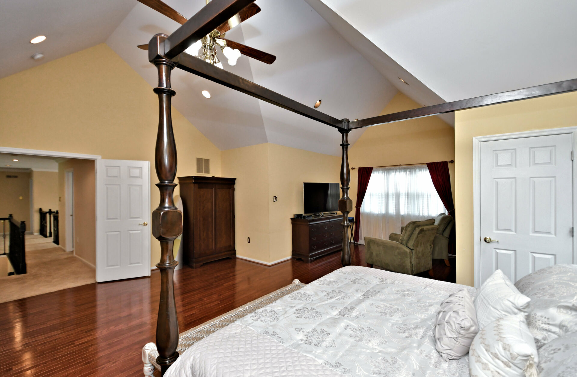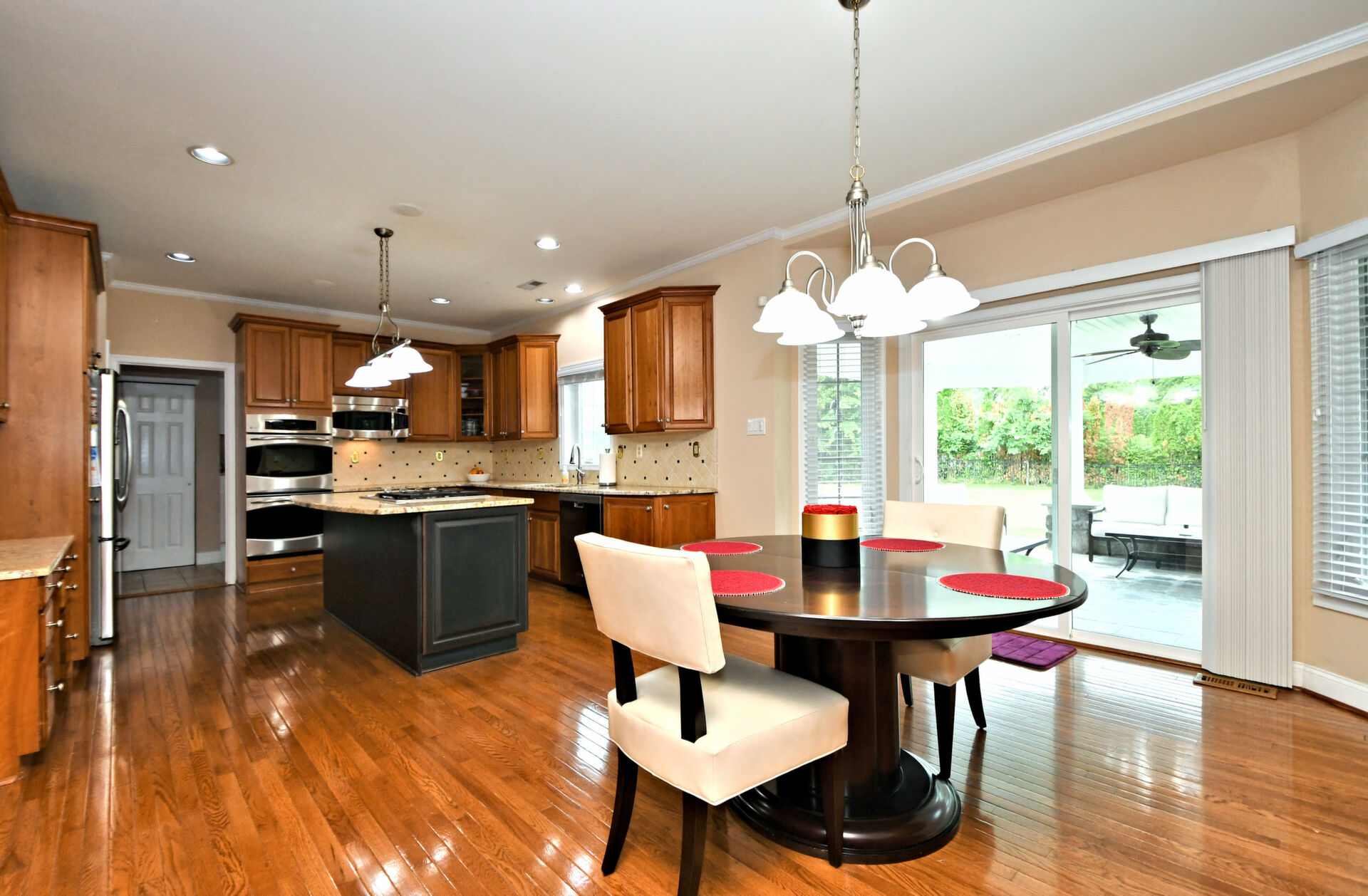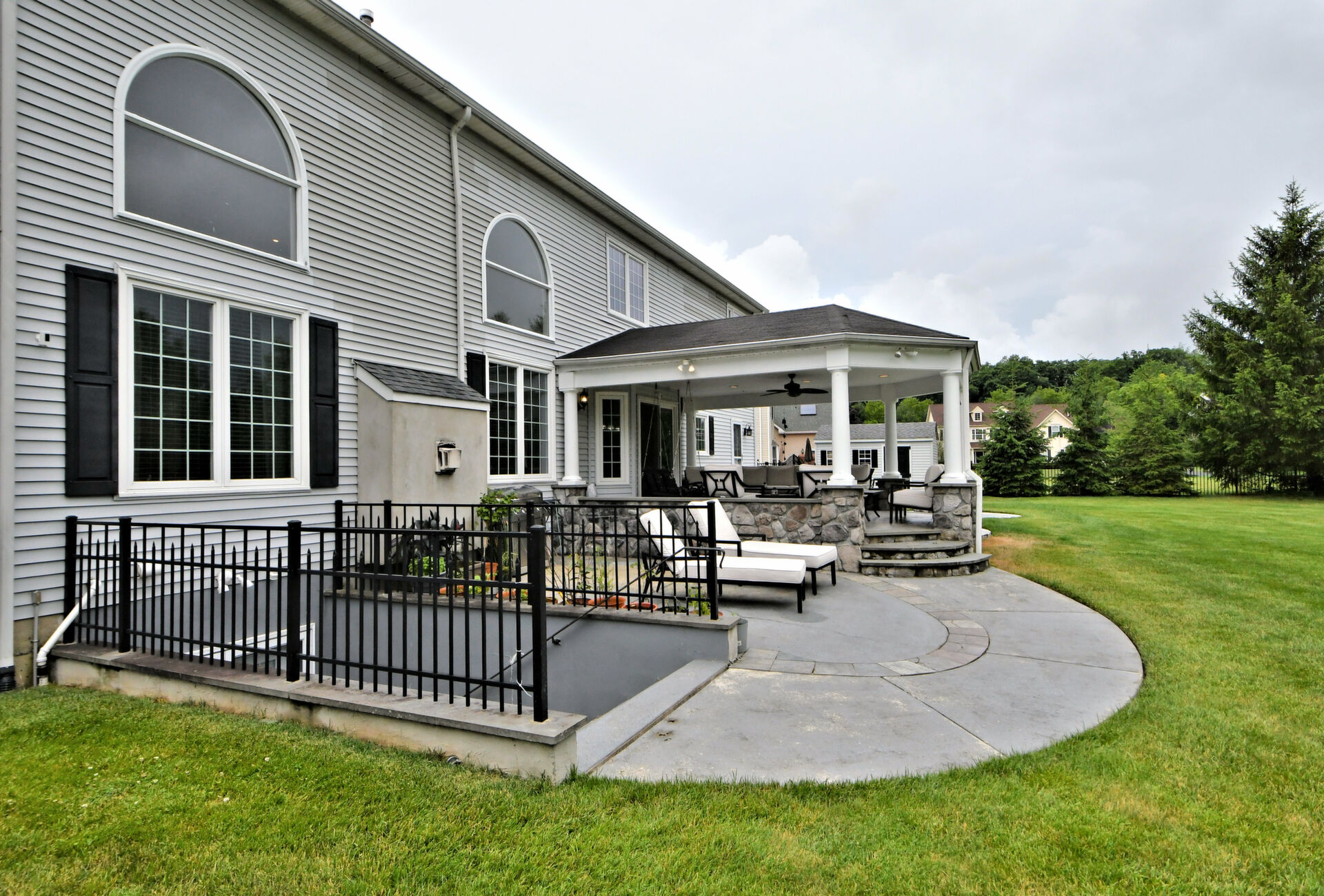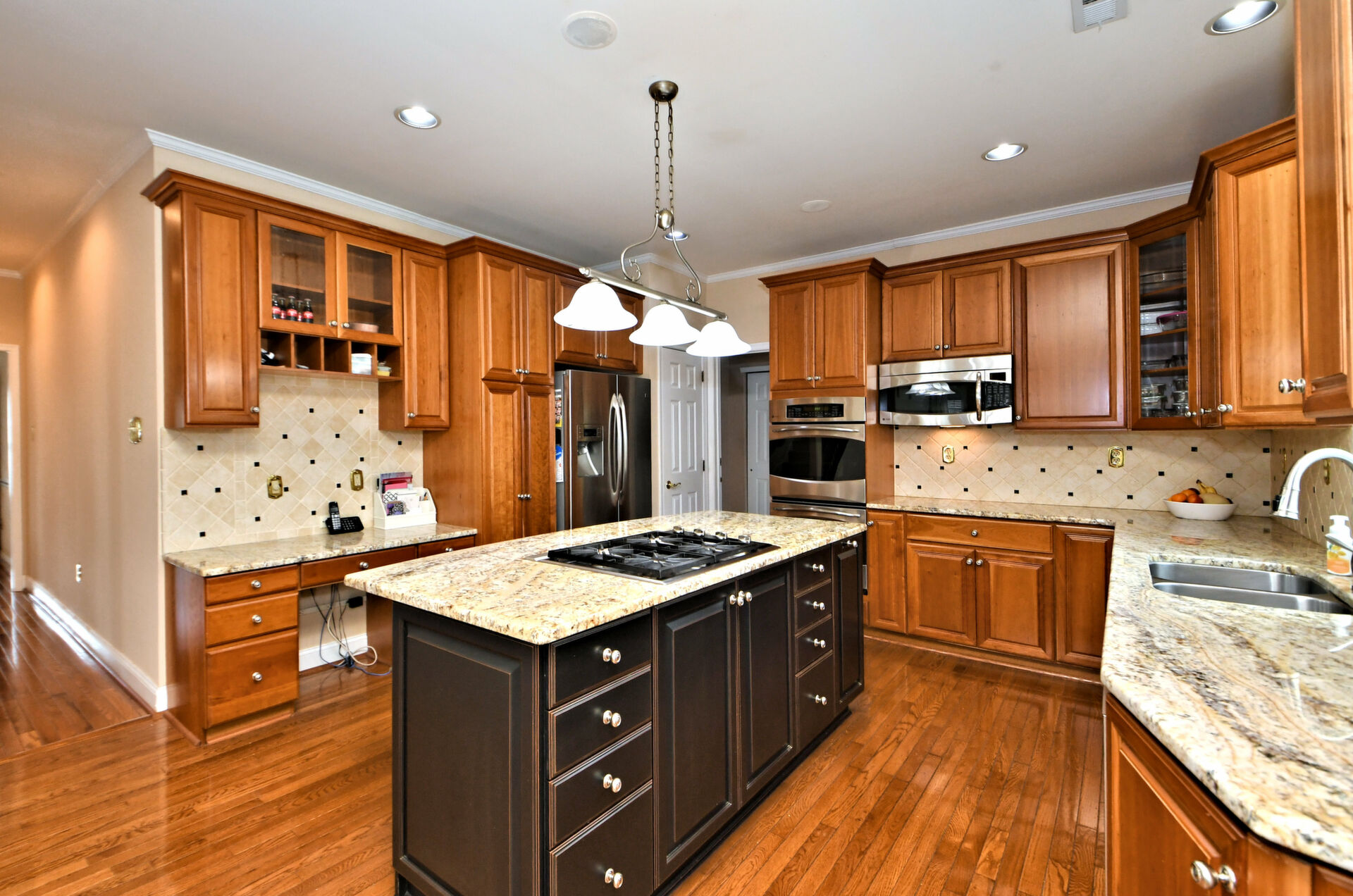Spectacular Estate Home with over $425,000 of exquisite upgrades situated on over 1/2 acre of peaceful beautiful grounds! Dramatic two story entrance with stunning crystal chandelier opens into dining room and living room; Living room has french doors, high hats and could be used as a bedroom; Surround sound throughout; Custom railing and gleaming hardwood floors prevail, except front stairway and landing; Freshly painted; Office has new flooring, high hats and built-in custom office counters and filing cabinets ideal for remote work; New powder room; Beautiful large family room with gas fireplace surrounded by architectural detail; Fabulous large kitchen with cherry cabinets, granite countertops ideal for the bon vivant; Main bedroom is large with glowing hardwood and renovated with a modern flair in 2022; Three walk-in closets in main bedroom; Main bathroom renovated in 2022 has large soaking tub, double shower and skylights; Every bedroom has large walk in closets; Incredible finished lower level with outside exit, Awesome theatre room with abundant seating, projector, four controls and remotes for your relaxation and enjoyment; room for bedroom, full custom bath, custom kitchen. New facade installed in 2004; new patio, fireplace with seating on both sides, ceiling fan, speakers, six outlets and gas line; New french drain installed in entire back yard (similar to golf course); new pit, new fence, shed, swing reinforcement, porch roof; three car garage has new floors, multitude of shelves and new garage door openers, basement sump pump has a water back up.ROOF 2019, HVAC 2019, HOT WATER HEATER 2021. Garage has two (2) Tesla chargers. Minutes to shopping, restaurants, Whole Foods, Trader Joe's and major arteries. See Extensive Improvements along with Seller's Disclosure.