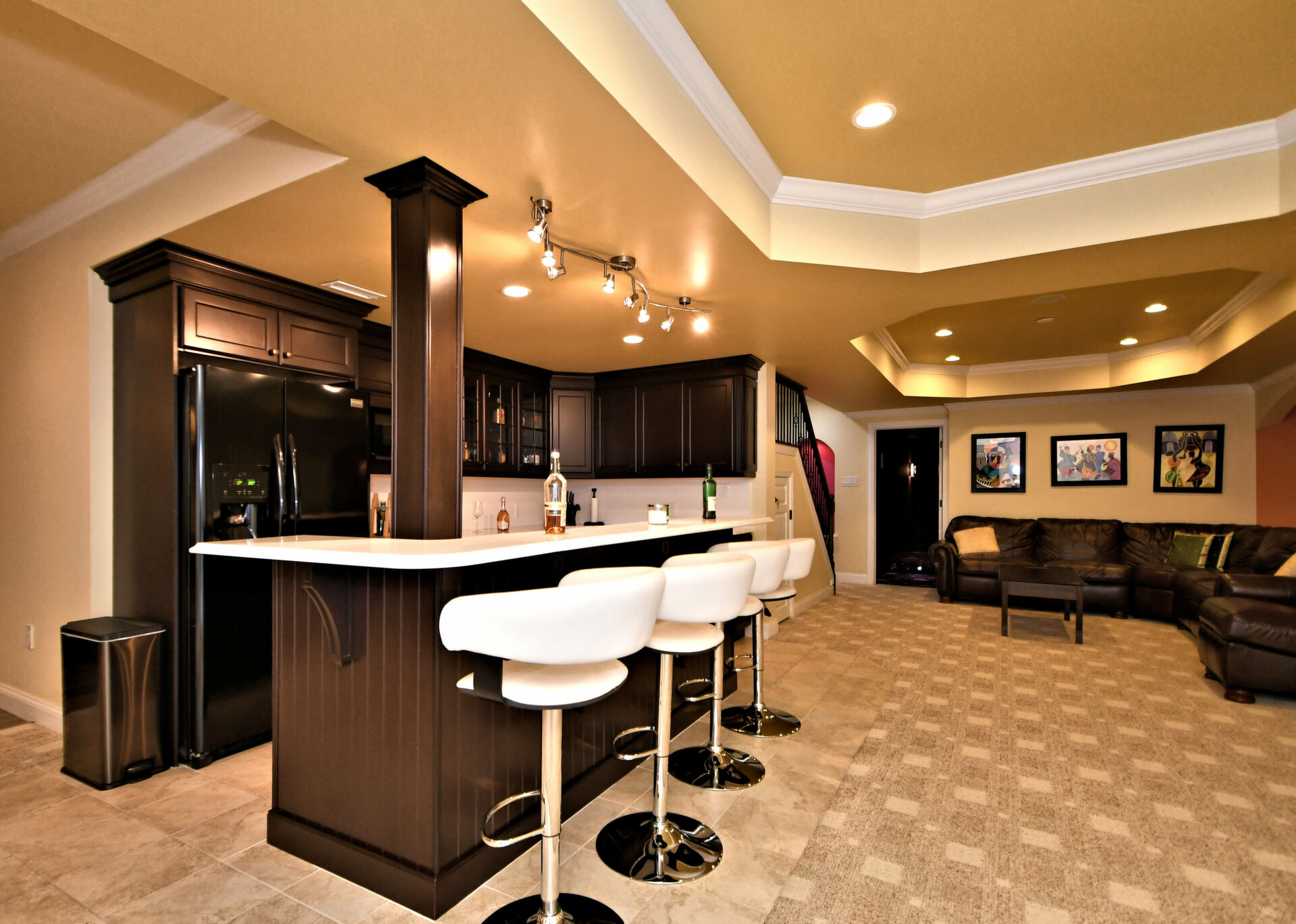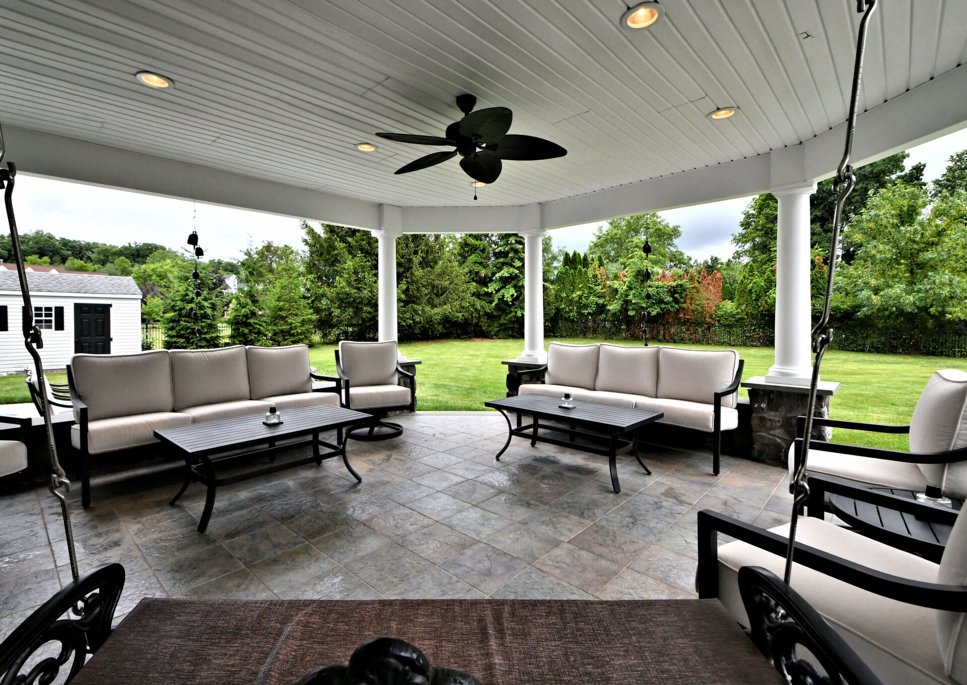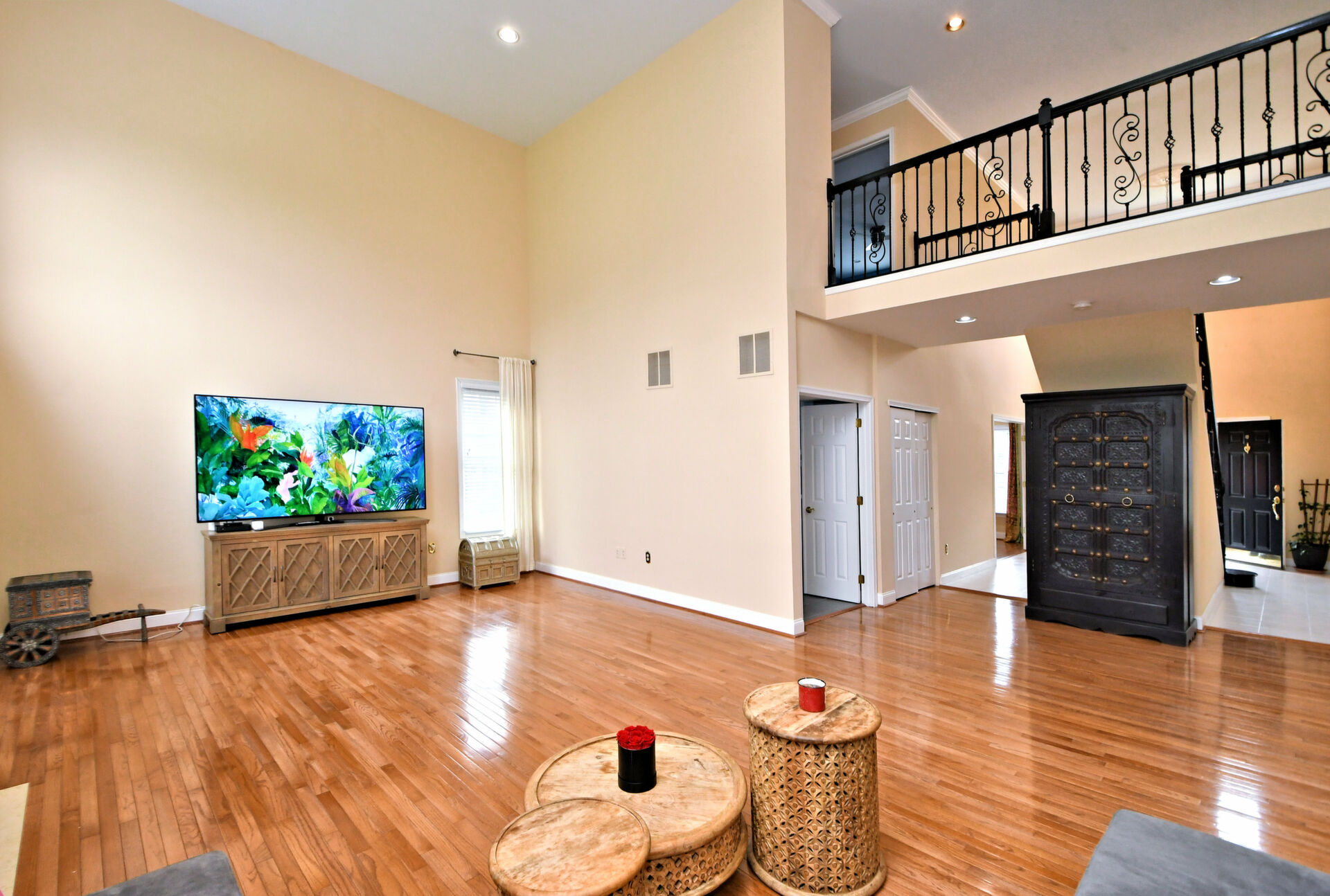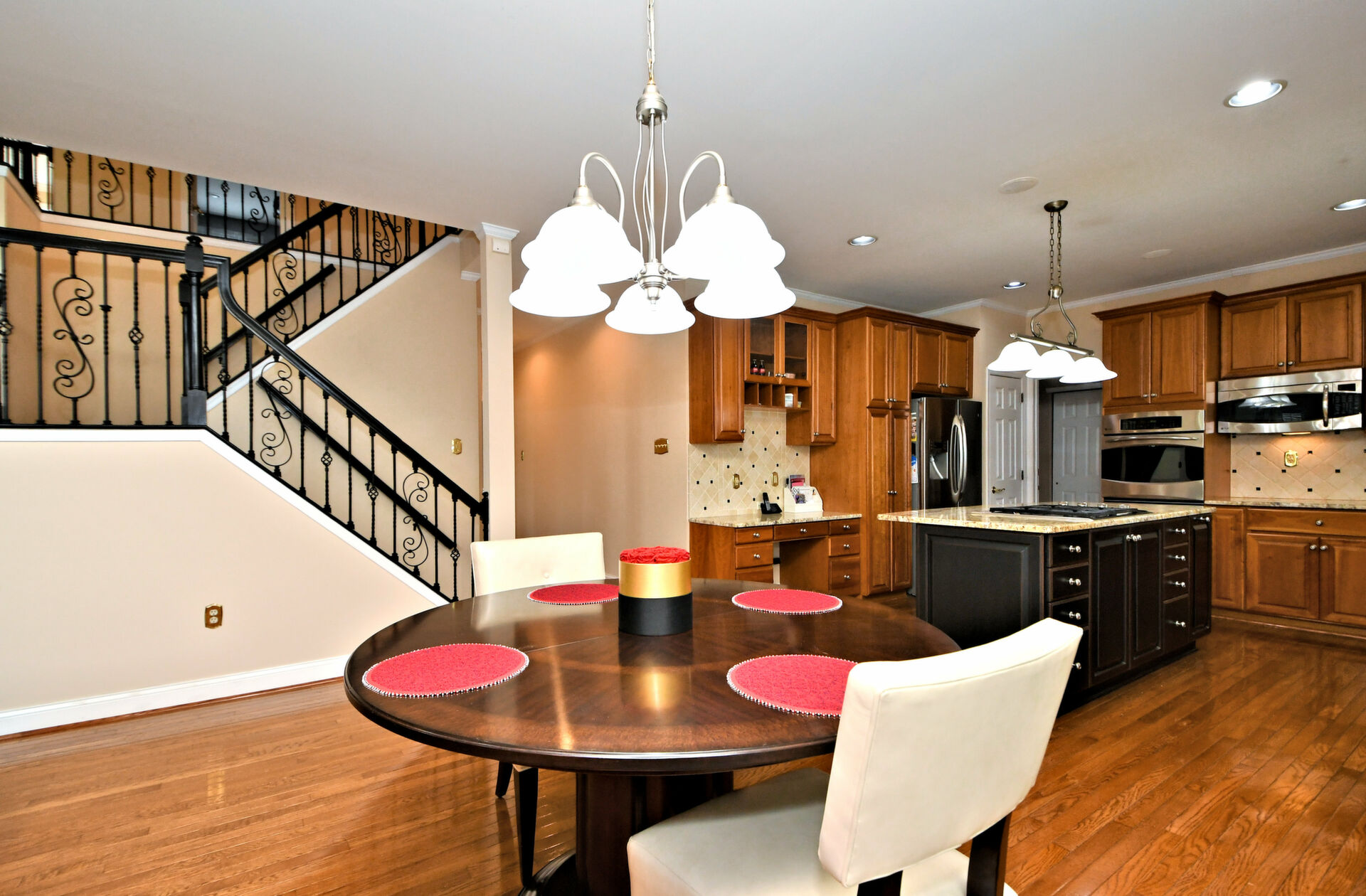 Spectacular Estate Home with over $425,000 of exquisite upgrades situated on over 1/2 acre of peaceful beautiful grounds! Dramatic two story entrance with stunning crystal chandelier opens into dining room and living room; Living room has french doors, high hats and could be used as a bedroom; Surround sound throughout; Custom railing and gleaming hardwood floors prevail, except front stairway and landing; Freshly painted; Office has new flooring, high hats and built-in custom office counters and filing cabinets ideal for remote work; New powder room; Beautiful large family room with gas fireplace surrounded by architectural detail; Fabulous large kitchen with cherry cabinets, granite countertops ideal for the bon vivant; Main bedroom is large with glowing hardwood and renovated with a modern flair in 2022; Three walk-in closets in main bedroom; Main bathroom renovated in 2022 has large soaking tub, double shower and skylights; Every bedroom has large walk in closets; Incredible finished lower level with outside exit, Awesome theatre room with abundant seating, projector, four controls and remotes for your relaxation and enjoyment; room for bedroom, full custom bath, custom kitchen. New facade installed in 2004; new patio, fireplace with seating on both sides, ceiling fan, speakers, six outlets and gas line; New french drain installed in entire back yard (similar to golf course); new pit, new fence, shed, swing reinforcement, porch roof; three car garage has new floors, multitude of shelves and new garage door openers, basement sump pump has a water back up.ROOF 2019, HVAC 2019, HOT WATER HEATER 2021. Garage has two (2) Tesla chargers. Minutes to shopping, restaurants, Whole Foods, Trader Joe's and major arteries. See Extensive Improvements along with Seller's Disclosure.