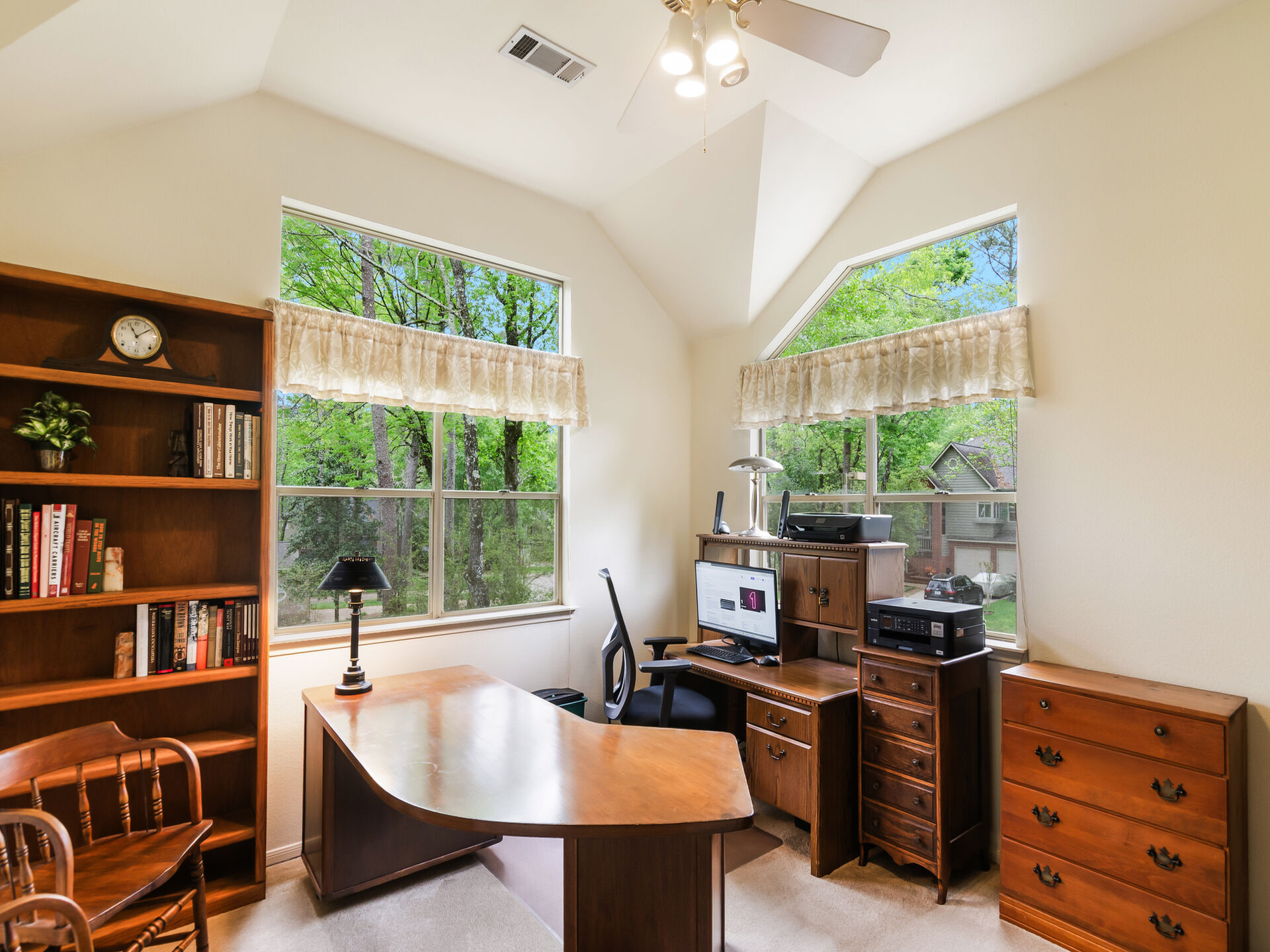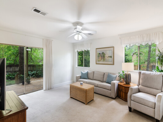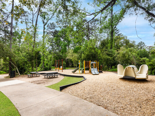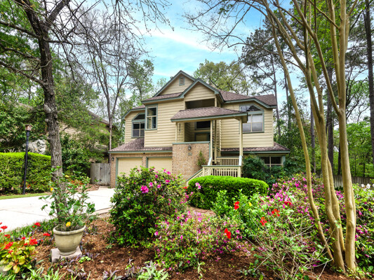 This treehouse-inspired home offers unique charm with its elevated design, expansive windows & serene views of surrounding treetops, blending a natural landscape & comfort to the indoors. Situated in the highly sought-after community of Trace Creek located in the heart of The Woodlands on one of the largest lots in the neighborhood, offering both privacy & space. The home boasts high ceilings providing a sense of openness and a spacious layout offering generous room sizes throughout. The primary bedroom is upstairs while secondary bedrooms & game room are downstairs providing a functional & well separated layout for your family & entertaining. Additional notable features include, remodeled primary bath, gas-log fireplace, screened in balcony, covered patio, home office, formal dining room, well cared for, low maintenance landscape, friendly neighborhood and a playground, two blocks away. A central location for ALL major Woodlands amenities & commuters, exemplary schools, low tax rate.