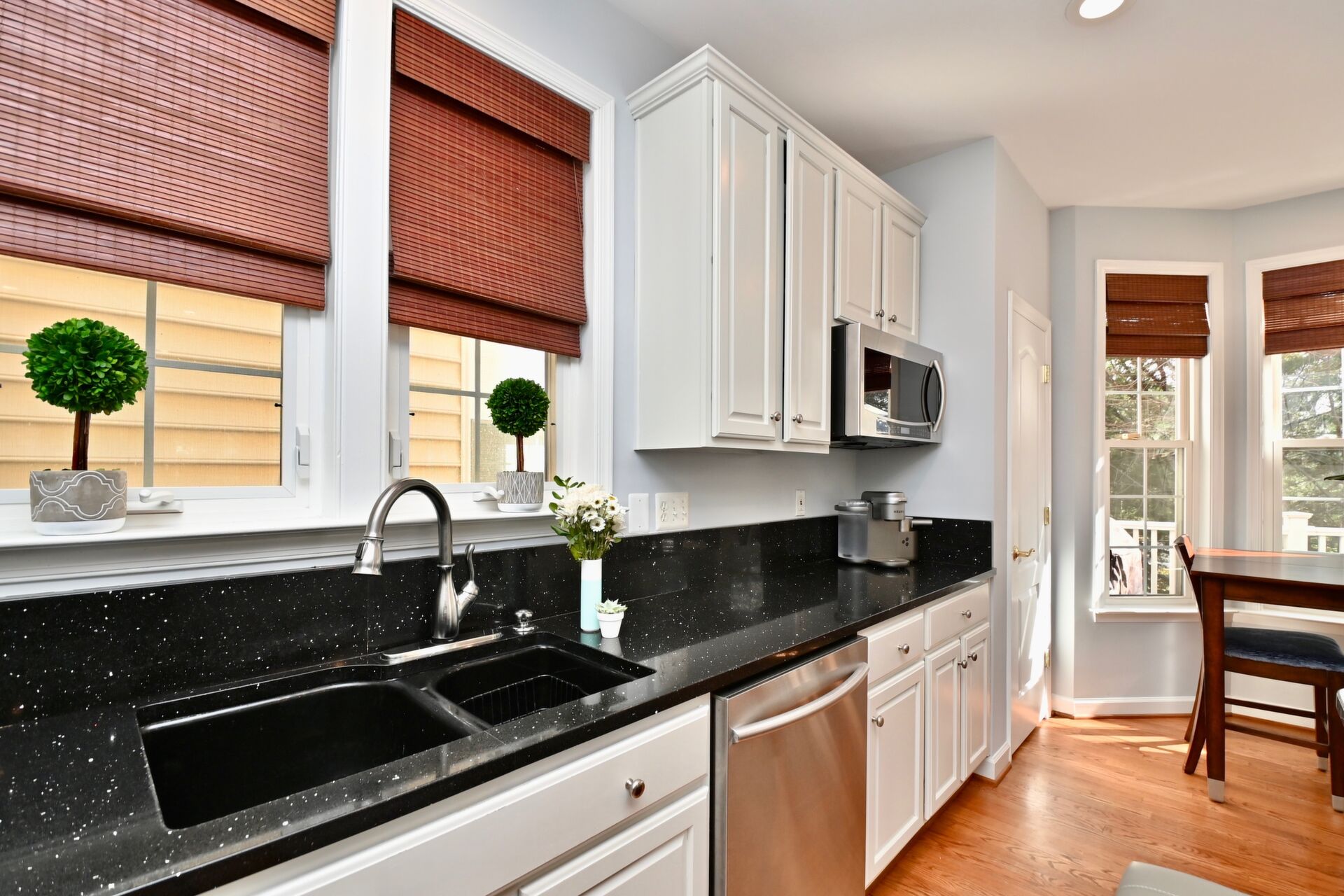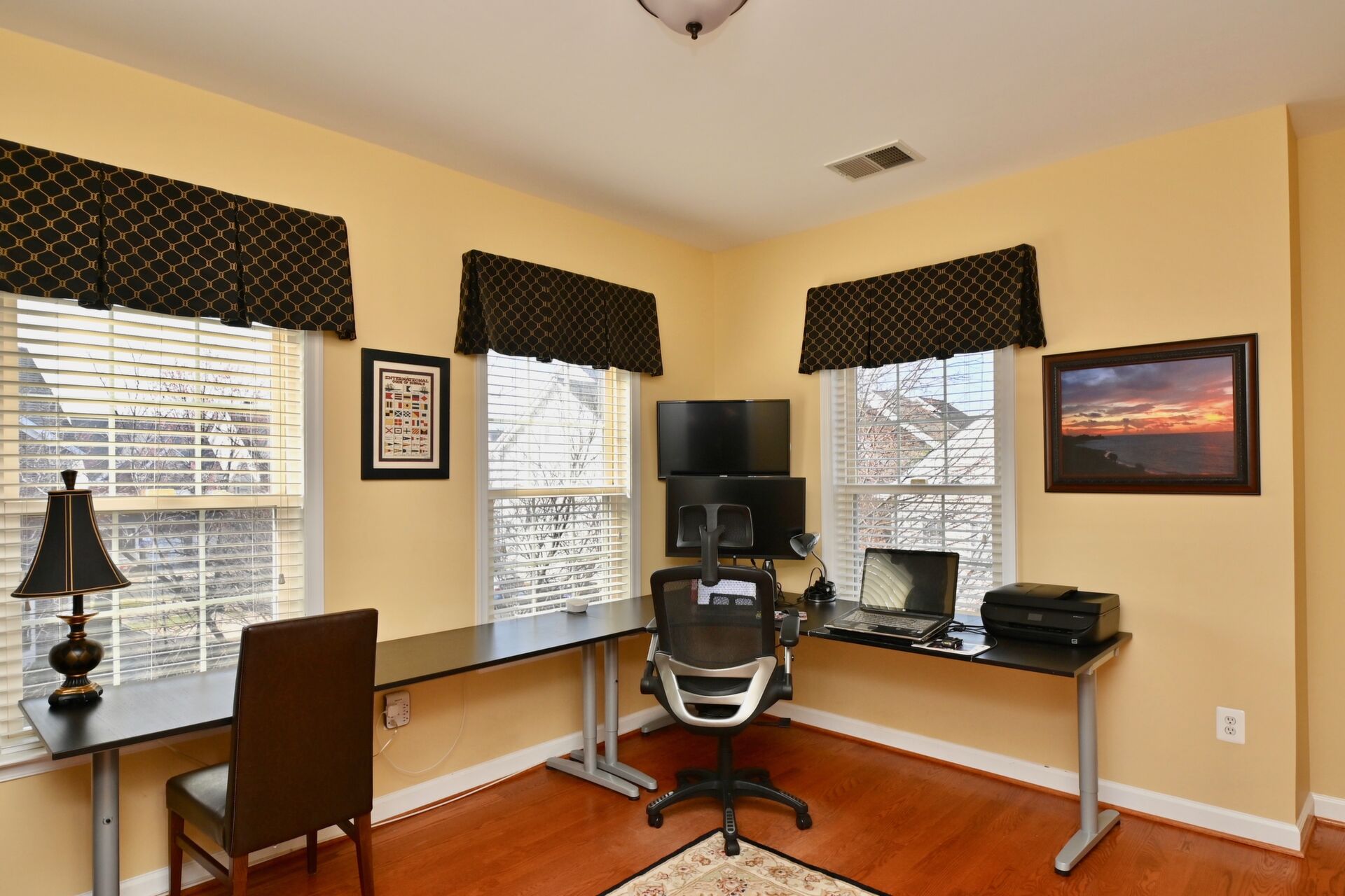 This lovely home features hardwood floors, crown molding, beautiful open floor plan with a flow that is welcoming.