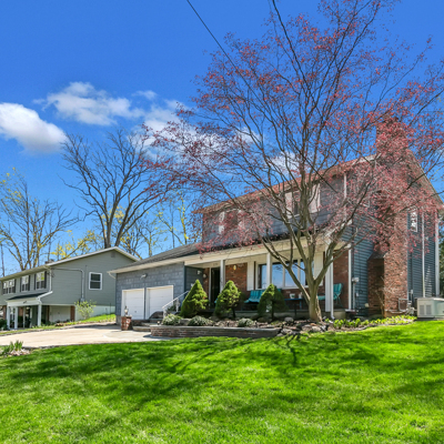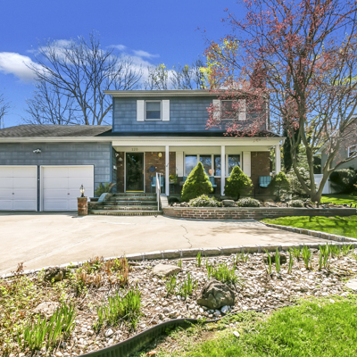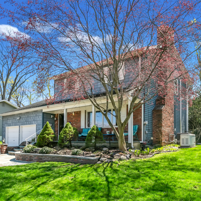 Absolutely beautiful center hall Colonial situated on quiet mid-block in prestigious Old Lenox Hills, Inc. Village, 5 car cement driveway, new bluestone & brick stoop & steps, great curb appeal w/brick & vinyl sided exterior, Front Porch, Living Room w/gas fireplace w/marble surround, Dining Room, Eat-in Kitchen w/oak cabinets, Family Room, Office or 4th Bedroom w/vaulted ceiling, Master Bedroom w/vaulted ceiling & dual entry to Full Bath w/Jacuzzi tub, Basement finished Family Room w/wet bar, new wall-to-wall carpeting, knotty pine woodwork, 4 Bedrooms, 3 Full Baths, refinished hardwood floors, central air, Andersen windows, pull-down attic w/hideaway stairs, 2 car att. garage, alarm system, o/s privately fenced backyard, very serene setting, in-ground Gunite pool, solar panels to heat pool, waterfall, multi-level deck, shed, IGS, full house generator, close to Bethpage State Park & Golf Course, close to town, shopping & railroad, Northside Elementary School.
