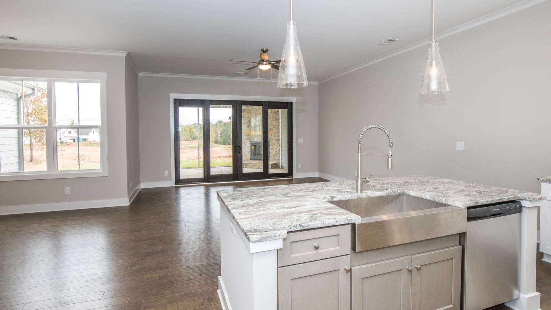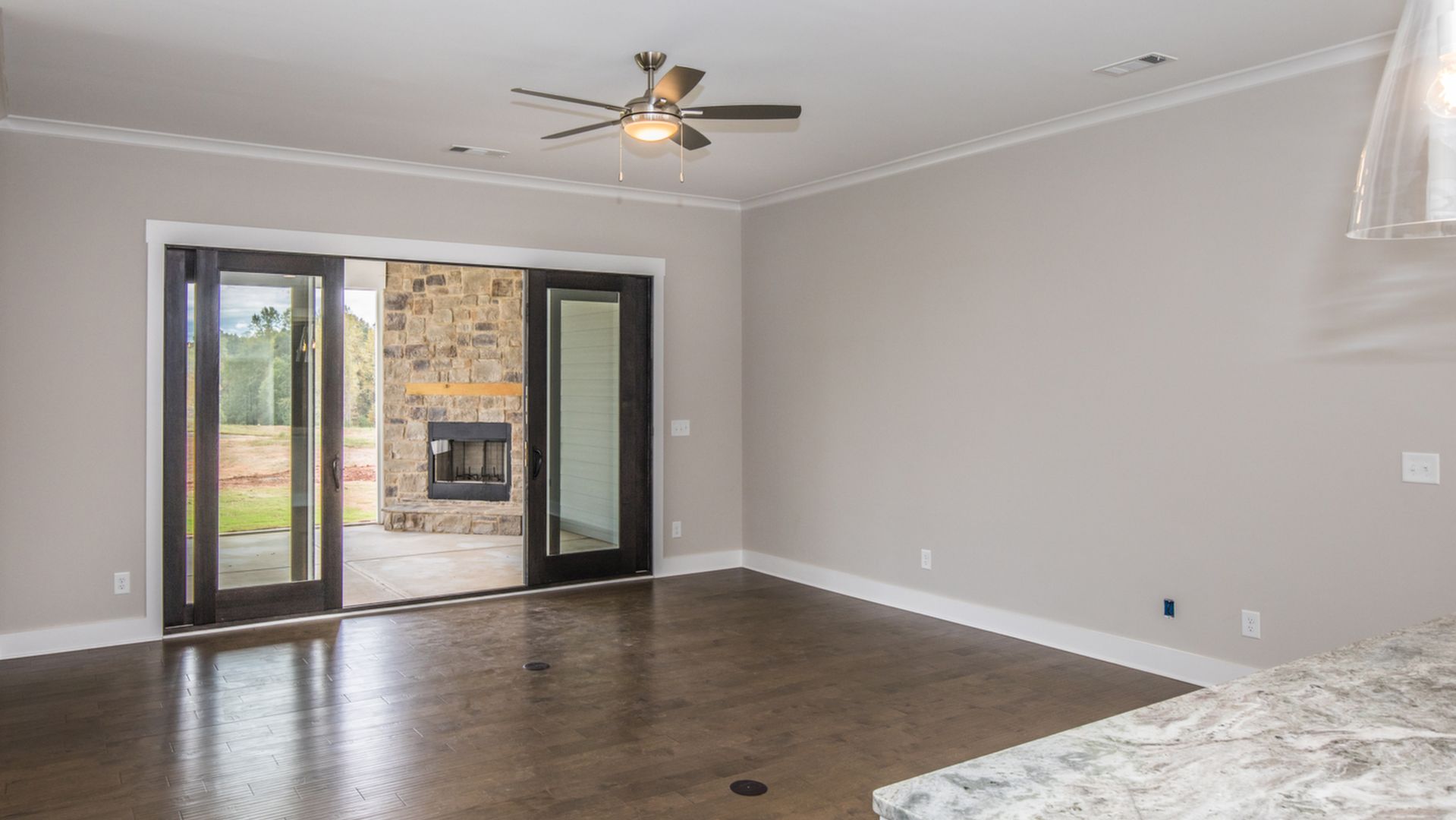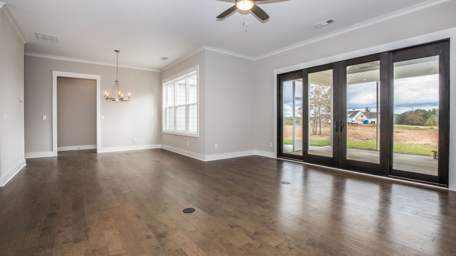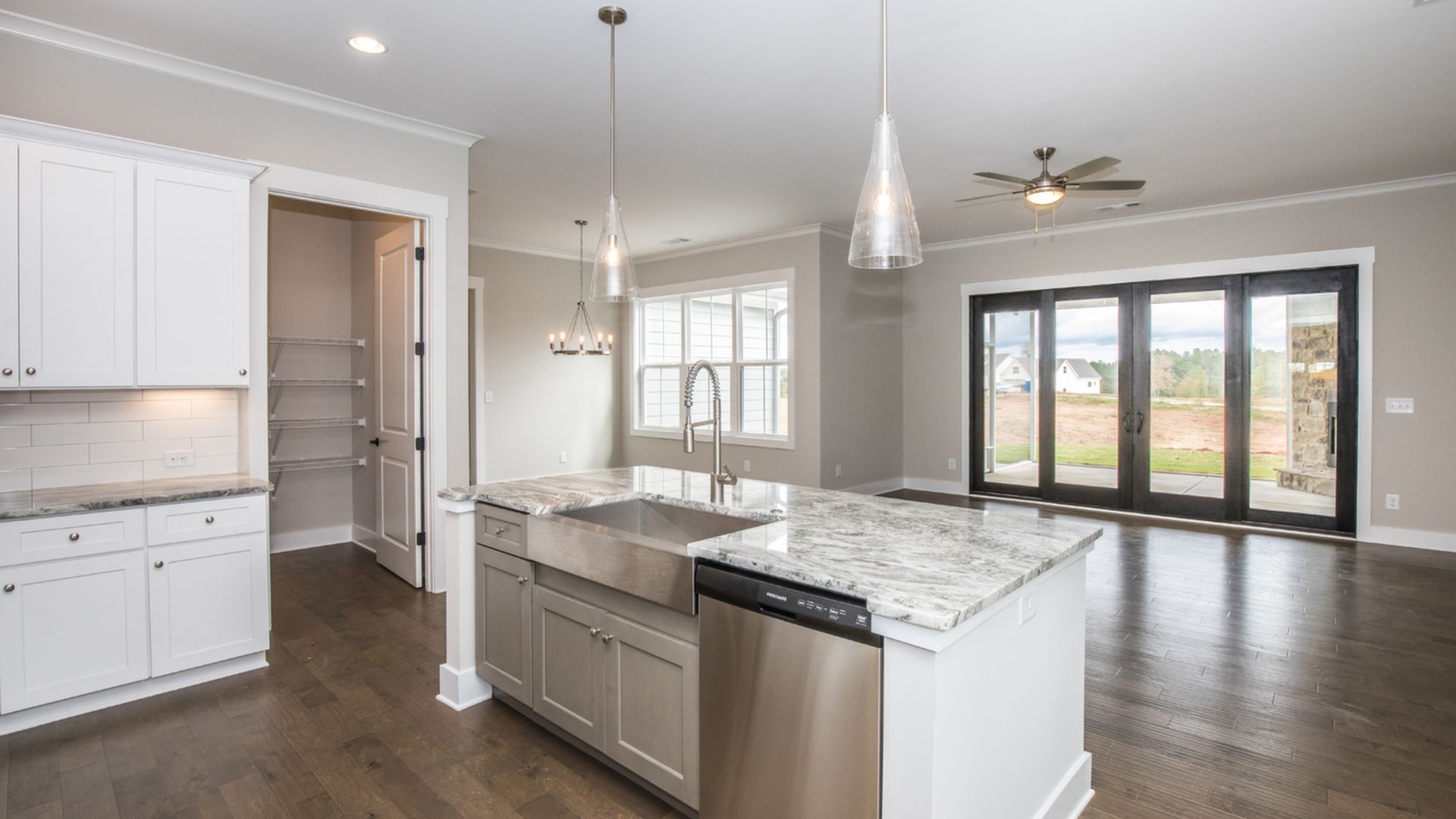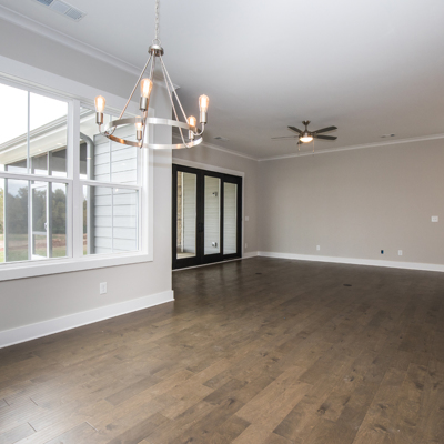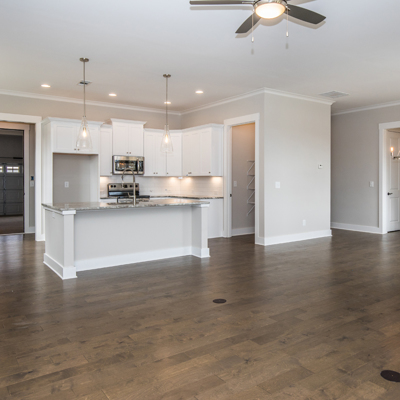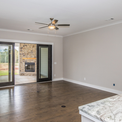 Welcome to The Sarazan (Lot 23C) at The Club Cottages at Chimney Oaks. This 2,004 square feet three-bedroom, two-bath ranch-style floor plan with kitchen-dining-family room designed with both everyday living and entertaining in mind. Generous kitchen island and dining nook provide both formal and casual seating options. Master bedroom retreat with his-and-her sink and spacious walk-in closet. Guest bedrooms and bath perfect for growing family, overnight guests, or home office space. This home has bi-parting doors leading from the living room to a spacious screened in covered patio with corner fireplace; great for entertaining or relaxing.