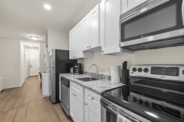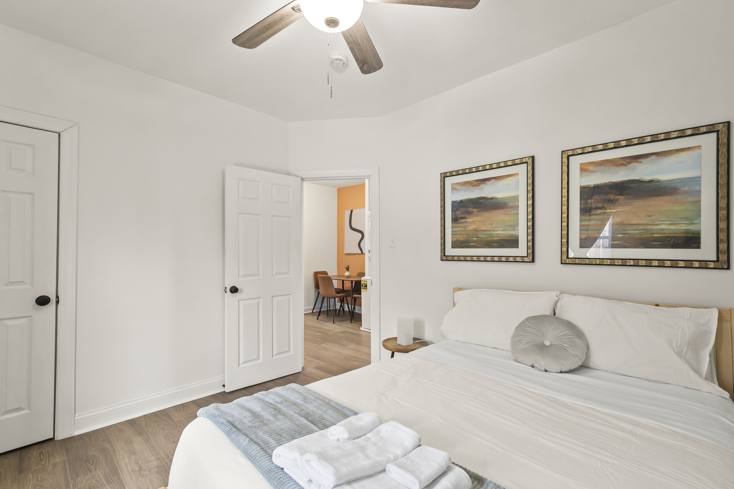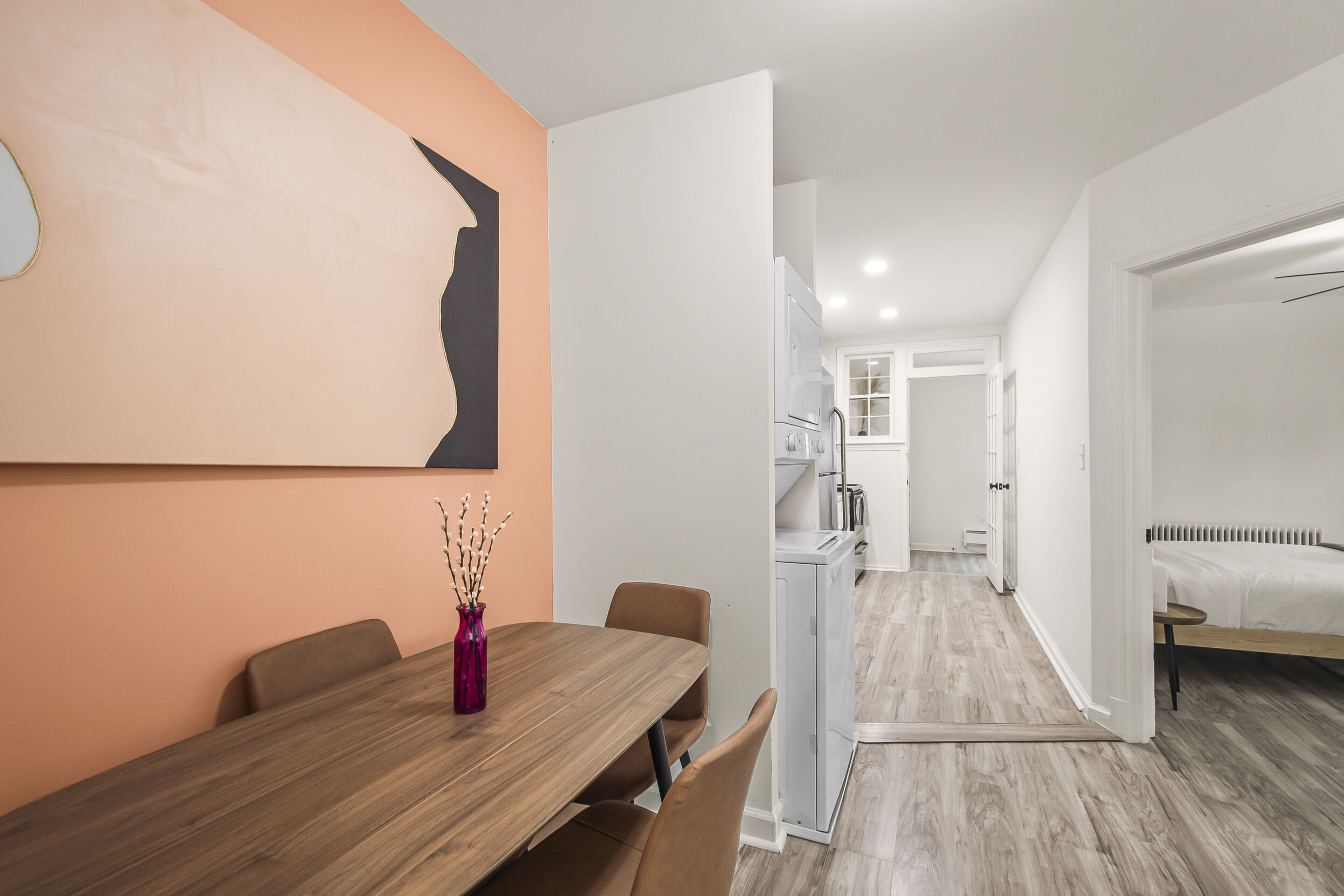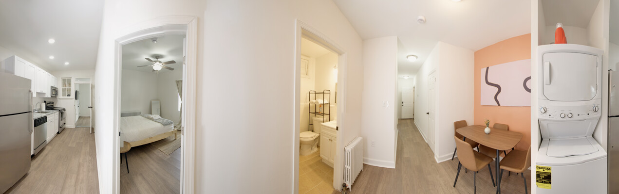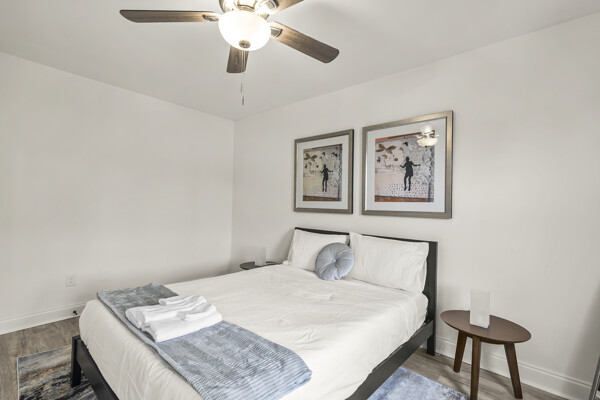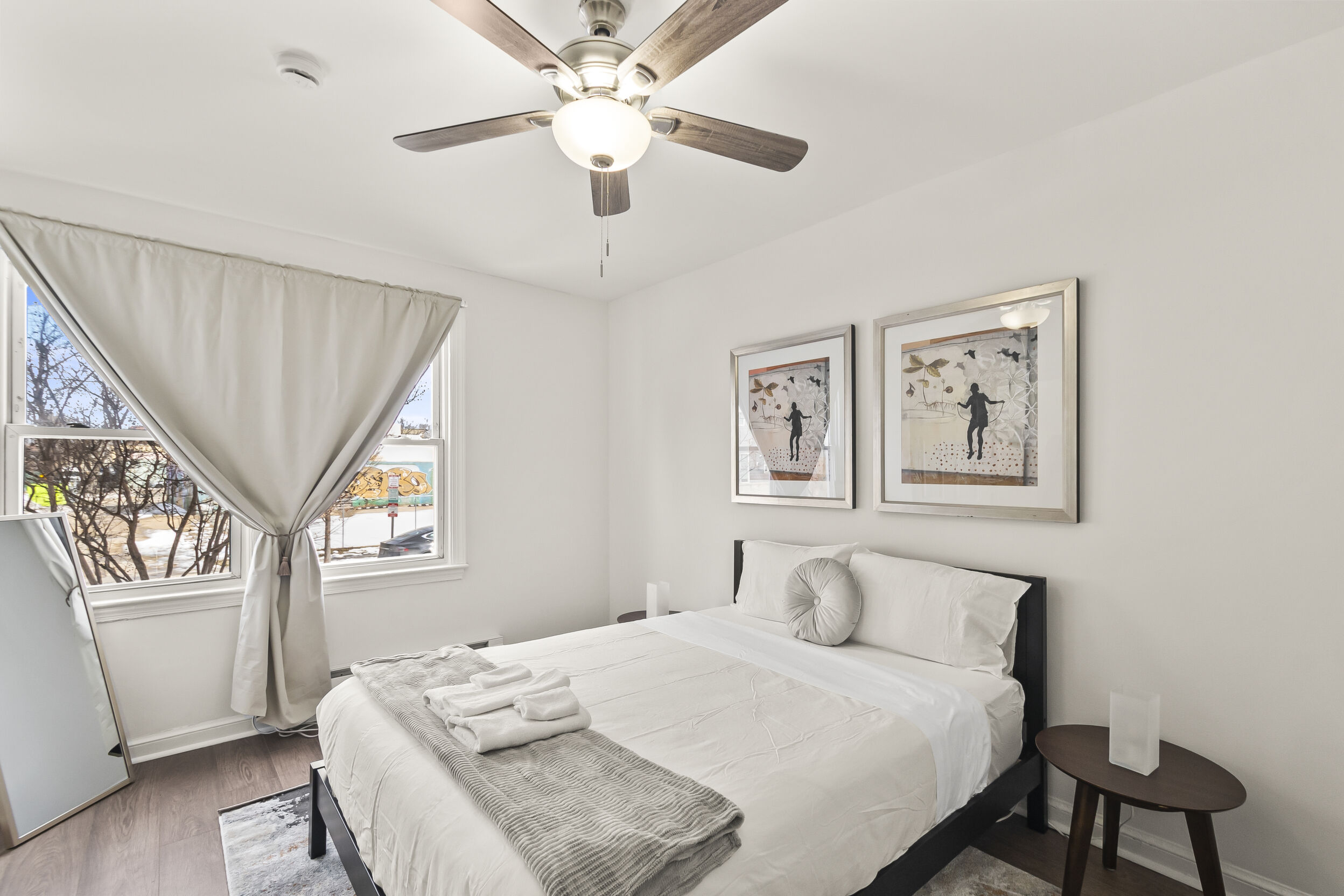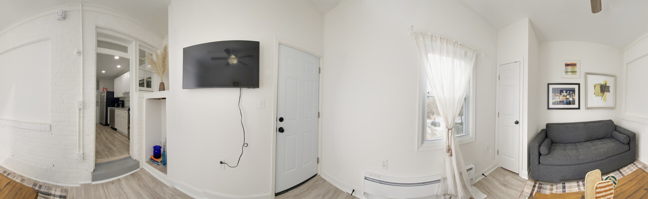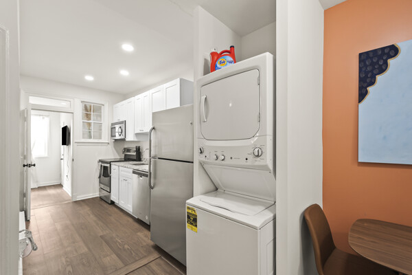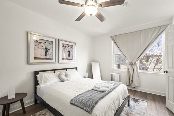 The open-concept living space is perfect for entertaining or simply unwinding after a day of exploring the city. Whip up a delicious meal in the fully equipped kitchen, then kick back and relax in the comfortable living room. When it's time to rest, retreat to one of the two inviting bedrooms, each offering a peaceful sanctuary for a good night's sleep.