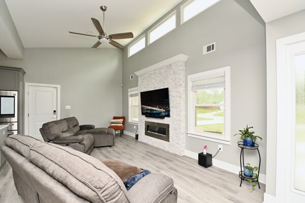 This home boasts a large open floor plan, cozy fireplace, kitchen with island seating, primary bedroom with private bath and walk-in closet plus so much more.
