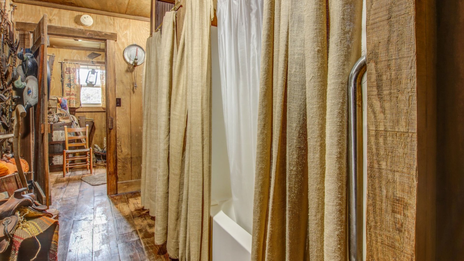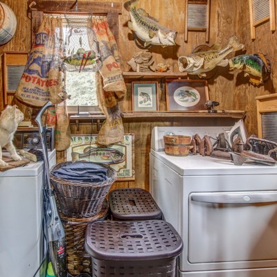 Very unique rustic barn home! 2 bed/2 bath in the main home, good sized living room. Master suite upstairs w/ full bathroom and walk in closet. Separate in-law suite w/ 1 bed/1 bath full kitchen and bedroom- Central heating and air. Outside you have a 22x12 pole barn and a 20x18 insulated metal workshop. Home is on a drilled 400 Ft deep well. Surrounded by thousands of acres in the Peace and quiet.