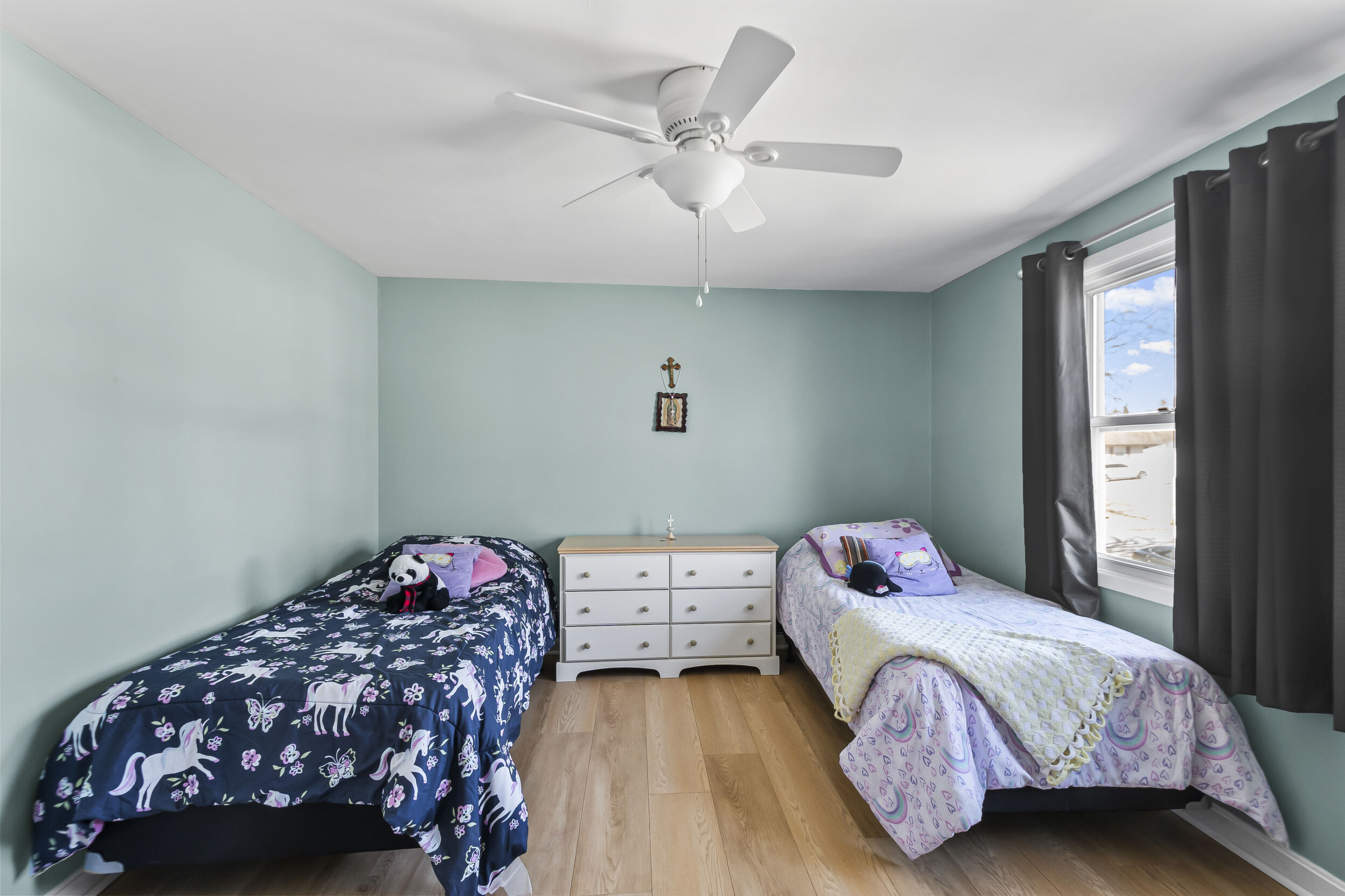 The primary bedroom features a private bath, providing a peaceful retreat at the end of a long day. The additional bedrooms are generously sized, offering plenty of space for family members or guests.