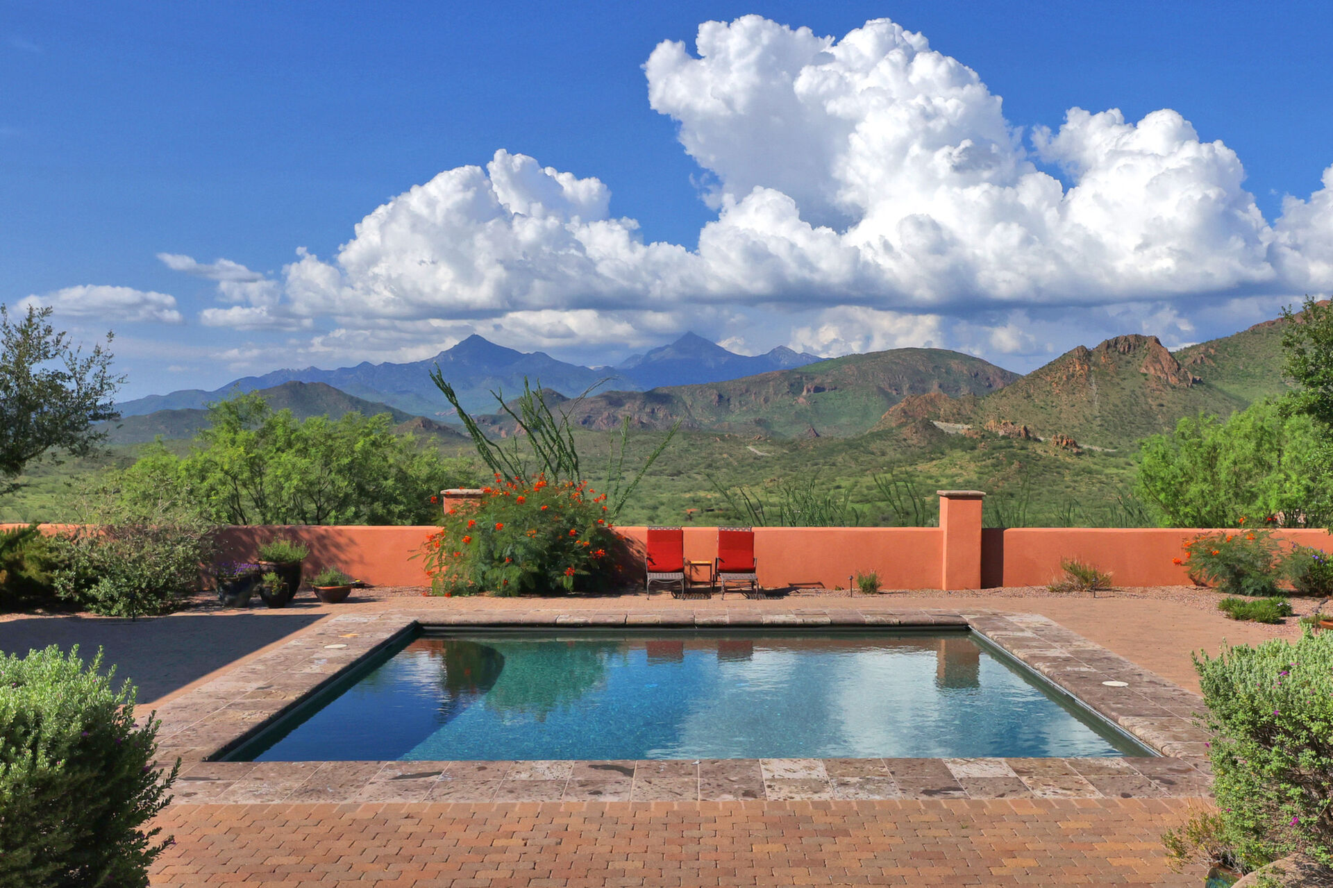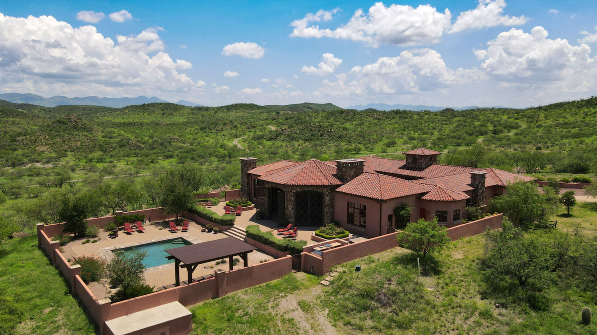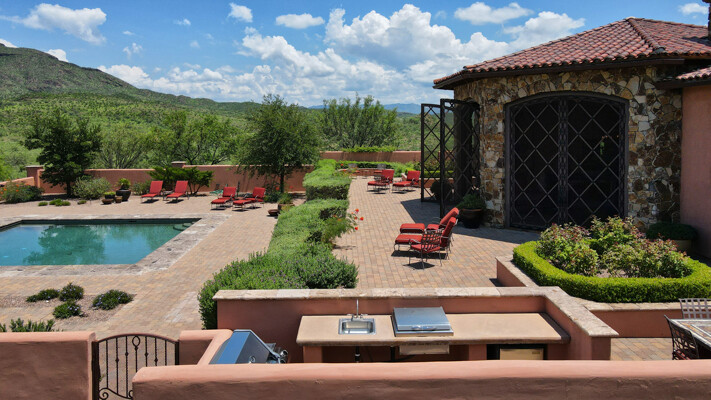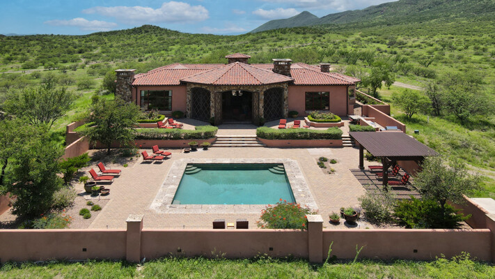 Sombra del Sol Ranch offers a gracious Southwest lifestyle at an elevation of 4,100 feet. Set alongside a 5,500-acre private preserve of rolling landscapes, rock outcroppings, and seasonal creeks, Sombra del Sol includes outdoor living features at their very best. The centerpiece of the ranch is a stunning hacienda built around a romantic courtyard. This premier home looks north across a contained valley toward the majestic Santa Rita Mountains. Built to the highest standards, the hacienda contains 4 bedrooms, 4.5 baths, an office/ family room, living room, large kitchen & spacious dining room. The focal point of outdoor living is the huge rotunda living room overlooking a large pool & the mountains beyond. The hacienda rests on 72 acres of beauty. Up to 2,650 acres also available.