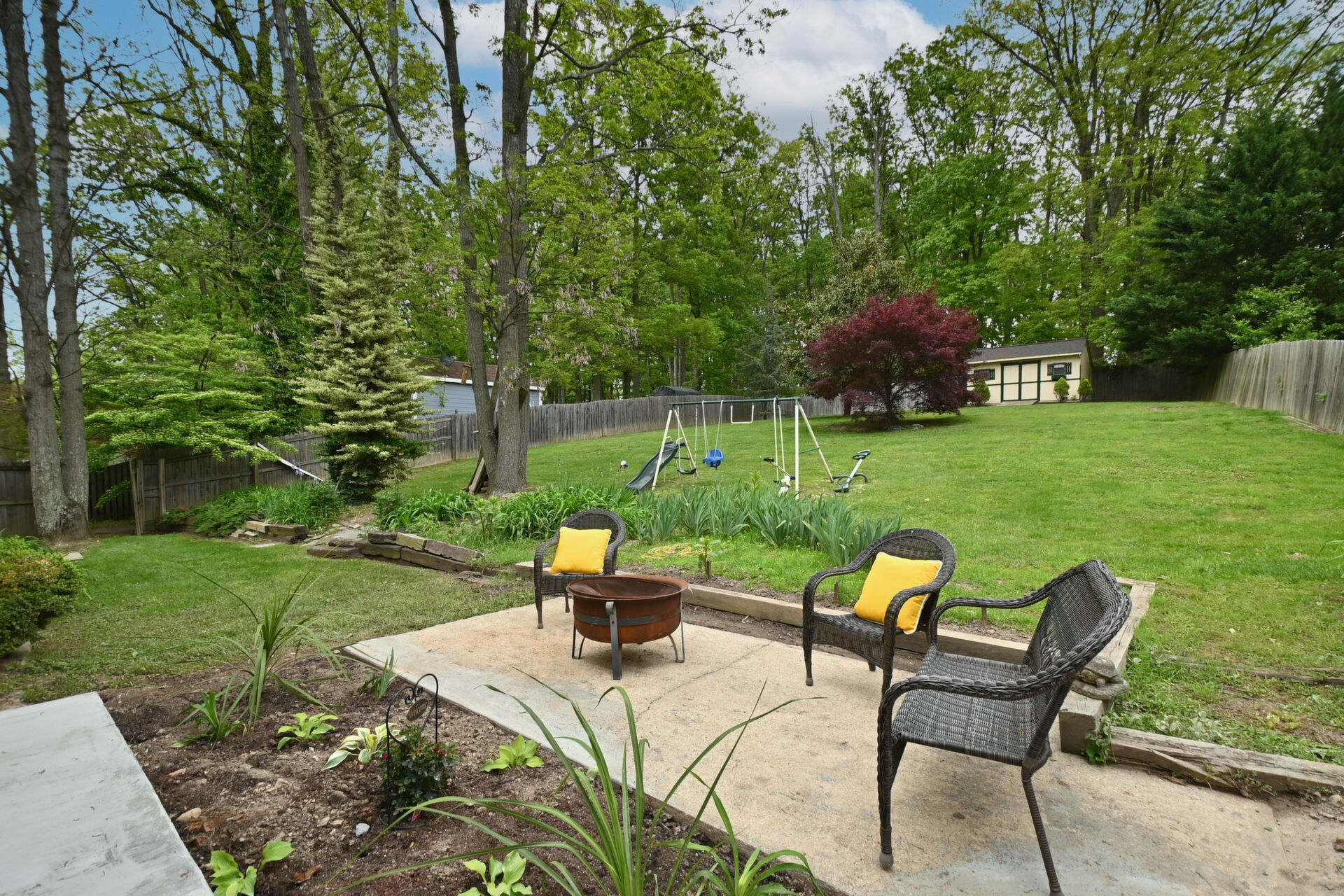 Come home at the end of the day and relax in your large backyard.