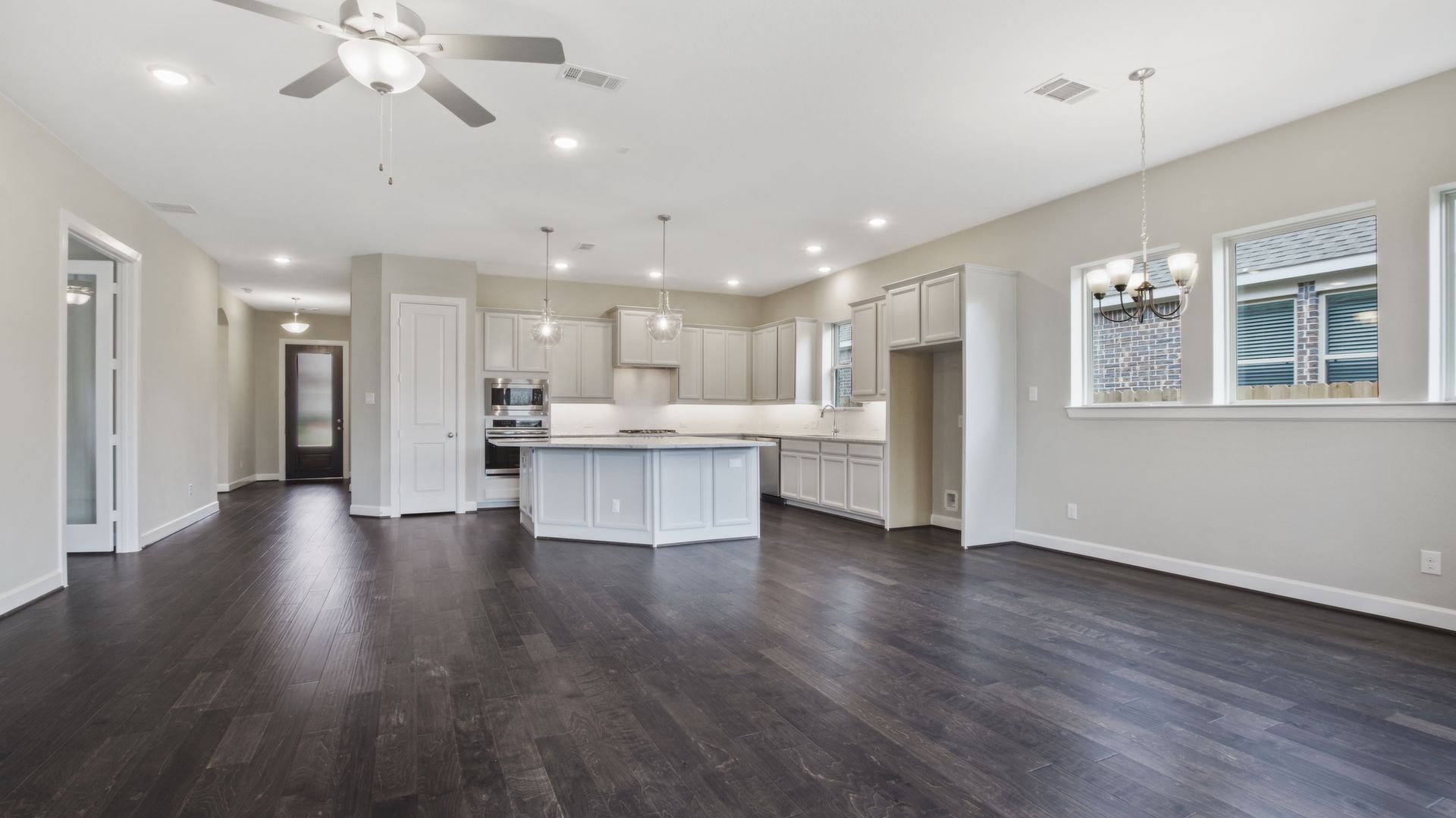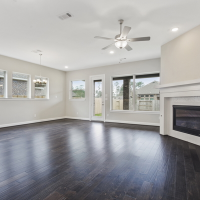 This 3 bedroom, 2 bathroom floor plan with family room fireplace provides luxury and function. The private study with glass French doors makes a great home office or family movie theater. Anytime is a great time to relax outdoors under this home's extended covered patio. Moving around the home is quick and easy thanks to our LifeDesign? features that keep daily life in mind. Enjoy the soft, natural window light from the comfort of the abundant open space in the living area. The kitchen built-in appliances and large wedge island provides the perfect stage for family breakfasts and a great food station for your next social gathering. We believe you’ll get more out of every day in this beautiful new energy efficient home with Diamond level Environments for Living ultra low energy usage guarantee.