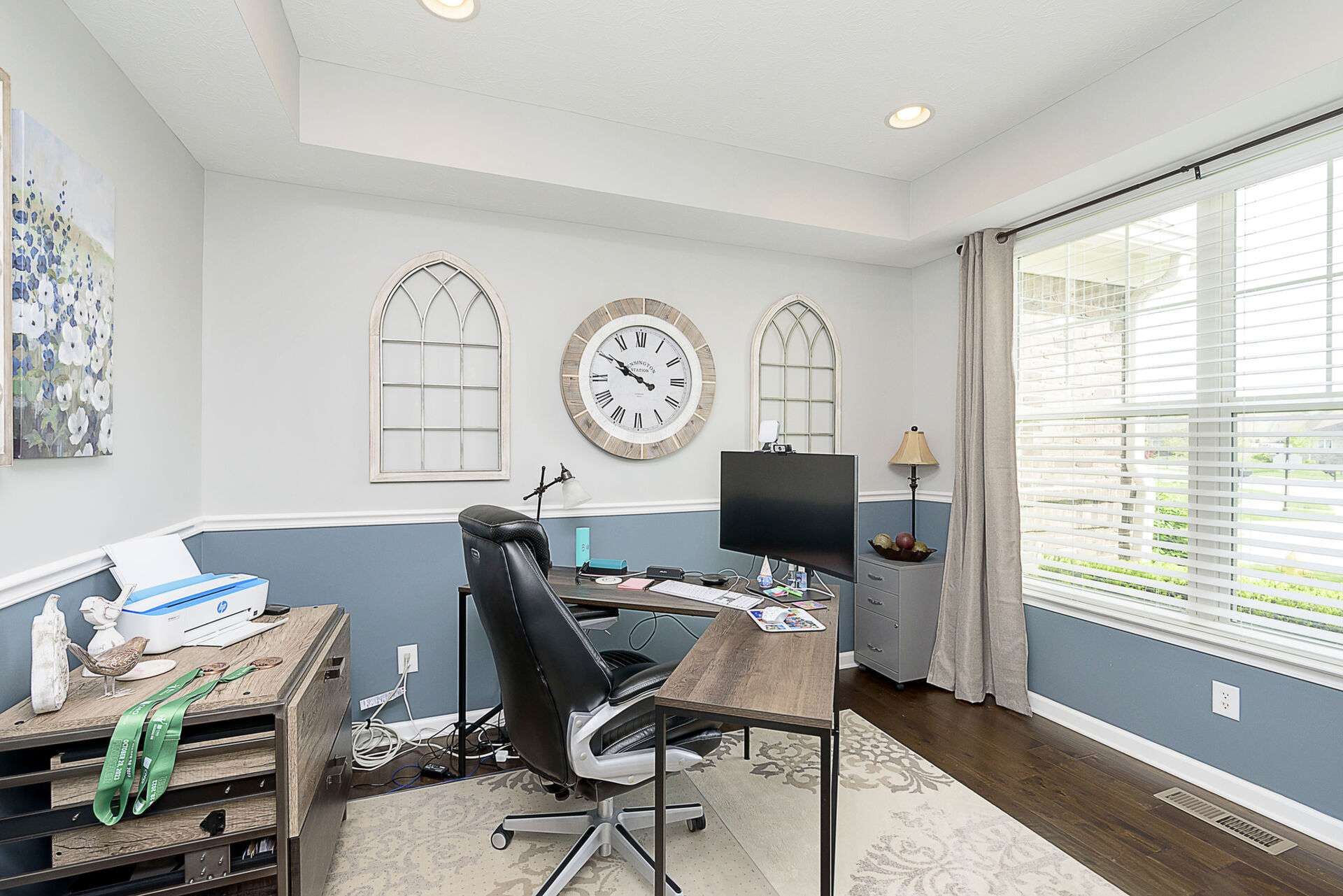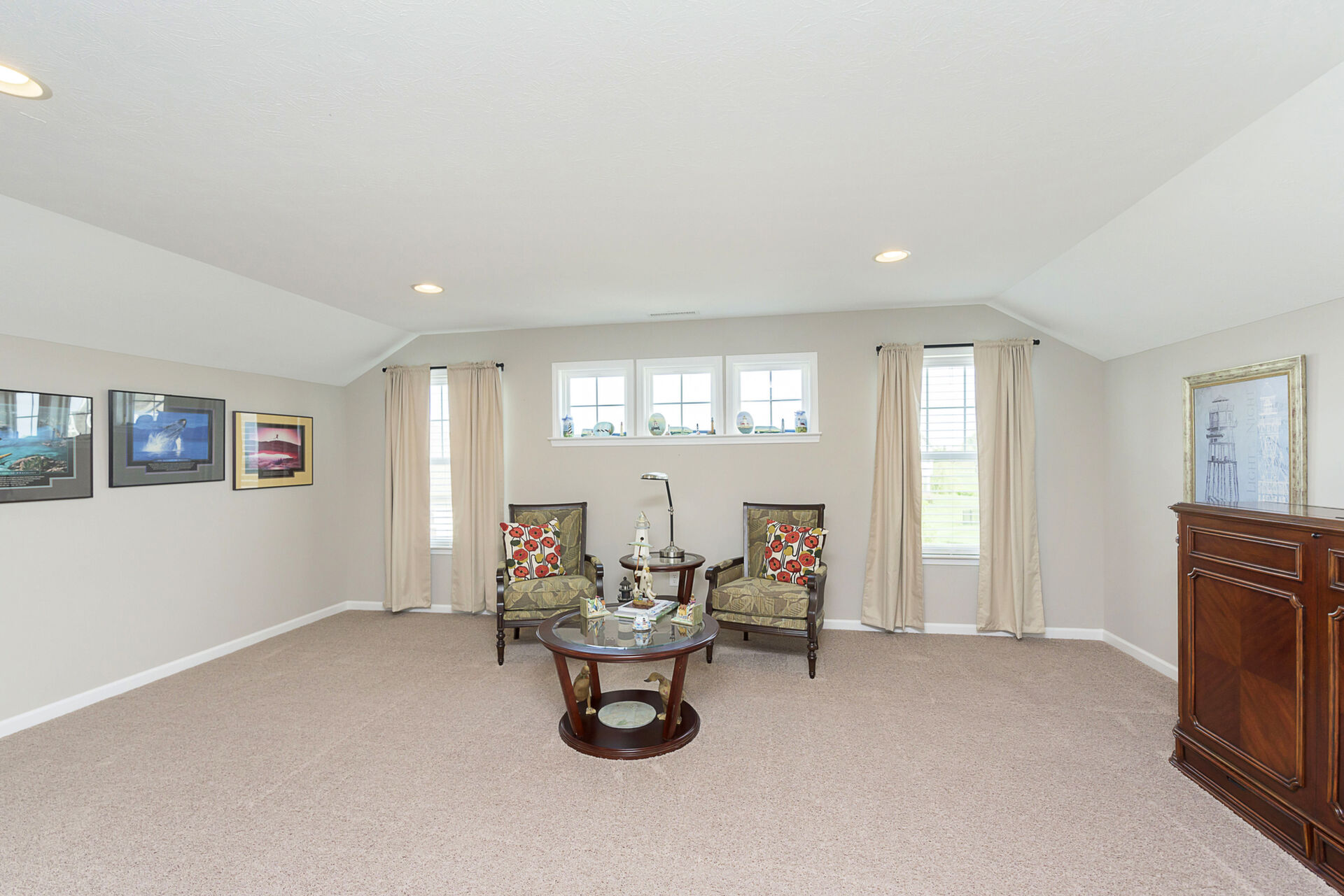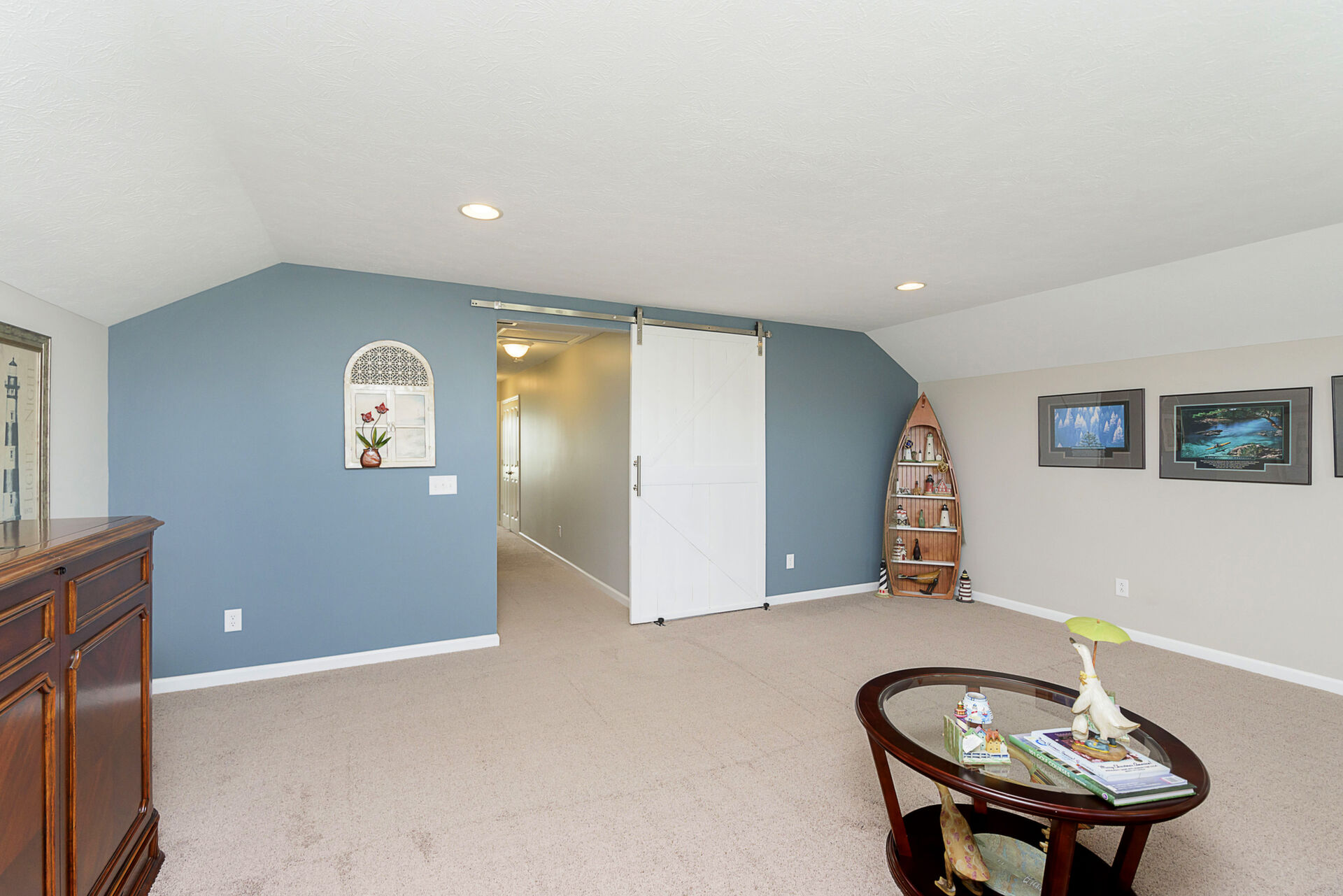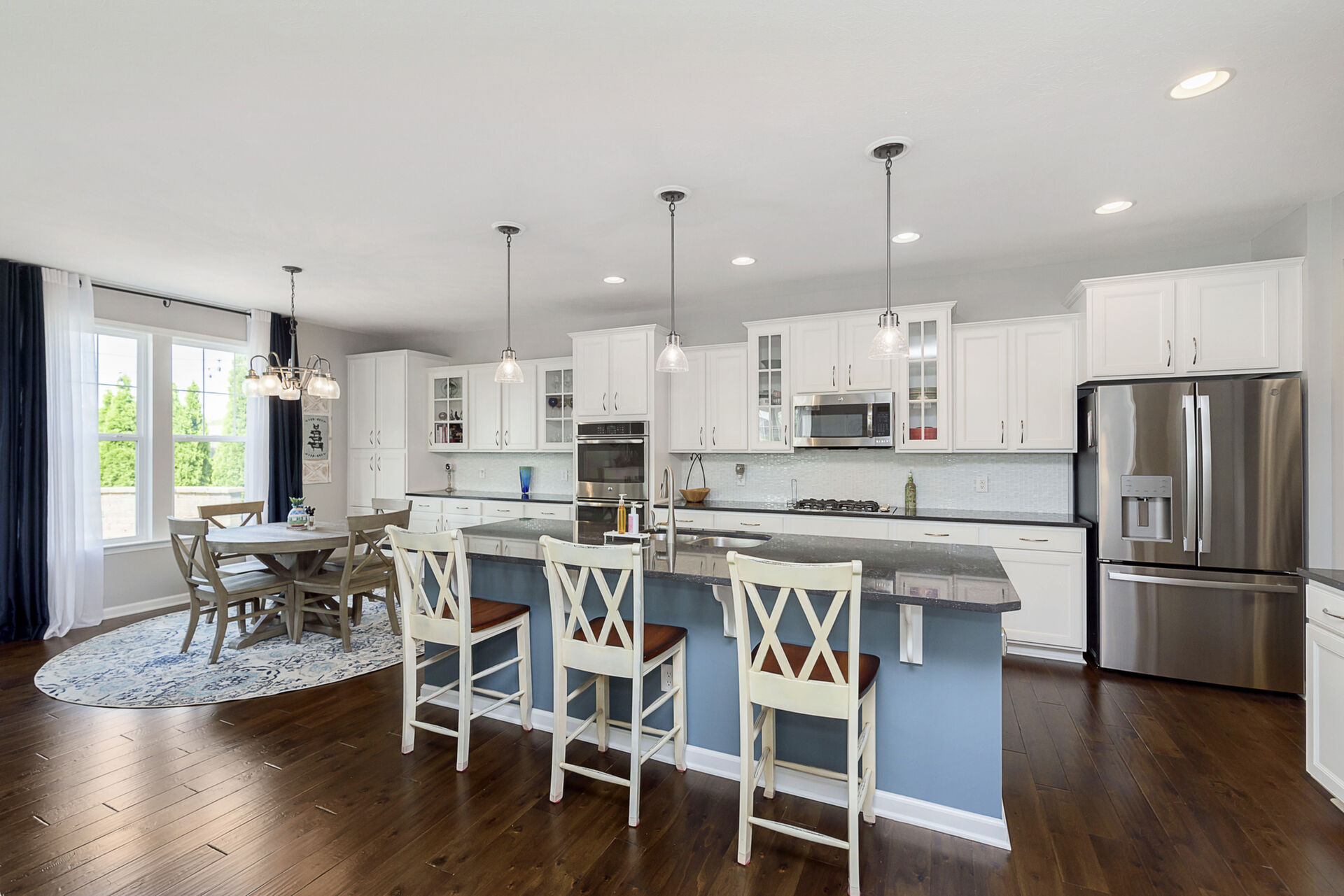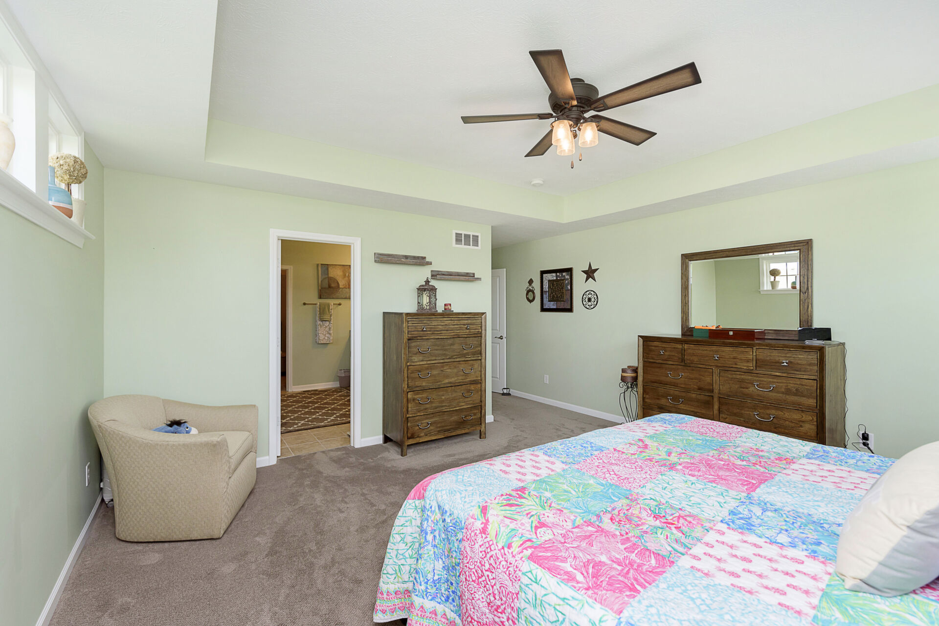 Exceptional 4 bedroom, 4.5 bath ranch style home with spacious floor plan, Pristine Condition. Large open entry brings you into an open Great room with fireplace, tons of windows, Open to Gourmet Kitchen w/tons of counter space, which features an 8-foot Island, SS appliances, double oven, & sandstone countertop, perfect for hosting gatherings! Primary with ensuite on the main level double sinks, oversized shower, and custom finished walk-in closet. Bedrooms 2 & 3 share a Jack-n-Jill bath on the main, an additional bedroom up with a full bath, and a large bonus room. Entertaining is effortless with a fully finished basement, Wet Bar, & Theatre Room, added in 2020. All Components and Memorabilia, Pool Table & Captain Chair, and Mounted TVs in the Basement and Living room stay. The lower level includes a full bath and 2 storage rooms. Amazing serene outdoor oasis w/Custom Paver Patio added in 2017, Outdoor Fireplace, new beverage frig. covered pergola, and extensive established landscaping. All this plus 3 car epoxy garage. This over 5000 sq. ft. of living space is meticulously maintained with many upgrades: New roof 2020, New driveway 2018, Basement & Primary Carpet 2020, Kitchen Frig 2024, Outdoor Frig.