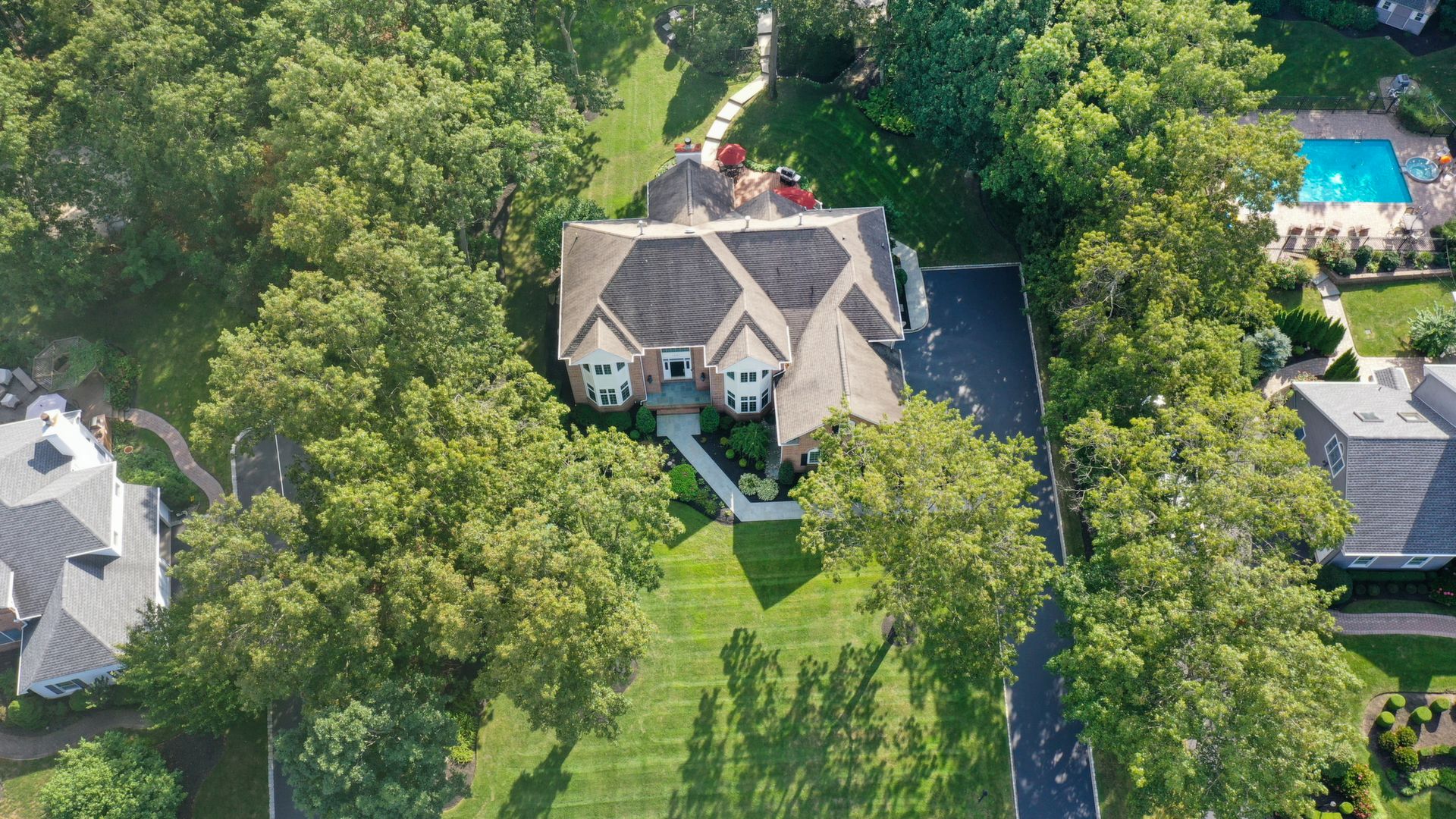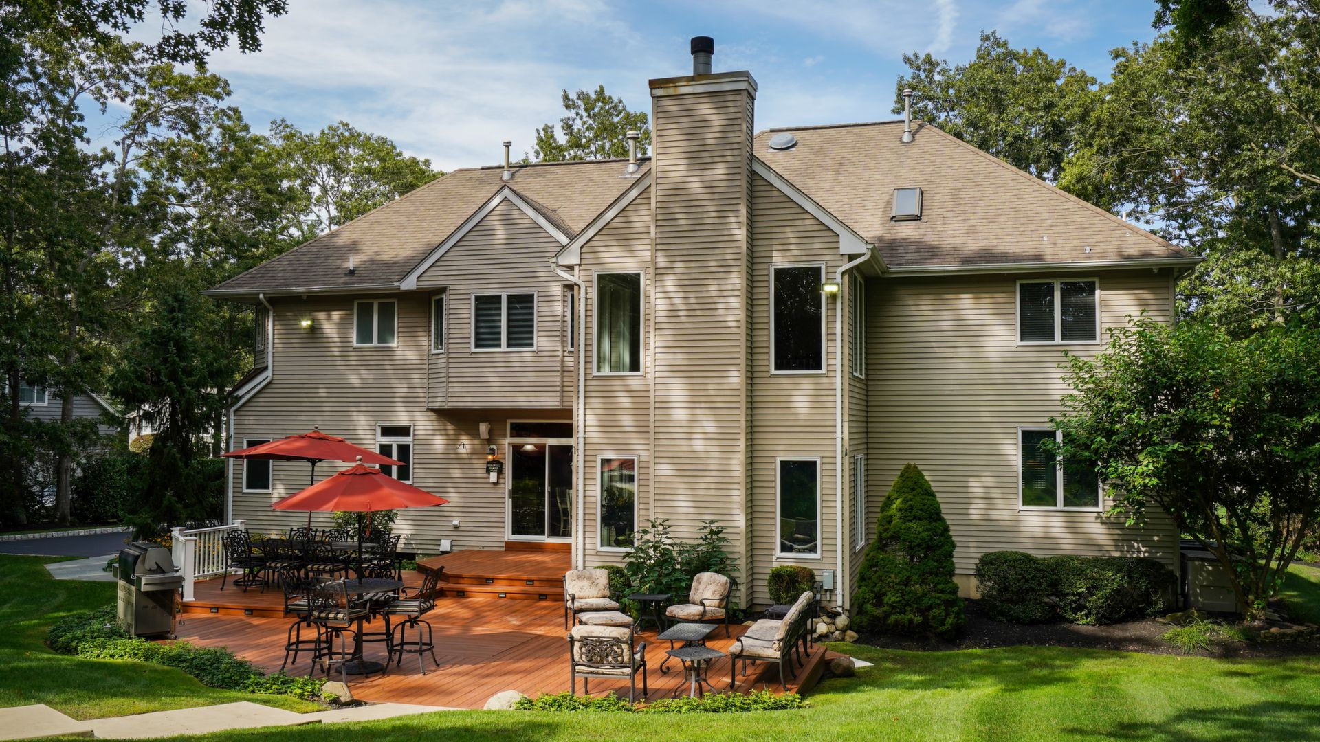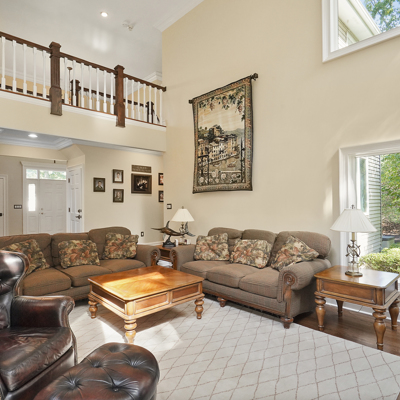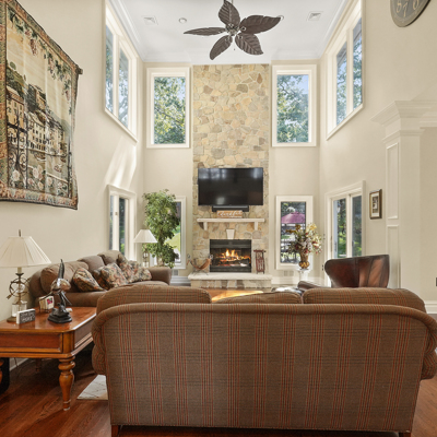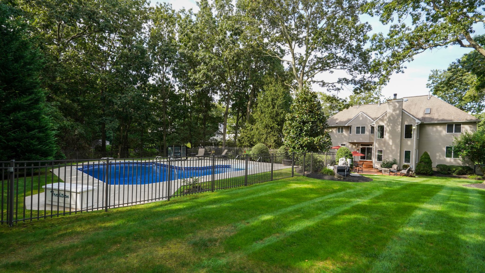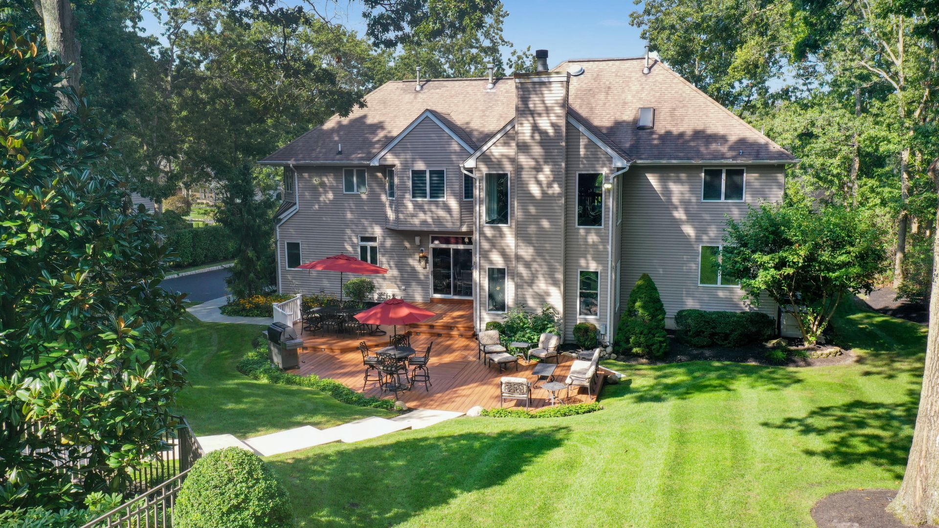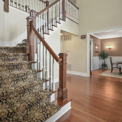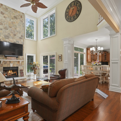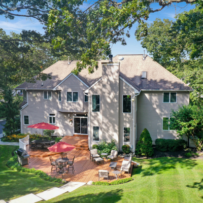Exceptional custom designed home, with over 4000 sf of enticing living space, 4 to 5 Bedrooms, 2.5 Baths; one of the best locations at the desirable Orchard Crest community. Main living level features a 2 story foyer, 9 ft ceilings w palladium & custom windows that saturate the rooms with natural light.Decorative millwork, moldings, trim and hardwood floors throughout! Large culinary kitchen w ss appliances, granite counter tops, pantry, custom cabinets & informal dining area. Butlers pantry bridges the kitchen to the formal dining rm. First fl guest bedroom used as an office. 2 story family rm w stone surround fire place. Multiple sliders out to deck, pool, patio & private park-like wooded setting. Enter the grand Master Bedroom suite. 9ft crafted millwork tray ceiling, separate open lounging room.2 Large walk in closets.Spa style bathroom.Steam shower, radiant heated fl, granite countertops with his and her sinks and mini bar frig in cabinet.Finished basement has an exercise rm, home theater style room, workshop and lots of storage.