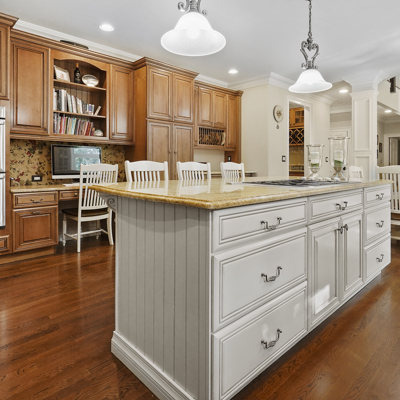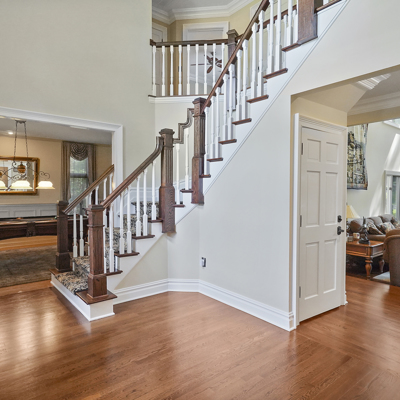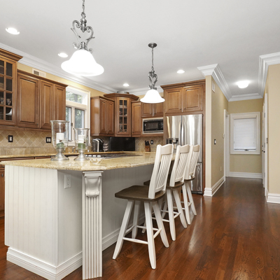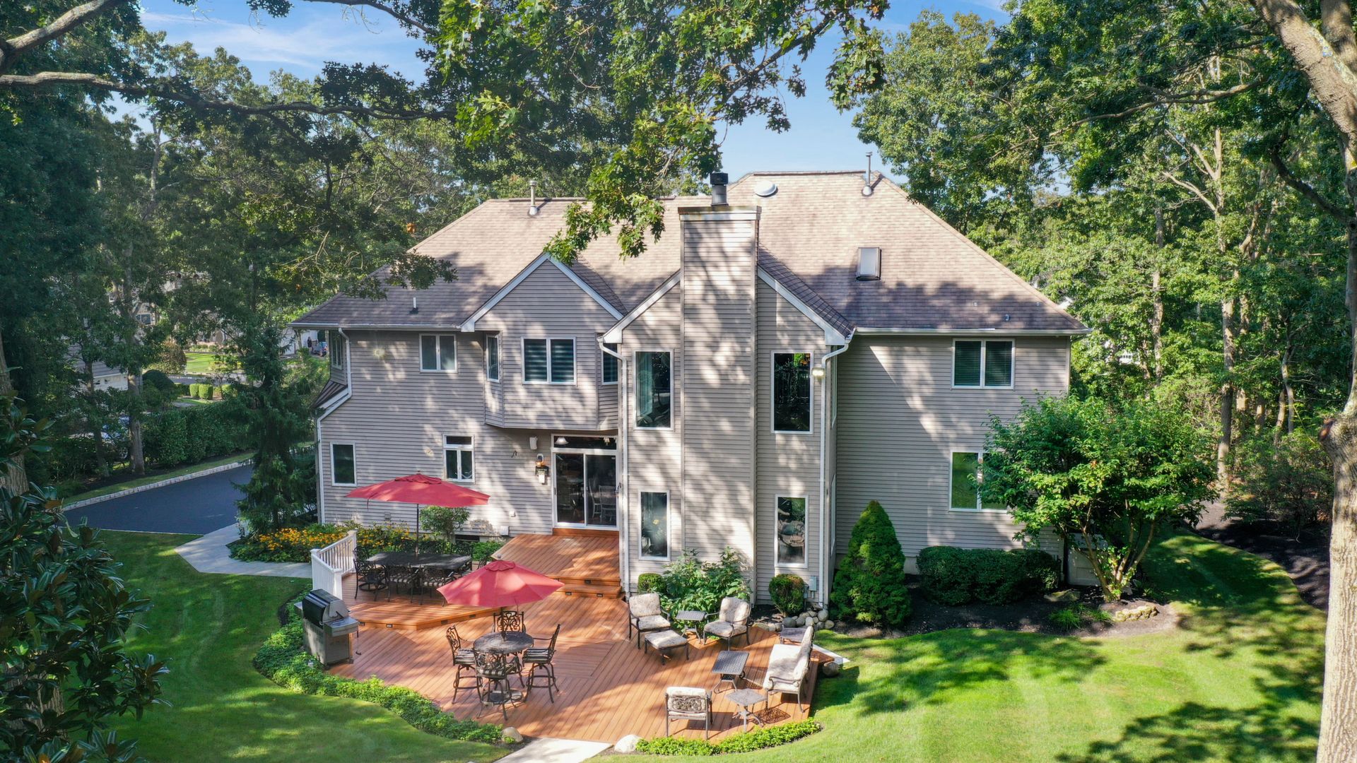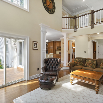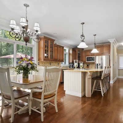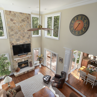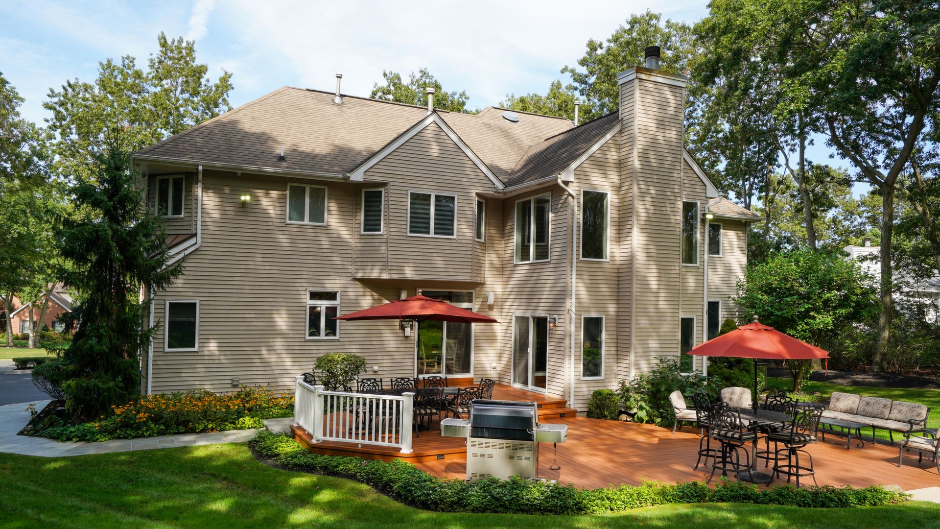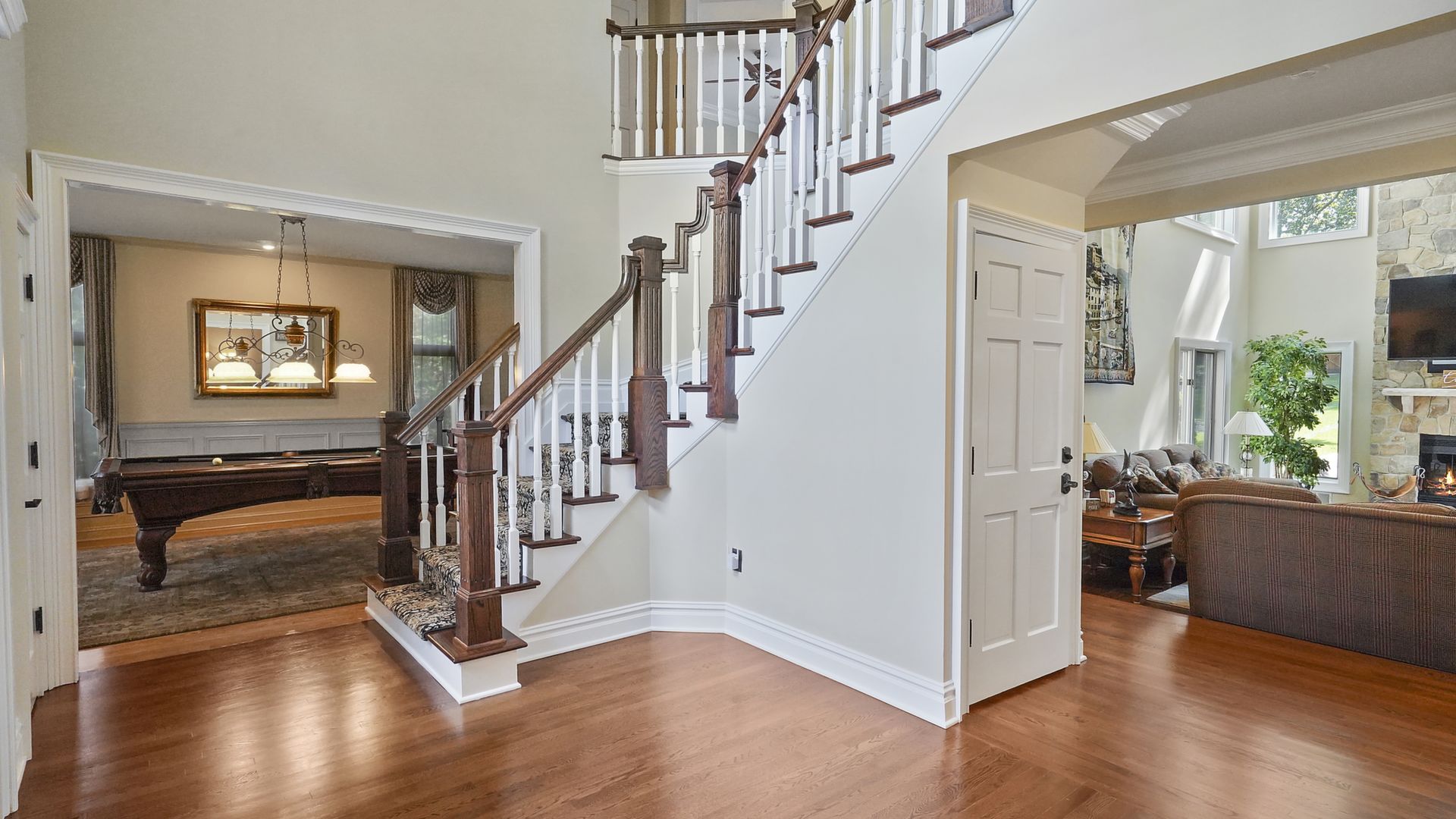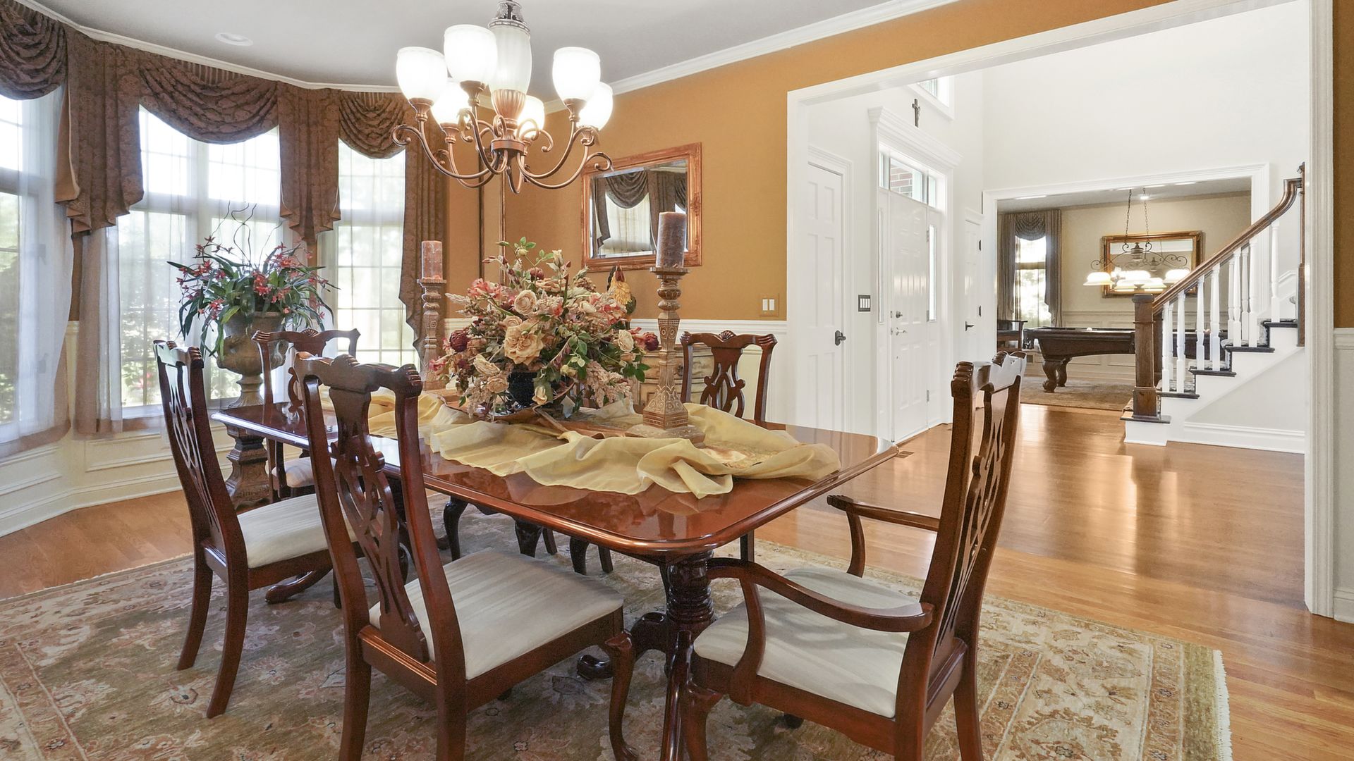Exceptional custom designed home, with over 4000 sf of enticing living space, 4 to 5 Bedrooms, 2.5 Baths; one of the best locations at the desirable Orchard Crest community. Main living level features a 2 story foyer, 9 ft ceilings w palladium & custom windows that saturate the rooms with natural light.Decorative millwork, moldings, trim and hardwood floors throughout! Large culinary kitchen w ss appliances, granite counter tops, pantry, custom cabinets & informal dining area. Butlers pantry bridges the kitchen to the formal dining rm. First fl guest bedroom used as an office. 2 story family rm w stone surround fire place. Multiple sliders out to deck, pool, patio & private park-like wooded setting. Enter the grand Master Bedroom suite. 9ft crafted millwork tray ceiling, separate open lounging room.2 Large walk in closets.Spa style bathroom.Steam shower, radiant heated fl, granite countertops with his and her sinks and mini bar frig in cabinet.Finished basement has an exercise rm, home theater style room, workshop and lots of storage.