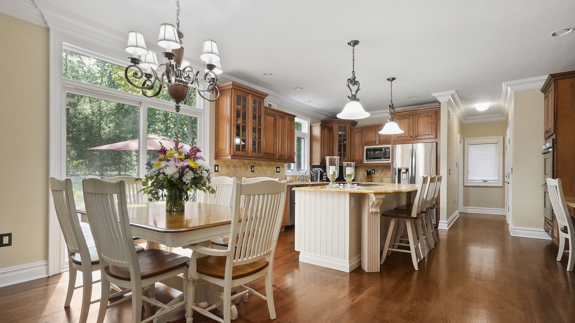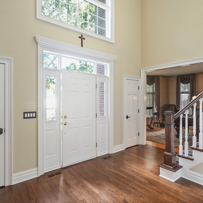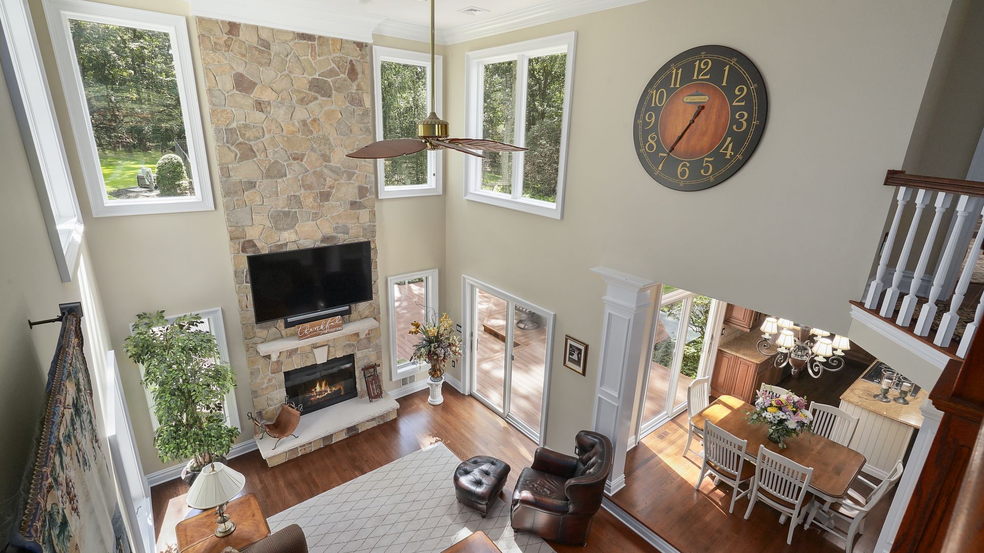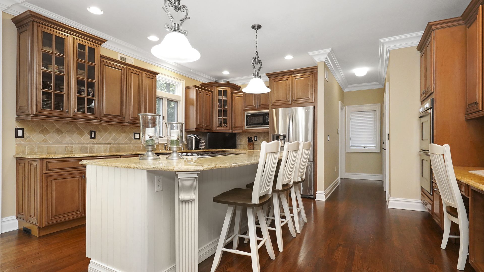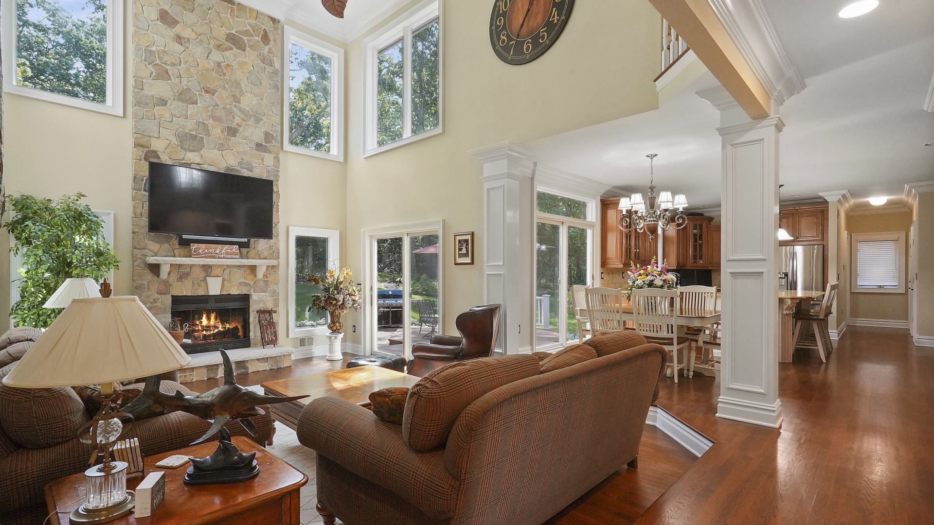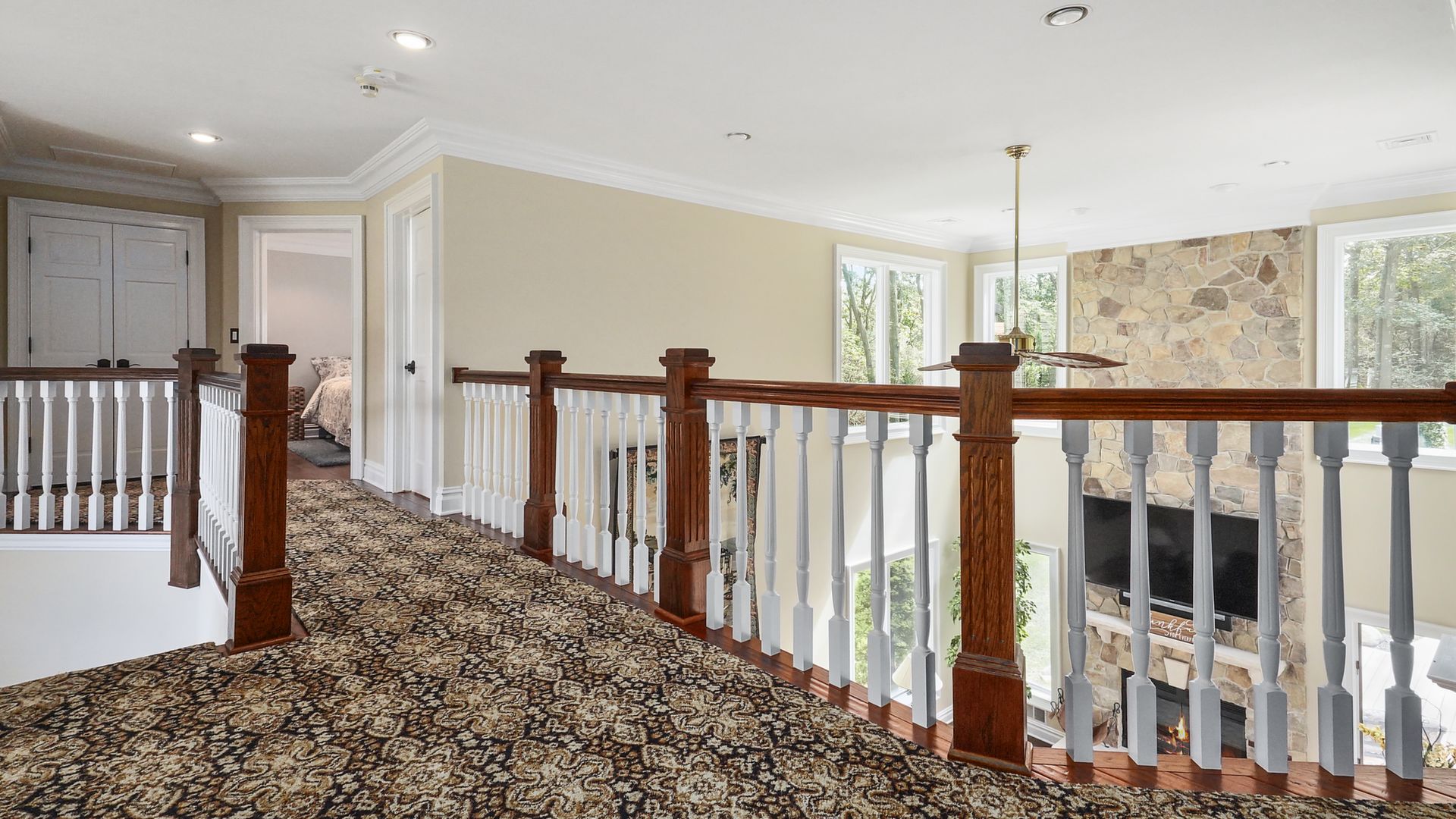 Exceptional custom designed home, with over 4000 sf of enticing living space, 4 to 5 Bedrooms, 2.5 Baths; one of the best locations at the desirable Orchard Crest community. Main living level features a 2 story foyer, 9 ft ceilings w palladium & custom windows that saturate the rooms with natural light.Decorative millwork, moldings, trim and hardwood floors throughout! Large culinary kitchen w ss appliances, granite counter tops, pantry, custom cabinets & informal dining area. Butlers pantry bridges the kitchen to the formal dining rm. First fl guest bedroom used as an office. 2 story family rm w stone surround fire place. Multiple sliders out to deck, pool, patio & private park-like wooded setting. Enter the grand Master Bedroom suite. 9ft crafted millwork tray ceiling, separate open lounging room.2 Large walk in closets.Spa style bathroom.Steam shower, radiant heated fl, granite countertops with his and her sinks and mini bar frig in cabinet.Finished basement has an exercise rm, home theater style room, workshop and lots of storage.