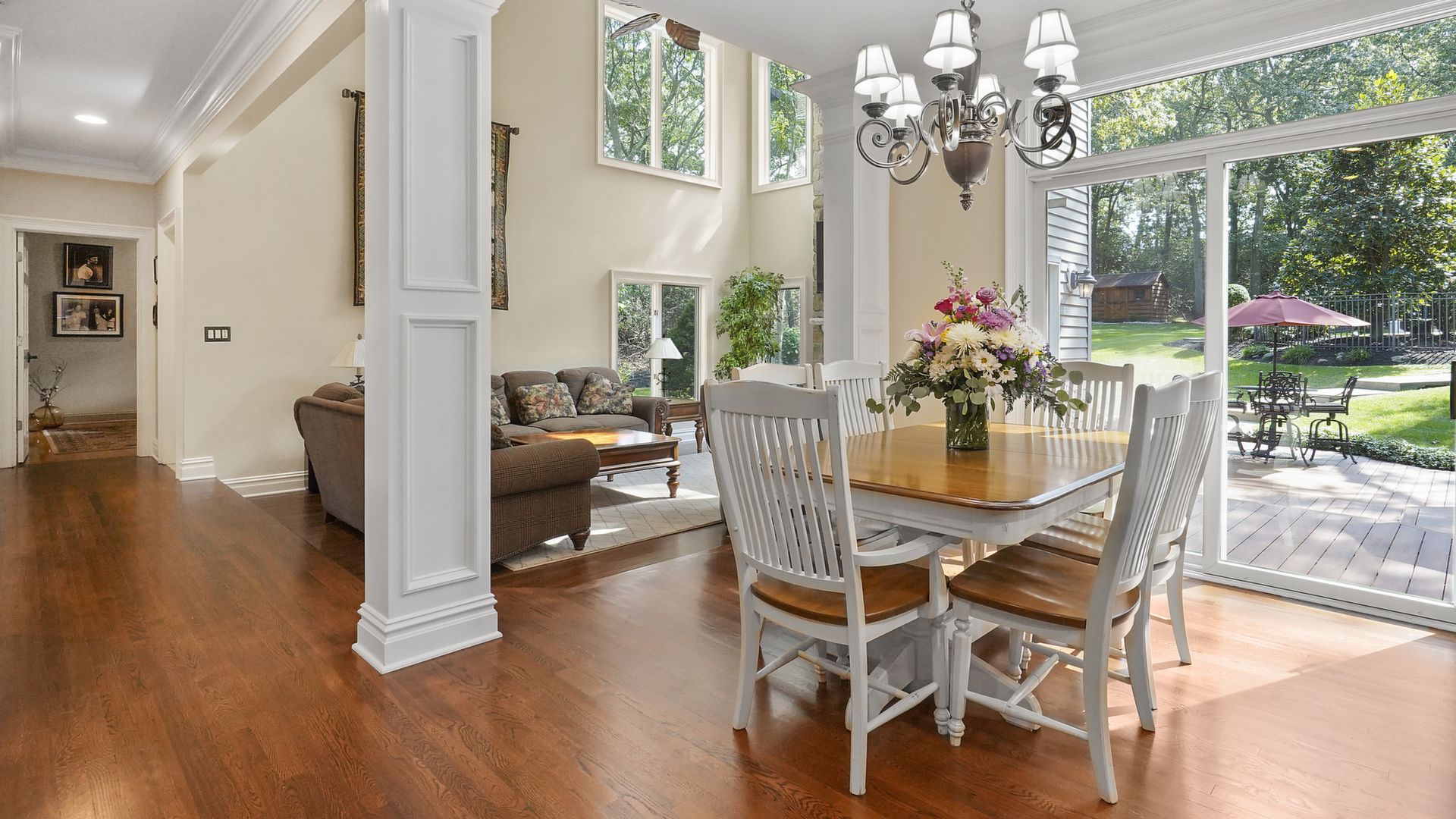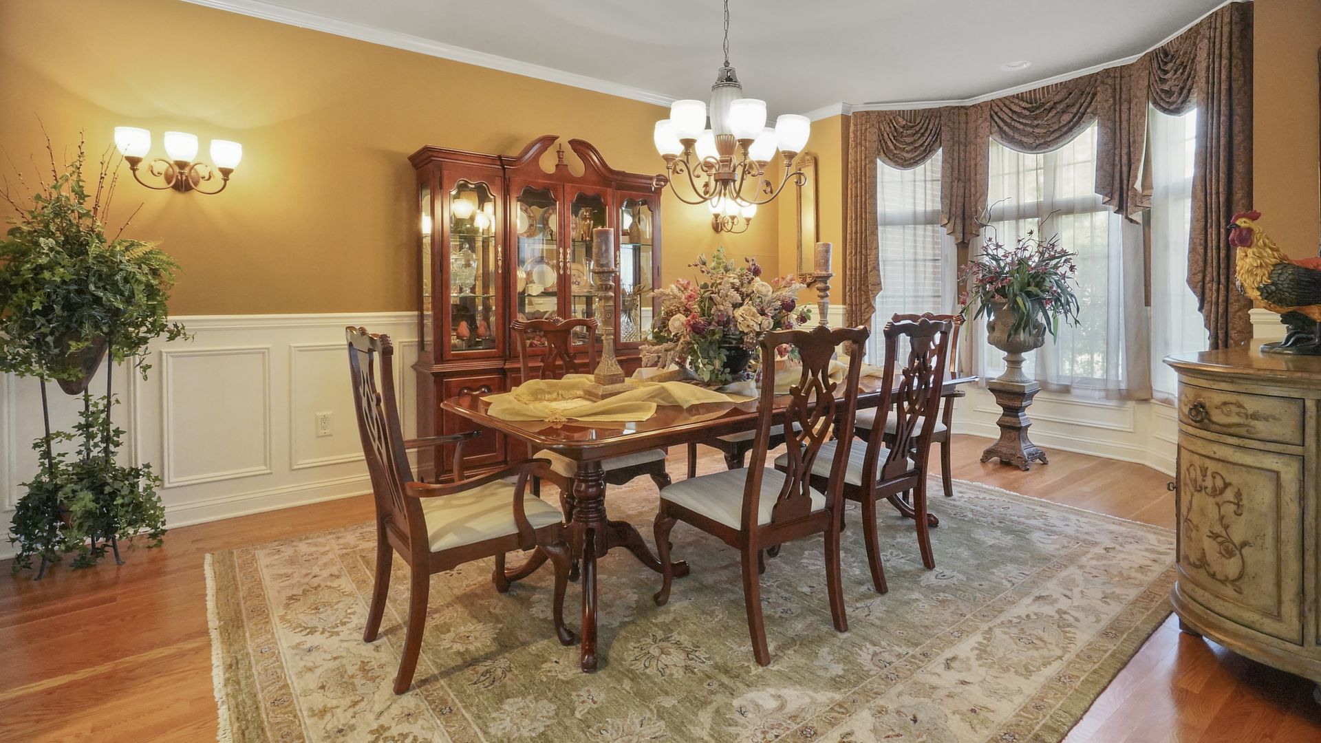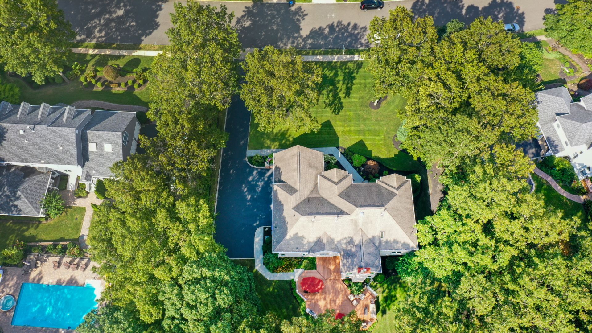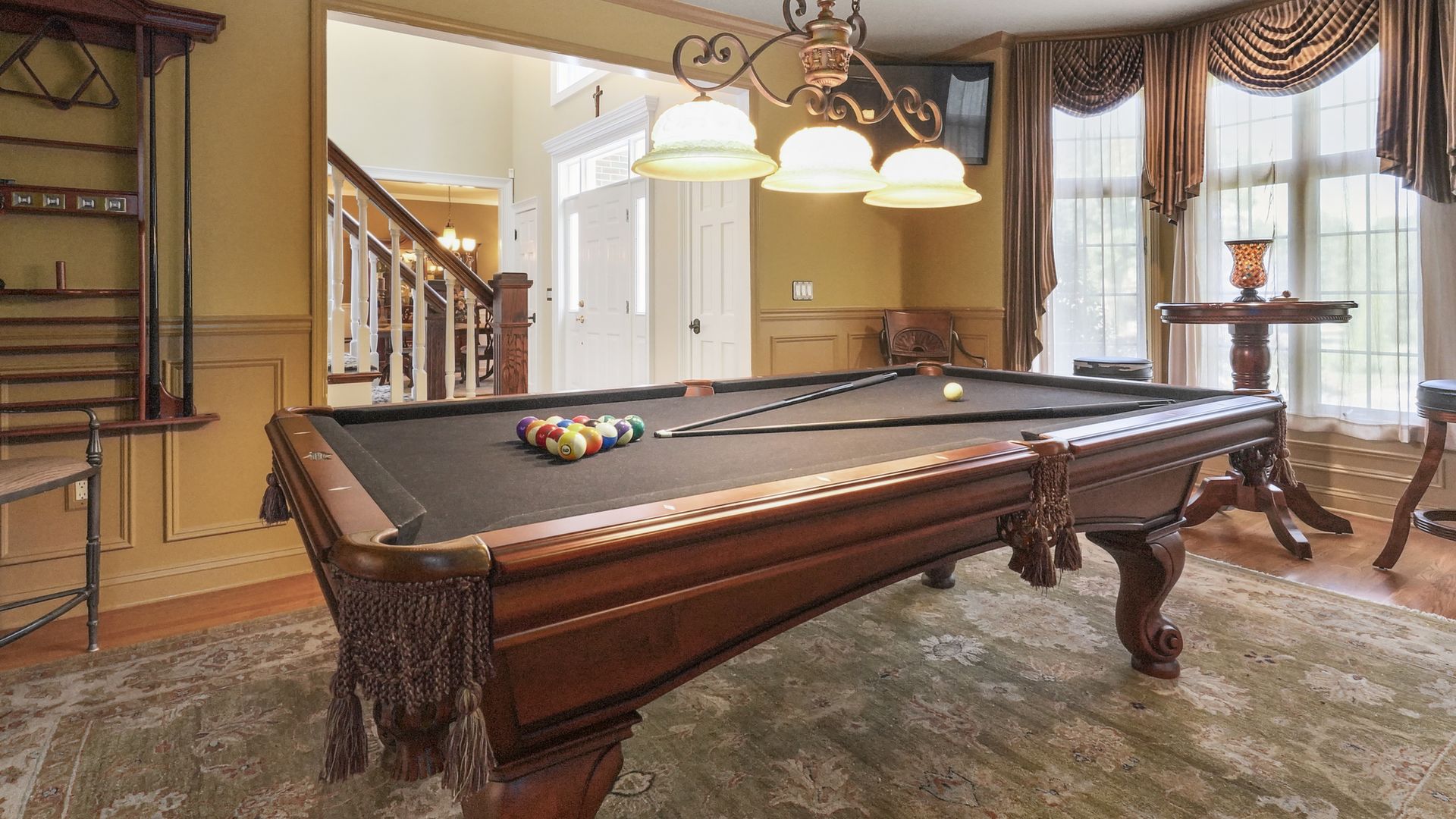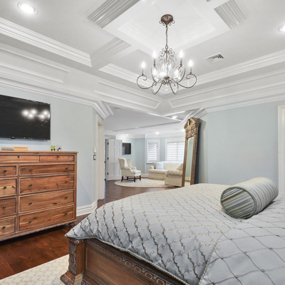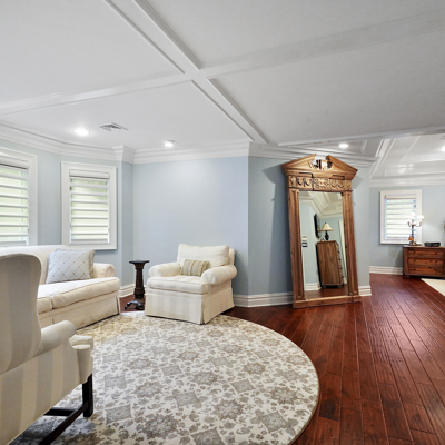 Exceptional custom designed home, with over 4000 sf of enticing living space, 4 to 5 Bedrooms, 2.5 Baths; one of the best locations at the desirable Orchard Crest community. Main living level features a 2 story foyer, 9 ft ceilings w palladium & custom windows that saturate the rooms with natural light.Decorative millwork, moldings, trim and hardwood floors throughout! Large culinary kitchen w ss appliances, granite counter tops, pantry, custom cabinets & informal dining area. Butlers pantry bridges the kitchen to the formal dining rm. First fl guest bedroom used as an office. 2 story family rm w stone surround fire place. Multiple sliders out to deck, pool, patio & private park-like wooded setting. Enter the grand Master Bedroom suite. 9ft crafted millwork tray ceiling, separate open lounging room.2 Large walk in closets.Spa style bathroom.Steam shower, radiant heated fl, granite countertops with his and her sinks and mini bar frig in cabinet.Finished basement has an exercise rm, home theater style room, workshop and lots of storage.