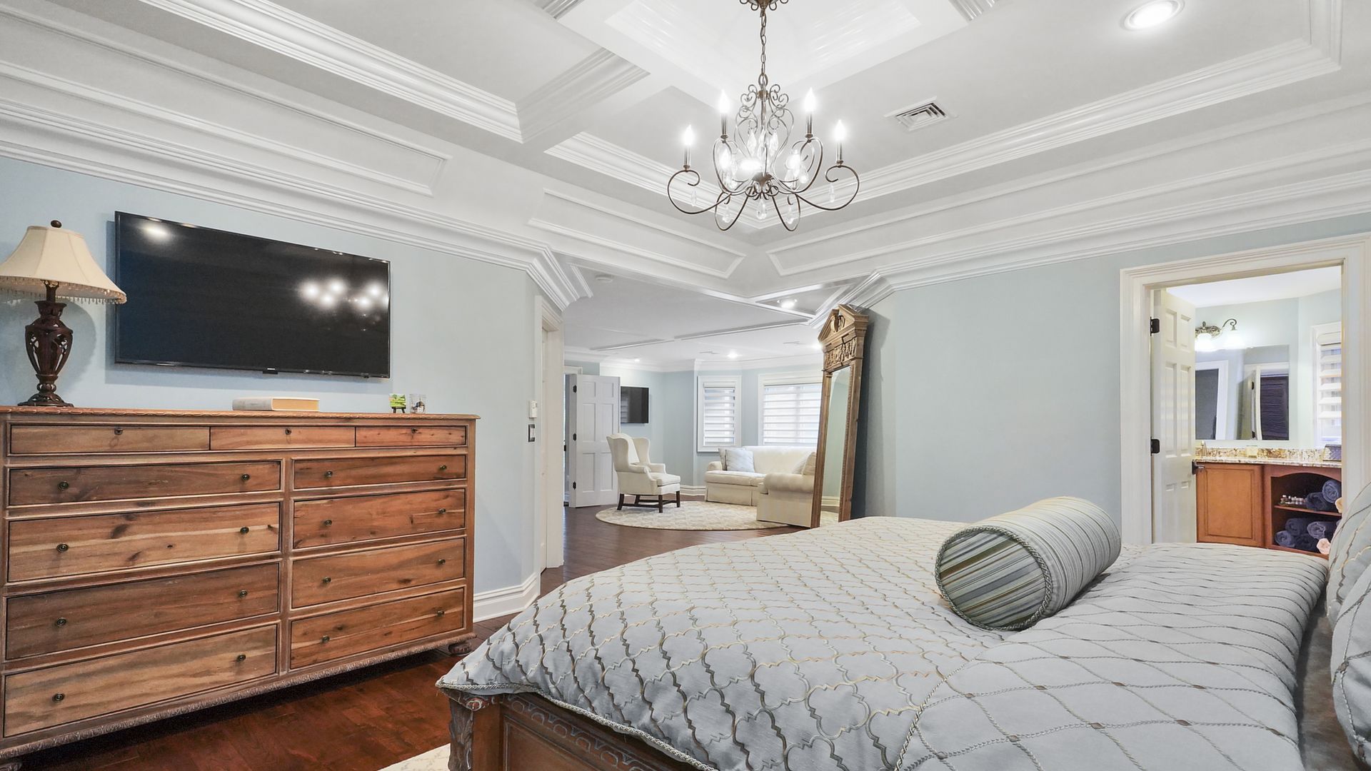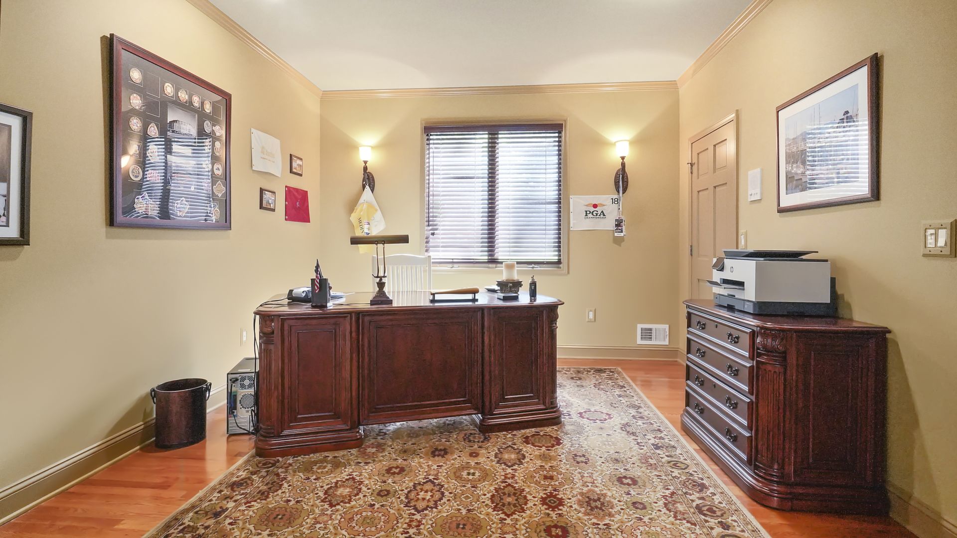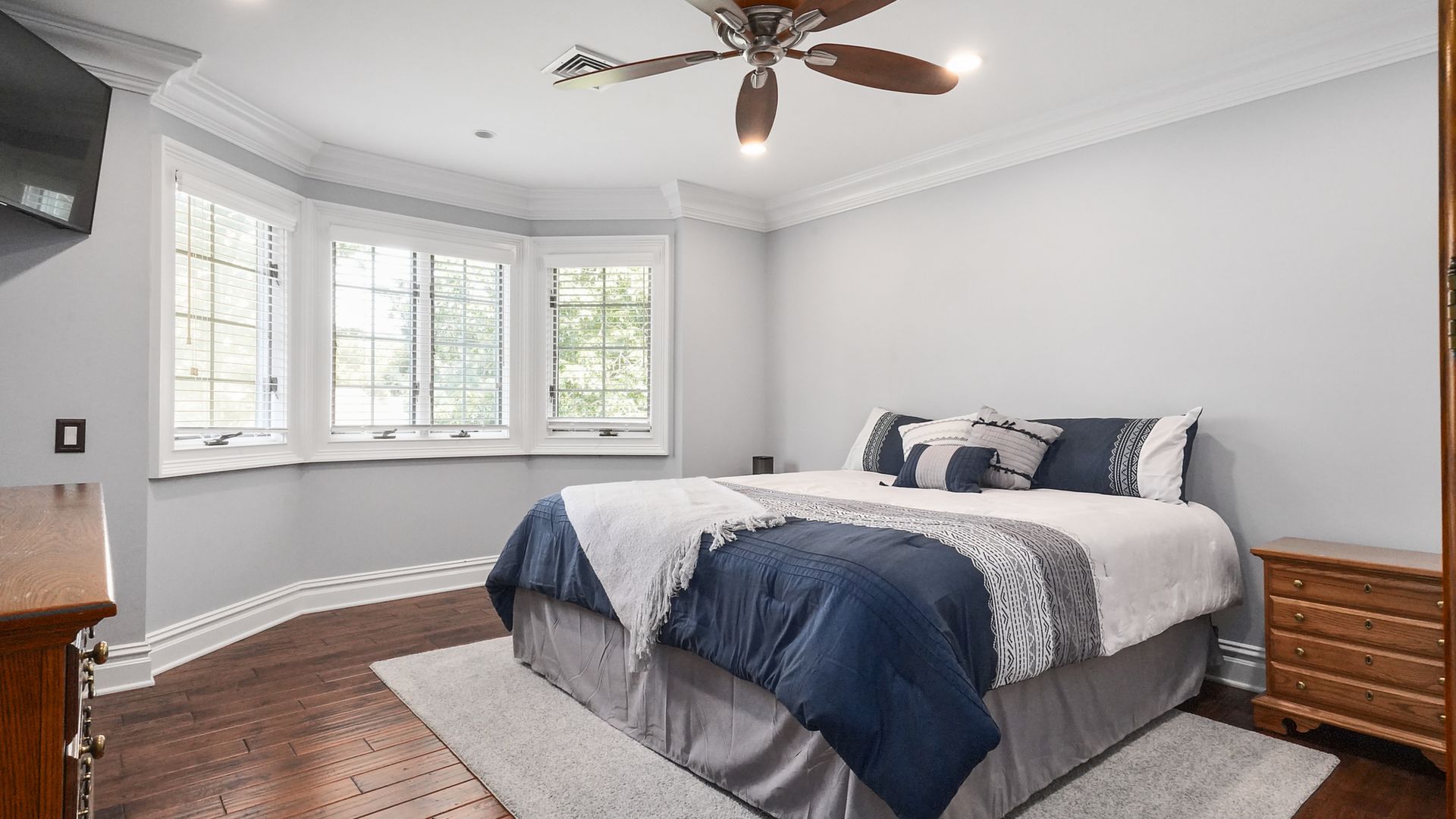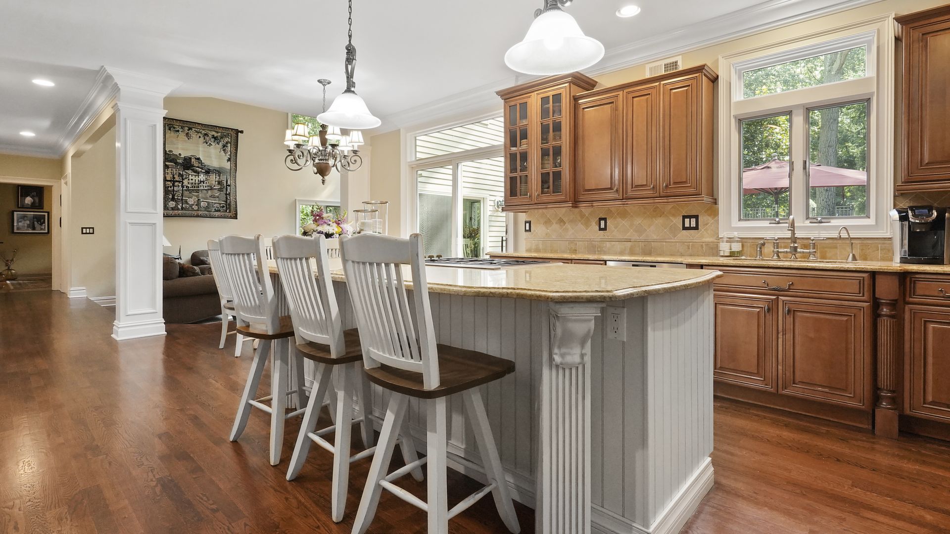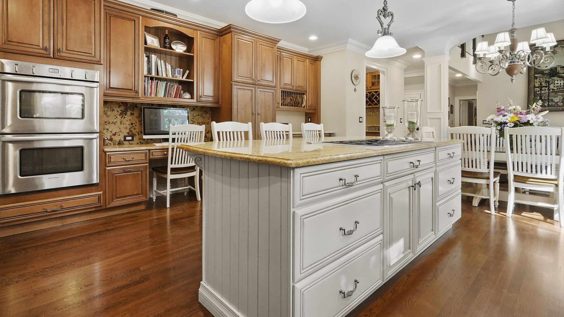 Exceptional custom designed home, with over 4000 sf of enticing living space, 4 to 5 Bedrooms, 2.5 Baths; one of the best locations at the desirable Orchard Crest community. Main living level features a 2 story foyer, 9 ft ceilings w palladium & custom windows that saturate the rooms with natural light.Decorative millwork, moldings, trim and hardwood floors throughout! Large culinary kitchen w ss appliances, granite counter tops, pantry, custom cabinets & informal dining area. Butlers pantry bridges the kitchen to the formal dining rm. First fl guest bedroom used as an office. 2 story family rm w stone surround fire place. Multiple sliders out to deck, pool, patio & private park-like wooded setting. Enter the grand Master Bedroom suite. 9ft crafted millwork tray ceiling, separate open lounging room.2 Large walk in closets.Spa style bathroom.Steam shower, radiant heated fl, granite countertops with his and her sinks and mini bar frig in cabinet.Finished basement has an exercise rm, home theater style room, workshop and lots of storage.