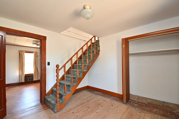 This home sits on a large piece of property with a shed and with plenty of parking space. Your kitchen is large enough for a breakfast nook and your upper level has room for a bedroom.