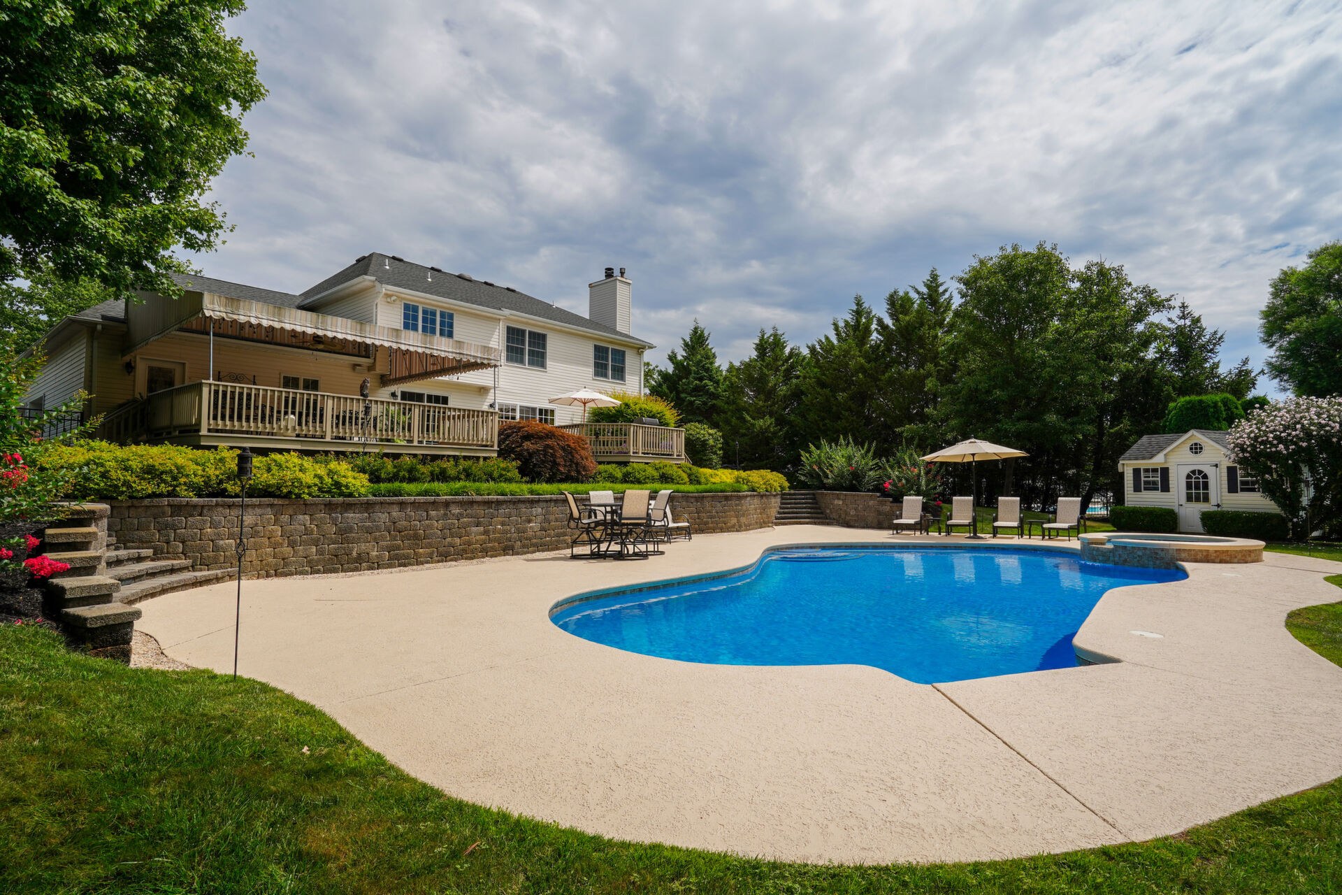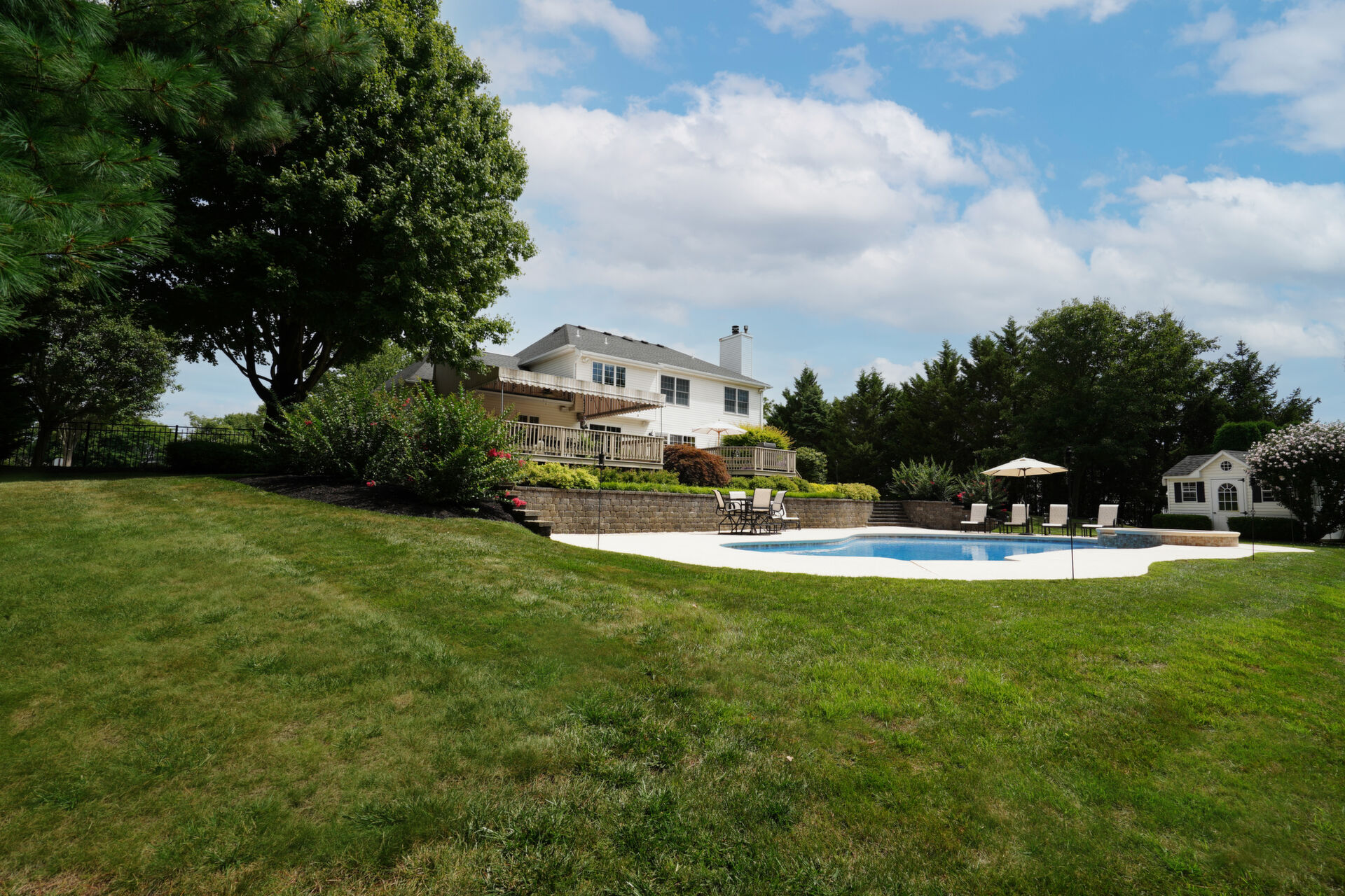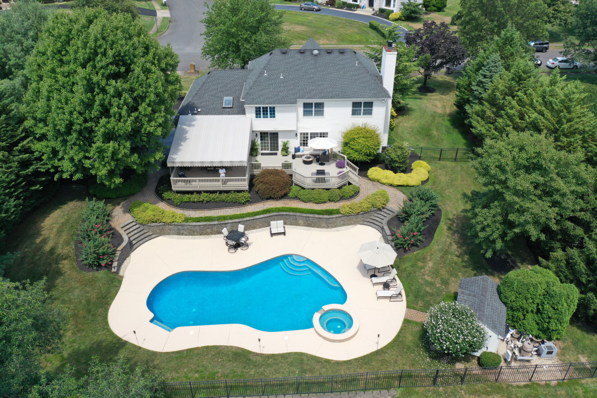 This stunning, private, stately colonial sits on over an acre of beautiful, lush, manicured landscaping with Gunite heated pool and spa. Newer kitchen features Luxor cabinetry, Sub Zero refrigerator, two Thermador ovens and large, granite, custom center island. Retreat to the master suite and enjoy an exquisite master bath with freestanding tub and oversized shower, spacious walk-in closet and separate office/sitting area. Full finished basement, newer baths, custom outdoor lighting. This is an Exceptional Home!