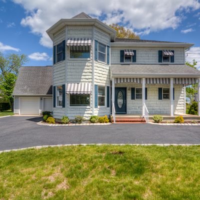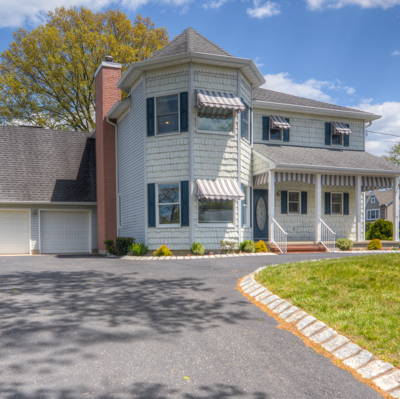 Custom built home perched on an elevated lot with river views in the Port-au-Peck section of Oceanport.