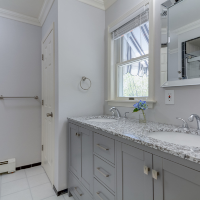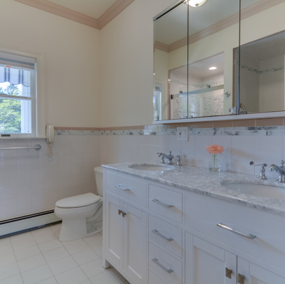 Highlighted features include 2 master suites, one on the 1st floor. Also impressive decorative crown molding throughout, hardwood floors, 9' ceilings, sun room, walk up attic and oversized 2 car garage.