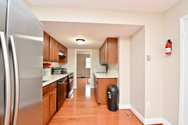 This home features gleaming hardwood floors, open bright living room, finished lower level with updated flooring and a cozy fireplace.