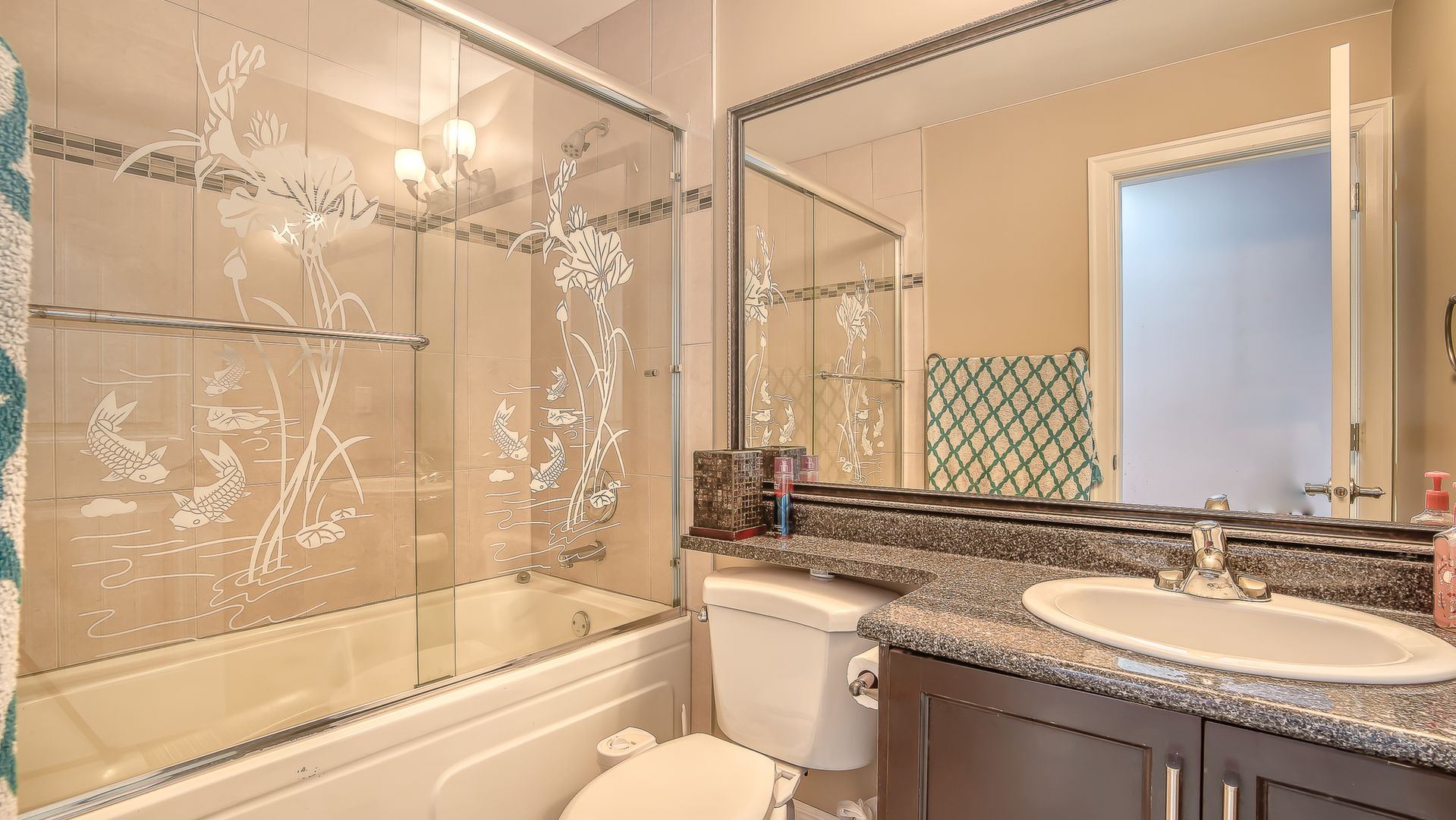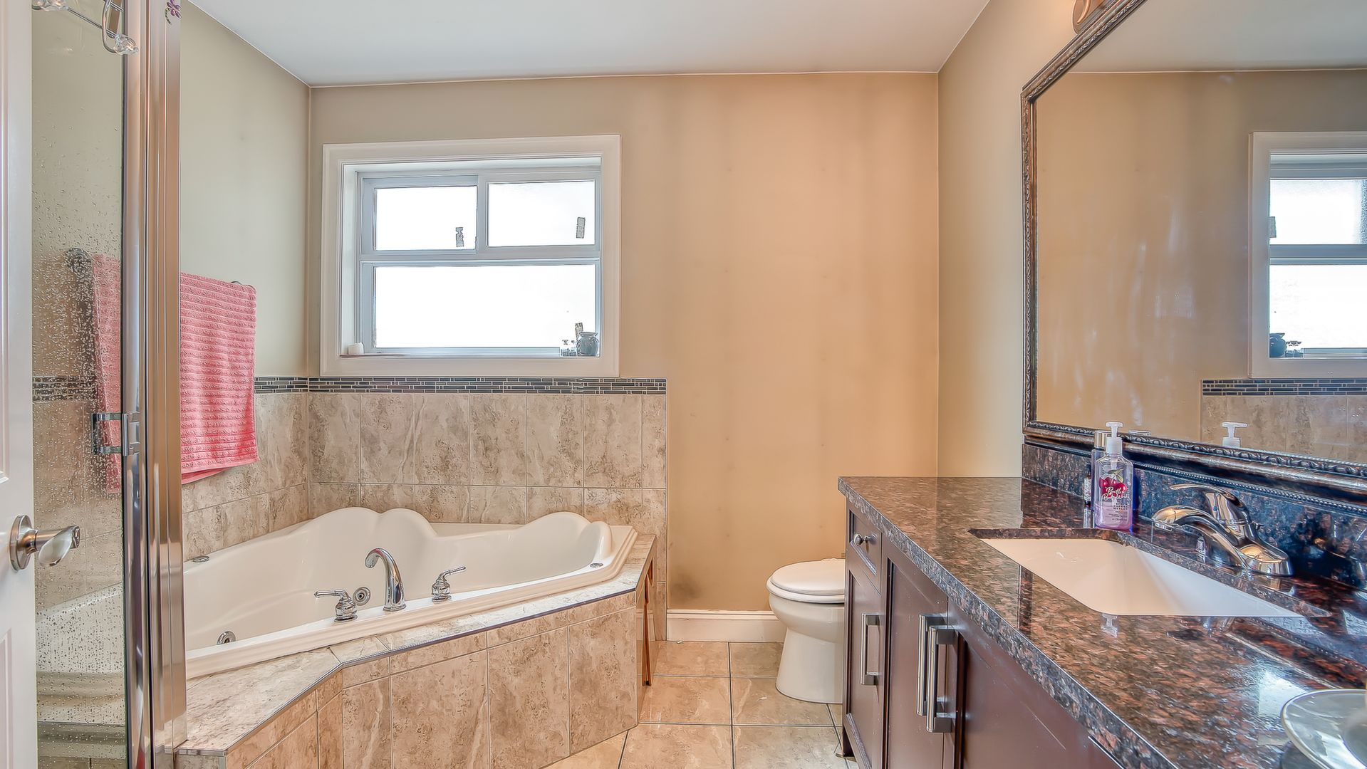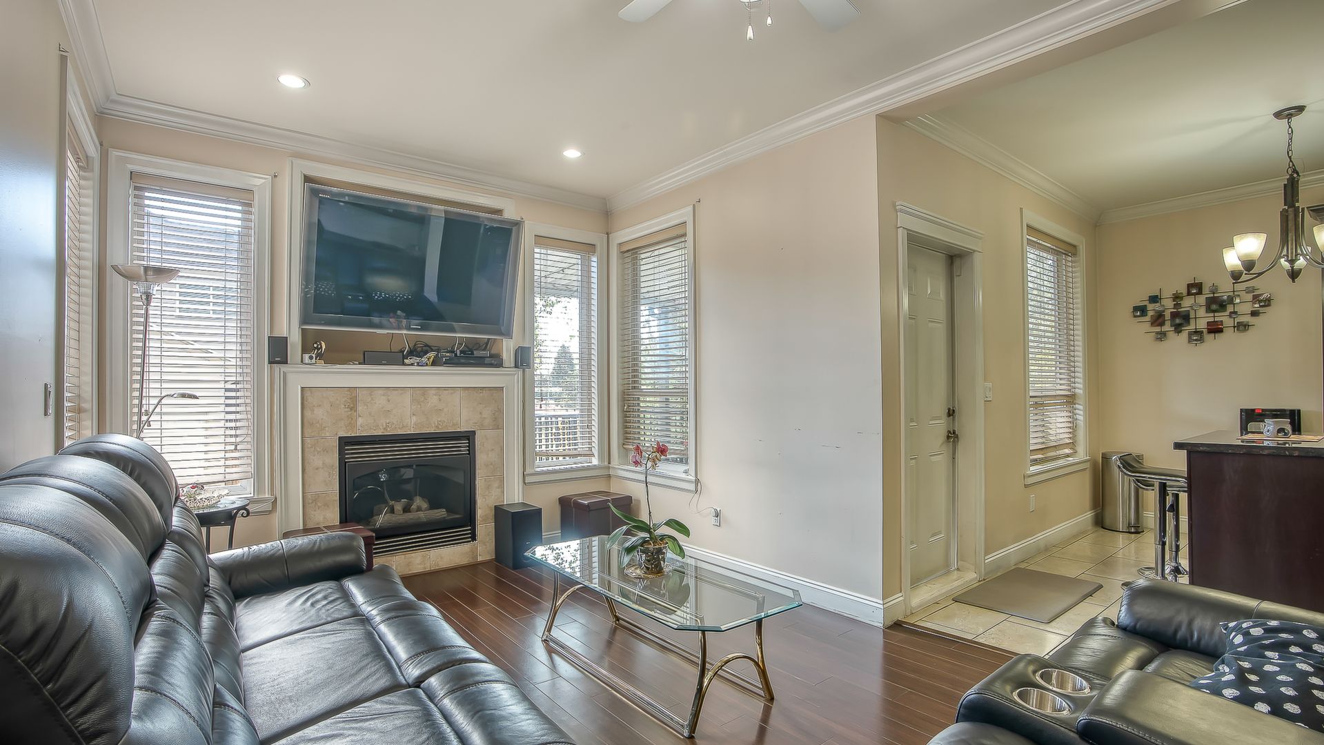 family living with attention to detail and beautiful maple stained wood kitchen with granite counter top and high ceilings. Huge theatre room and bar