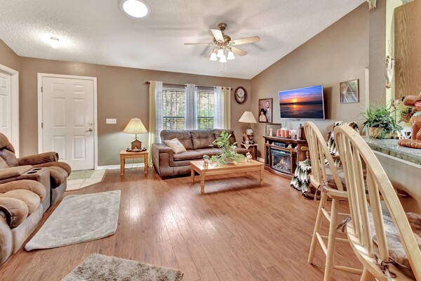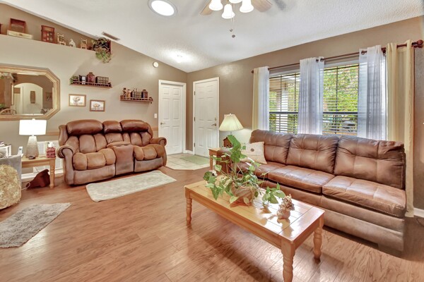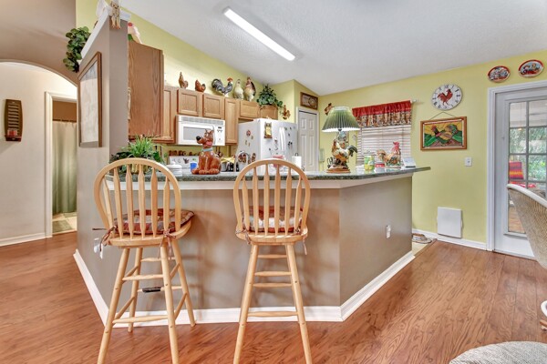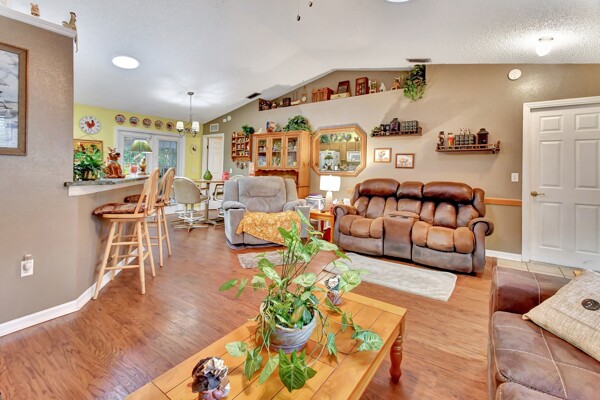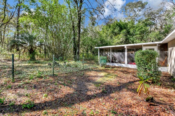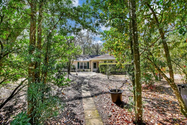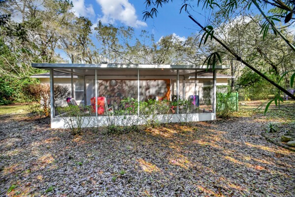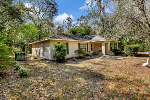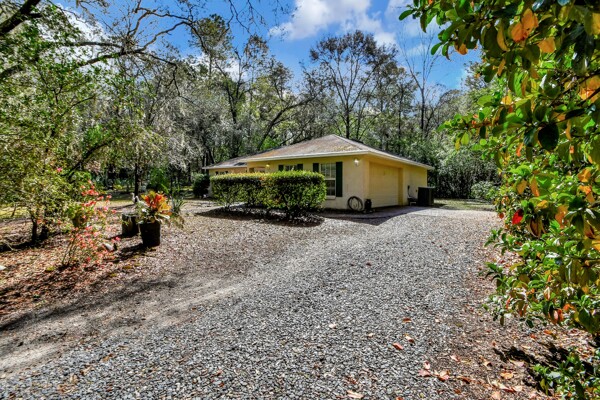 Welcome to your own private oasis in the heart of DeLand! This stunning Single Family Home, built in 2004 by Today Homes, is nestled on a .95 wooded and gated lot in the bird sanctuary of Glenwood. Boasting 3 bedrooms, 2 bathrooms, and a spacious 1117 square feet of living space, this home offers a peaceful retreat from the hustle and bustle of everyday life. The open/split floorplan features cathedral ceilings, a breakfast bar, wooden blinds, newer laminate flooring, plant shelves, knock