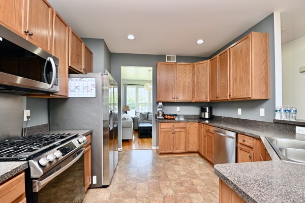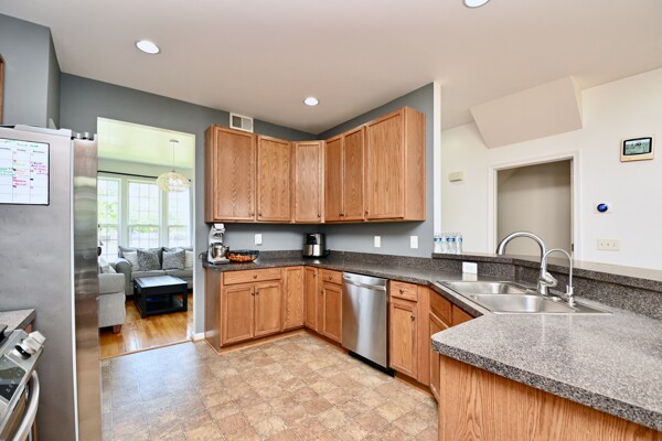 This home boasts a large kitchen with island seating, family room with cozy fireplace, large primary bedroom with private bath and a recreation room that is finished and is also a walk-out. All this and more are waiting for you.