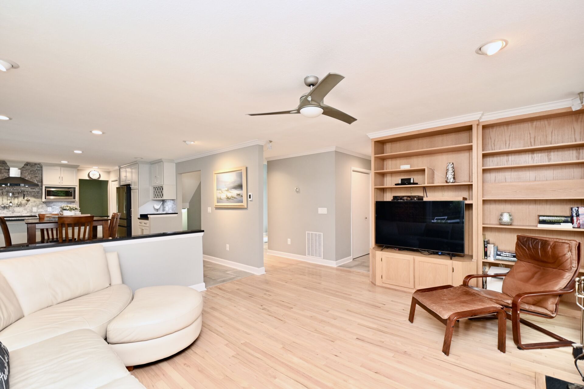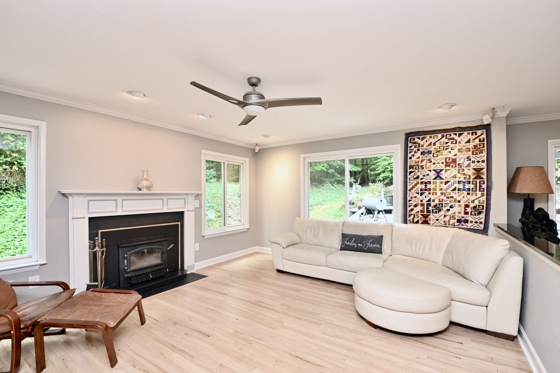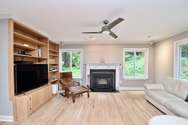 This home boasts a main level bedroom, cozy fireplace in the family room and the primary bedroom, gourmet kitchen with island seating and so much more.