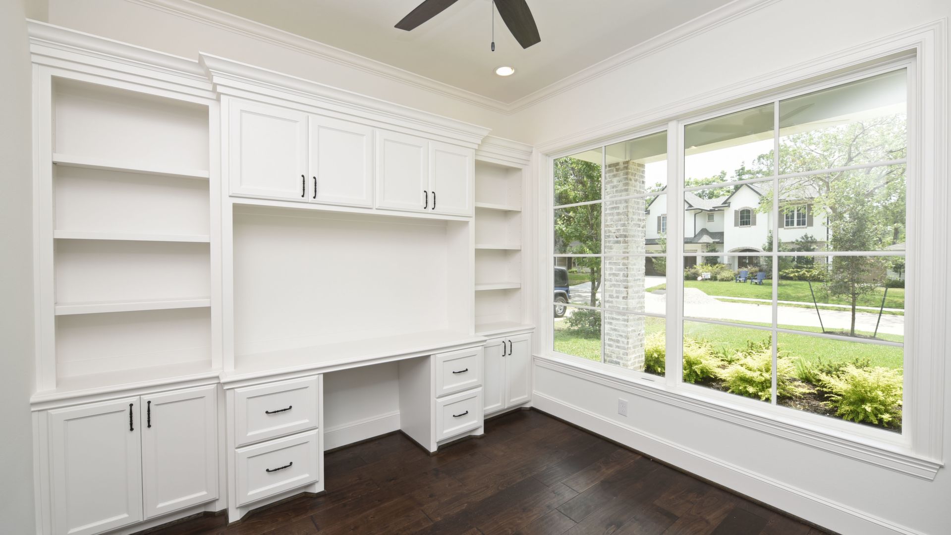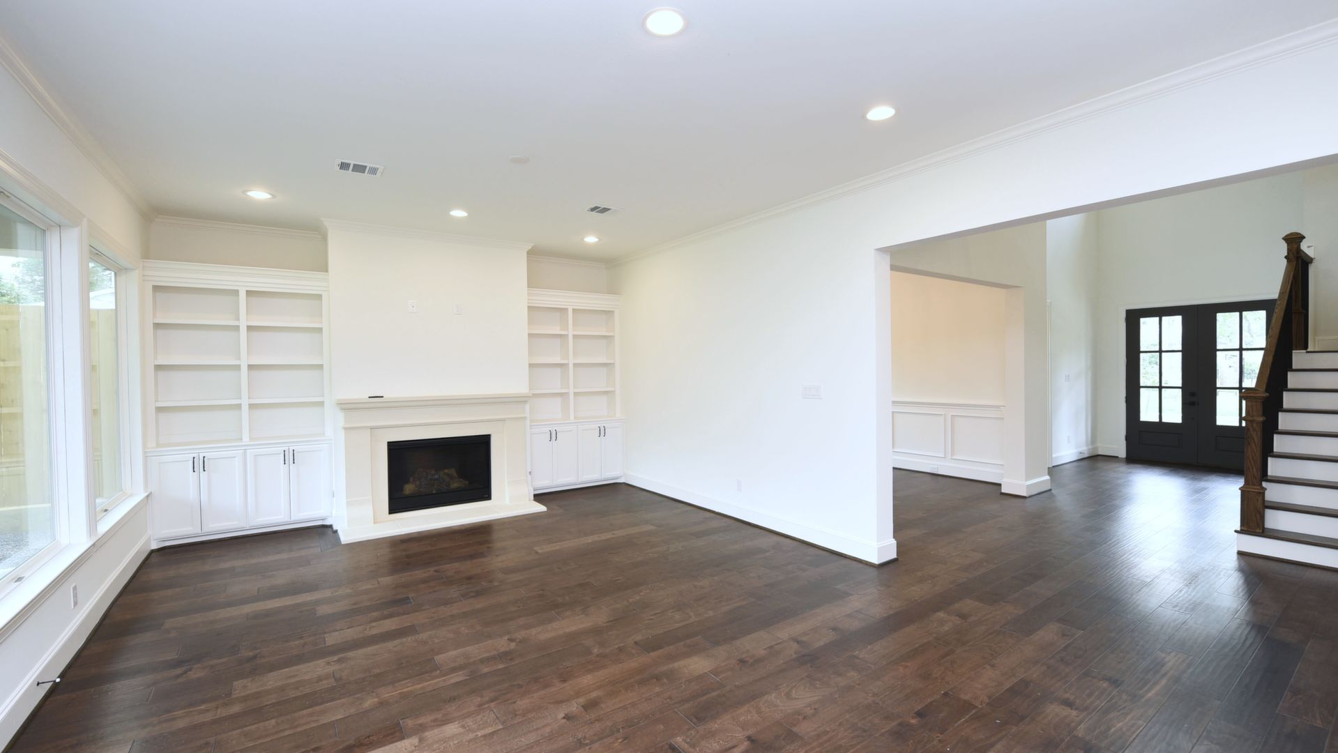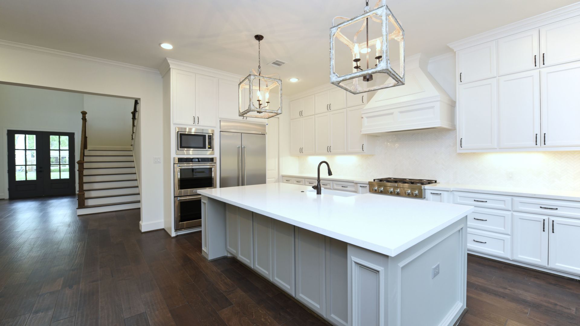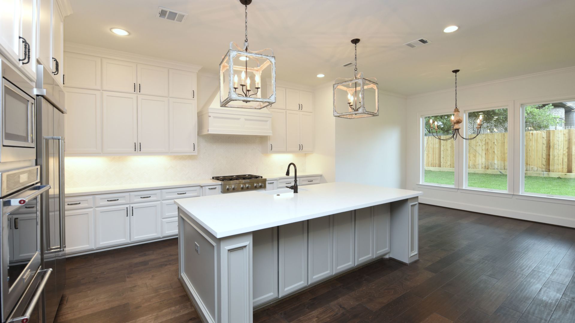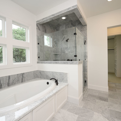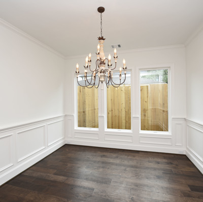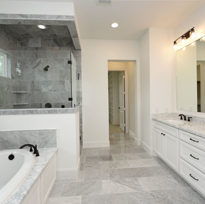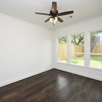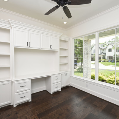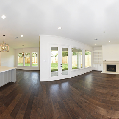 Luxury Custom Home in Oak Forest Large open floor plan, includes hardwood floors throughout the house except secondary bedrooms and closets. Kitchen Aid appliances include 36 Range top, 42 Refrigerator, Microwave, a double oven. Quartzite countertops in kitchen areas. Marble in bathrooms. Fireplace with precast stone mantle in family room. Formal dinging room and study with built-in cabin One downstairs bedroom/game room has a full bath with marble countertops and shower. Large game room/tv upstairs. Master bedroom upstairs with his and her closets and all marble master bedroom. Large back yard with 8 tall Cedar privacy fence and large covered patio.