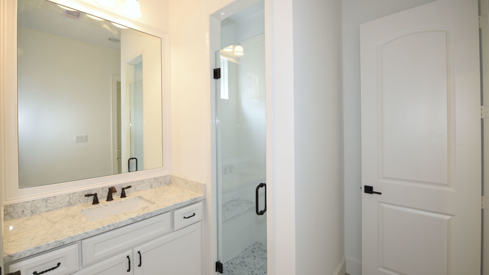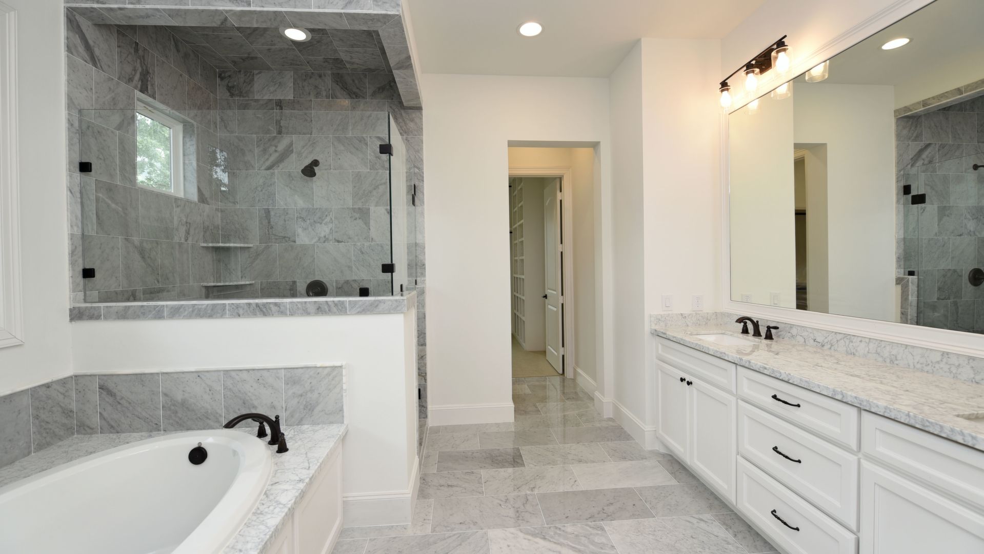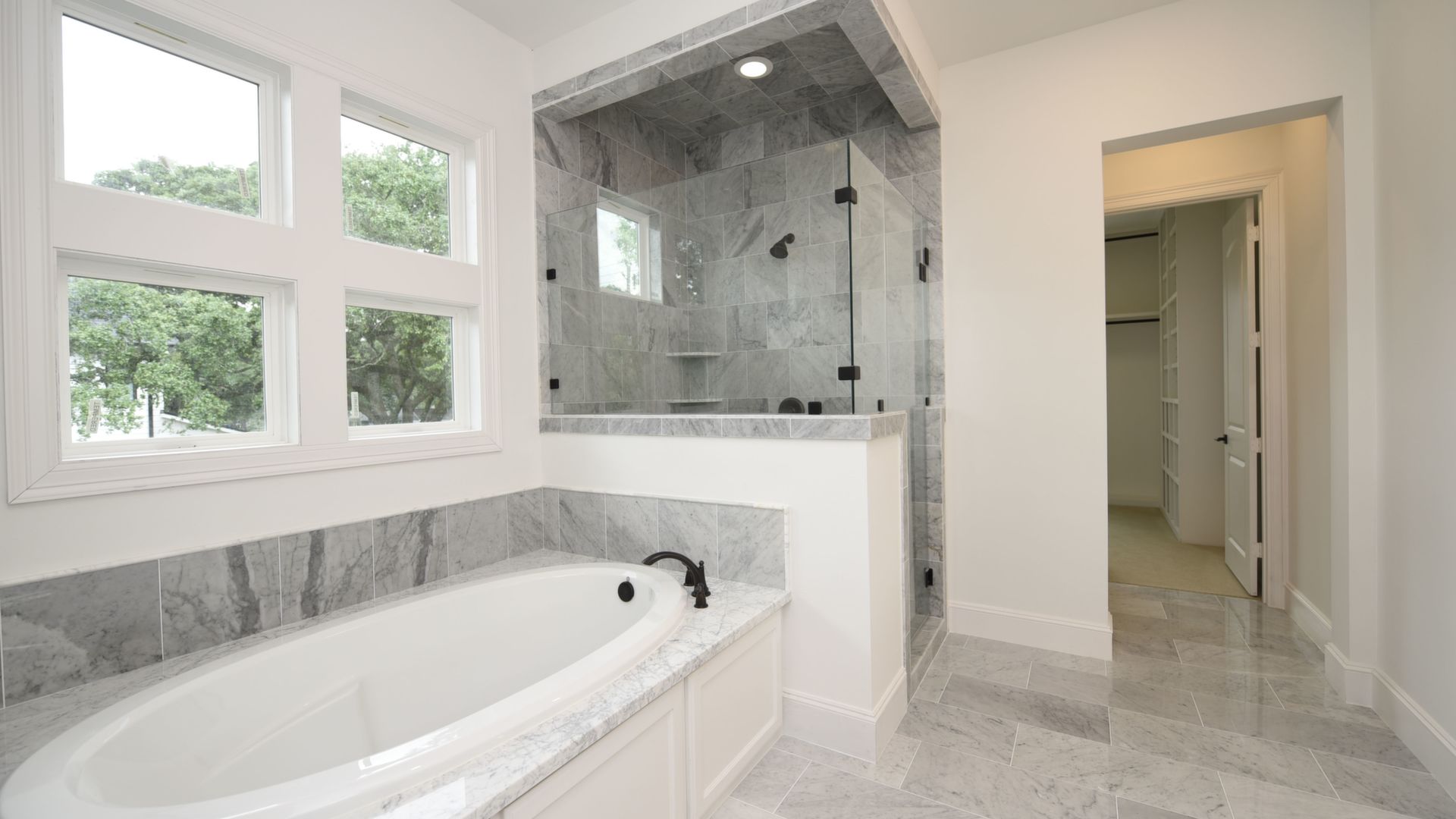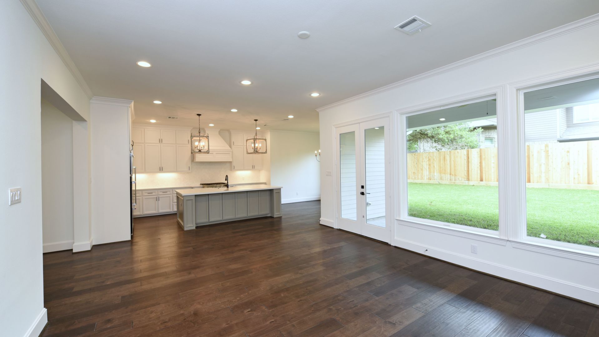 Luxury Custom Home in Oak Forest Large open floor plan, includes hardwood floors throughout the house except secondary bedrooms and closets. Kitchen Aid appliances include 36 Range top, 42 Refrigerator, Microwave, a double oven. Quartzite countertops in kitchen areas. Marble in bathrooms. Fireplace with precast stone mantle in family room. Formal dinging room and study with built-in cabin One downstairs bedroom/game room has a full bath with marble countertops and shower. Large game room/tv upstairs. Master bedroom upstairs with his and her closets and all marble master bedroom. Large back yard with 8 tall Cedar privacy fence and large covered patio.
