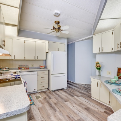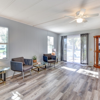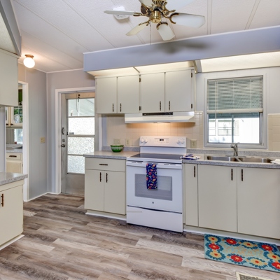 This cute 2 Bed 2 Bath home features two screened in porches with new screens put on and a nice large shed that features a newer washer and dryer. This home has BRAND NEW Waterproof Vinyl Plank Floor and carpet in the bedrooms. Fresh paint and new push-up/pull-down blinds throughout. Newer refrigerator, oven, dishwasher and water-saving toilets! Located on a quiet, off the main street cul du sac. A 4-Point inspection has been completed on this home. Home warranty is included! Call today this home wont last long!