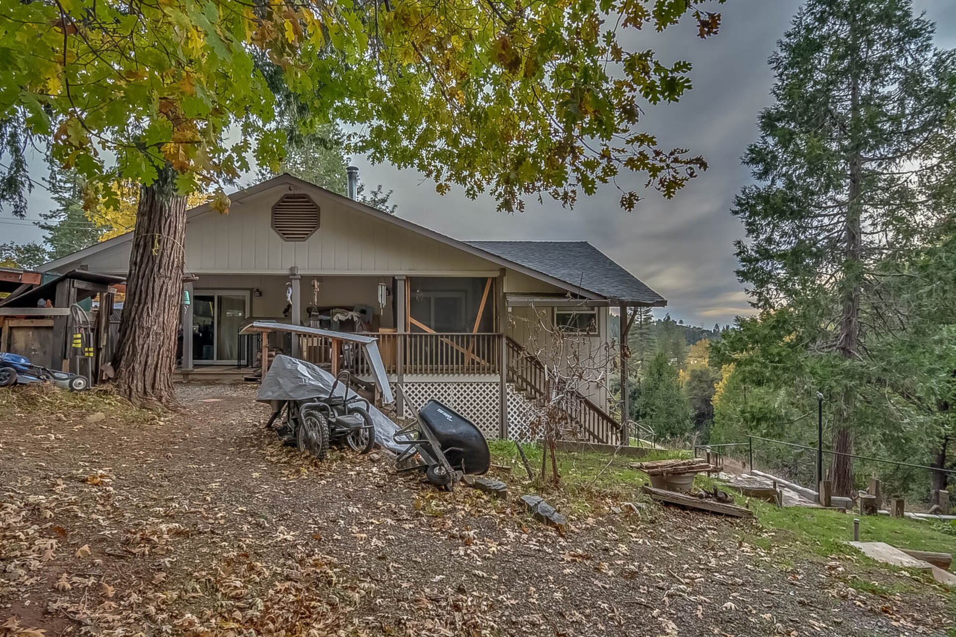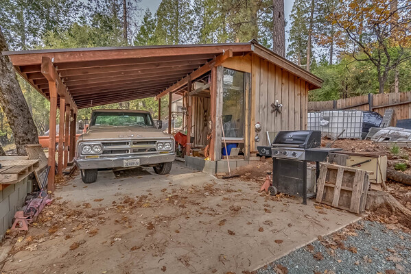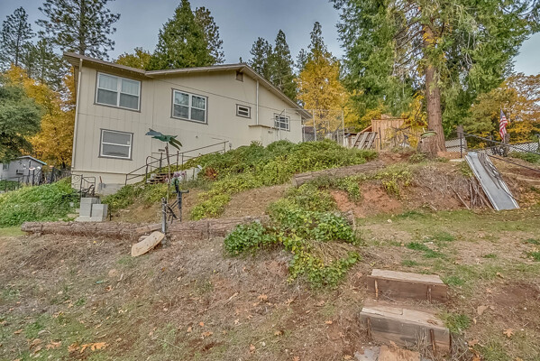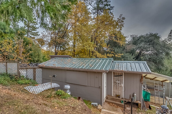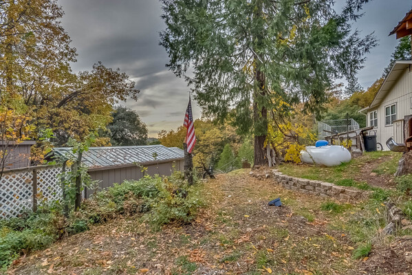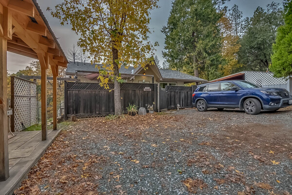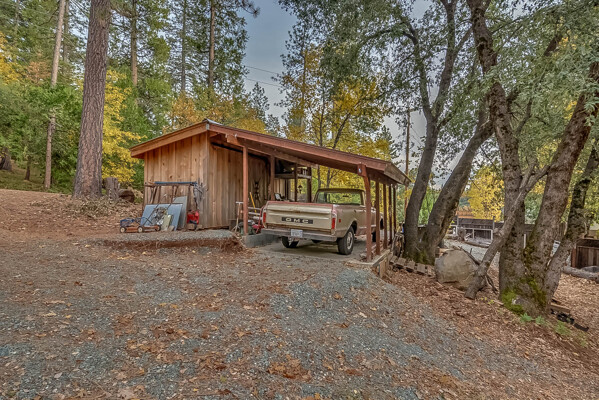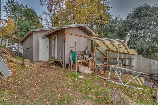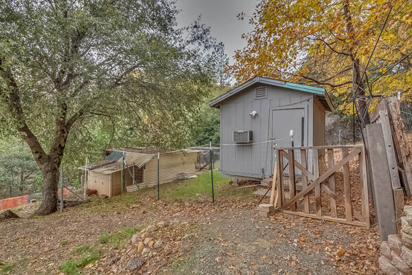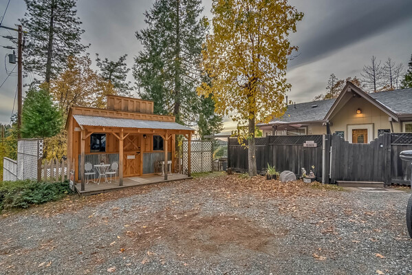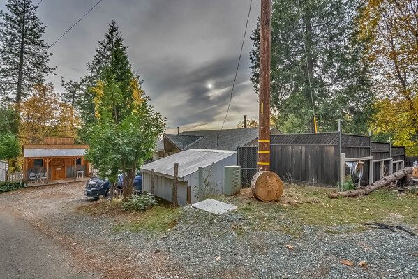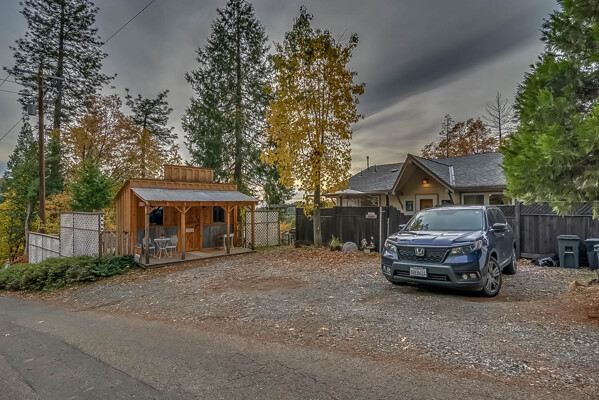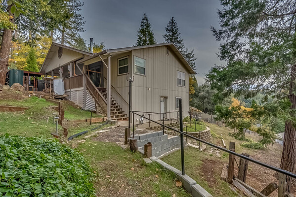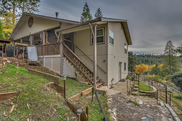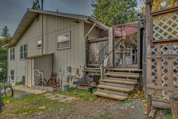 Happy Holidays! 2 LOTS included in this listing. The main lot features a 1500 sq ft home nestled back in a hollow just far enough above the highway to feel private. 90 degree view over the canyon and ridges is perfect for sunrise or sunset. Ample living space inside and out. Quartz countertops in kitchen with tile floors. Tile showers, soaking tub in master with access to adjacent room. Large sitting room with great views over the canyon and seasonal creek. Bamboo flooring throughout. Pella windows and sliding doors. Central HVAC is 8 years new and the roof is approximately 10. Hearthstone wood burner centrally located. Ceiling fans throughout. Back up generator with service connection that supports the entire home included. Basement area stores a water heater and separate laundry and a second laundry is located in the outbuilding directly off back deck with its own water heater. Detached garage with separate street entrance as well as a private gate. Cedar Batten Board building at street level can be used at for a studio, office, storage.... Fruit trees, poultry pen and storage sheds complete the main property. This listing also includes adjacent .4 acre lot with separate address and APN. Separate shop and carport with RV access. Pleas call for more details SOON!