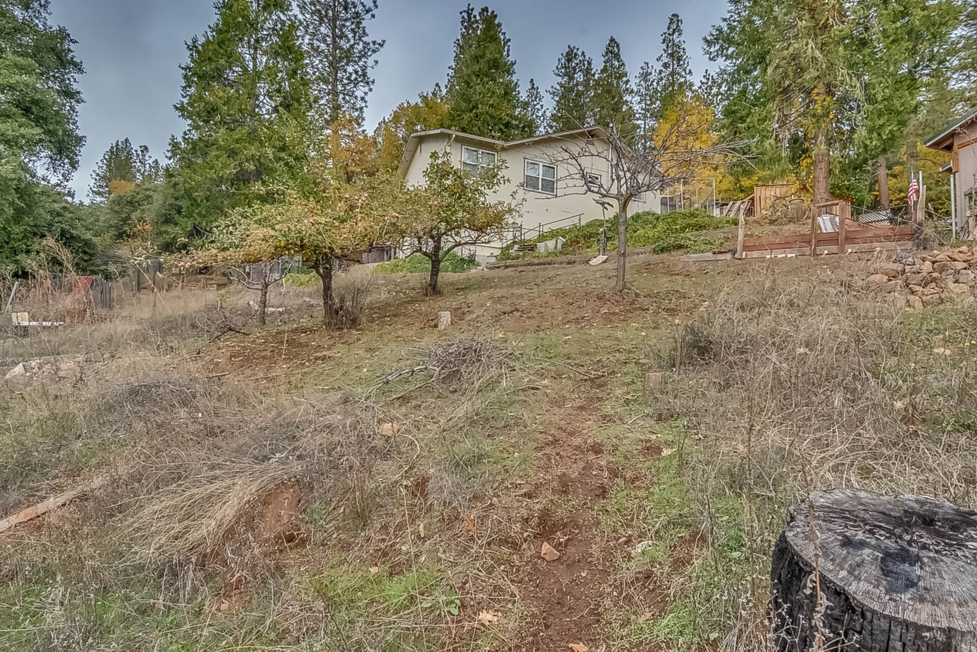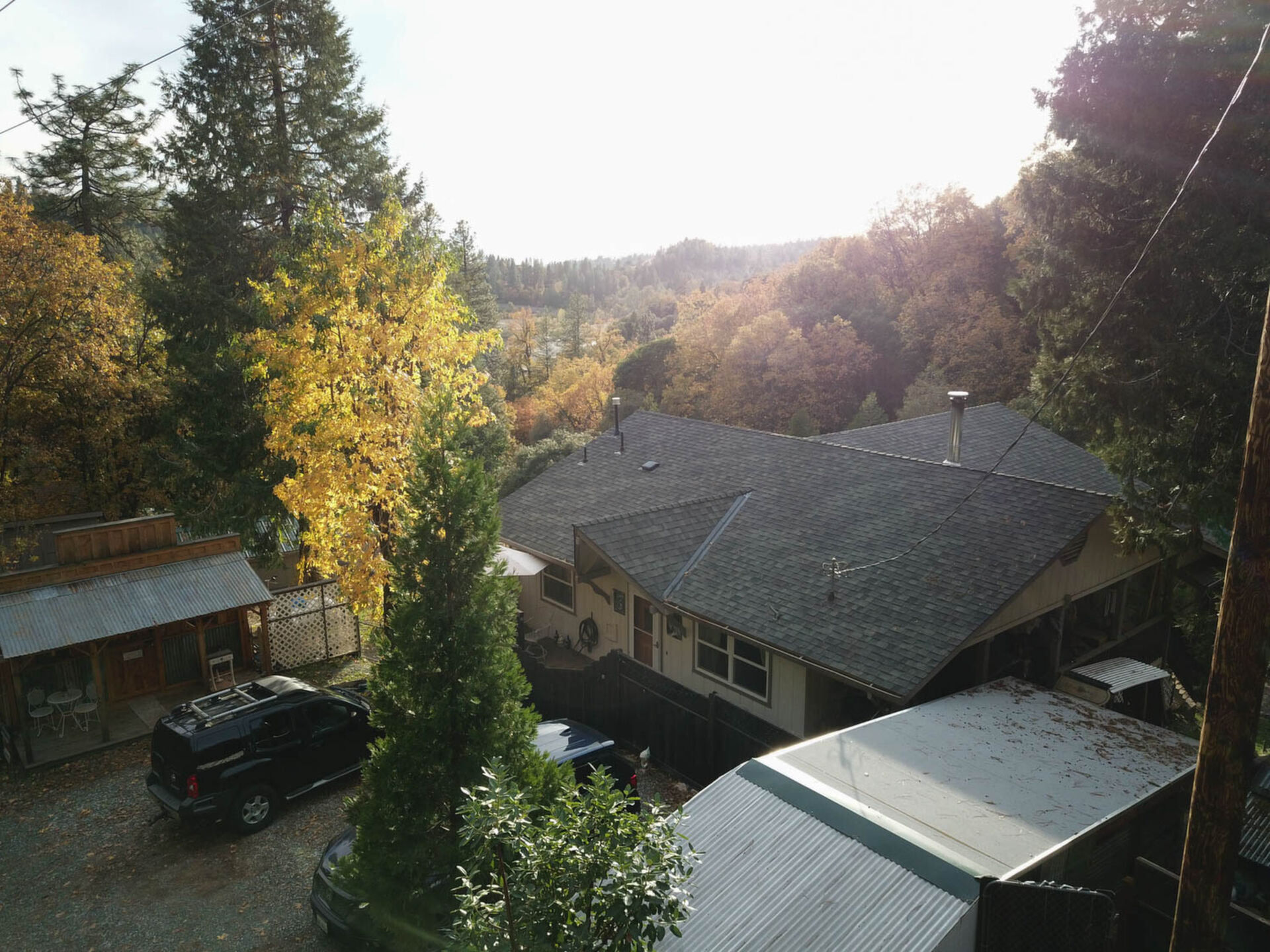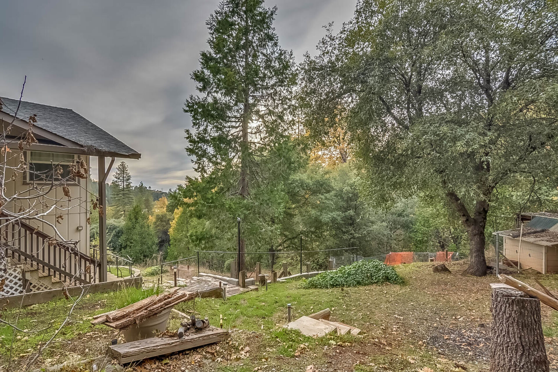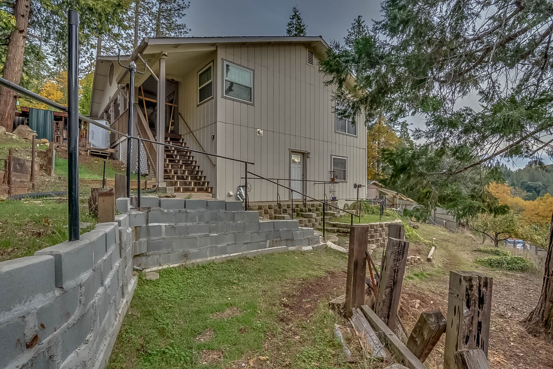 Happy Holidays! 2 LOTS included in this listing. The main lot features a 1500 sq ft home nestled back in a hollow just far enough above the highway to feel private. 90 degree view over the canyon and ridges is perfect for sunrise or sunset. Ample living space inside and out. Quartz countertops in kitchen with tile floors. Tile showers, soaking tub in master with access to adjacent room. Large sitting room with great views over the canyon and seasonal creek. Bamboo flooring throughout. Pella windows and sliding doors. Central HVAC is 8 years new and the roof is approximately 10. Hearthstone wood burner centrally located. Ceiling fans throughout. Back up generator with service connection that supports the entire home included. Basement area stores a water heater and separate laundry and a second laundry is located in the outbuilding directly off back deck with its own water heater. Detached garage with separate street entrance as well as a private gate. Cedar Batten Board building at street level can be used at for a studio, office, storage.... Fruit trees, poultry pen and storage sheds complete the main property. This listing also includes adjacent .4 acre lot with separate address and APN. Separate shop and carport with RV access. Pleas call for more details SOON!