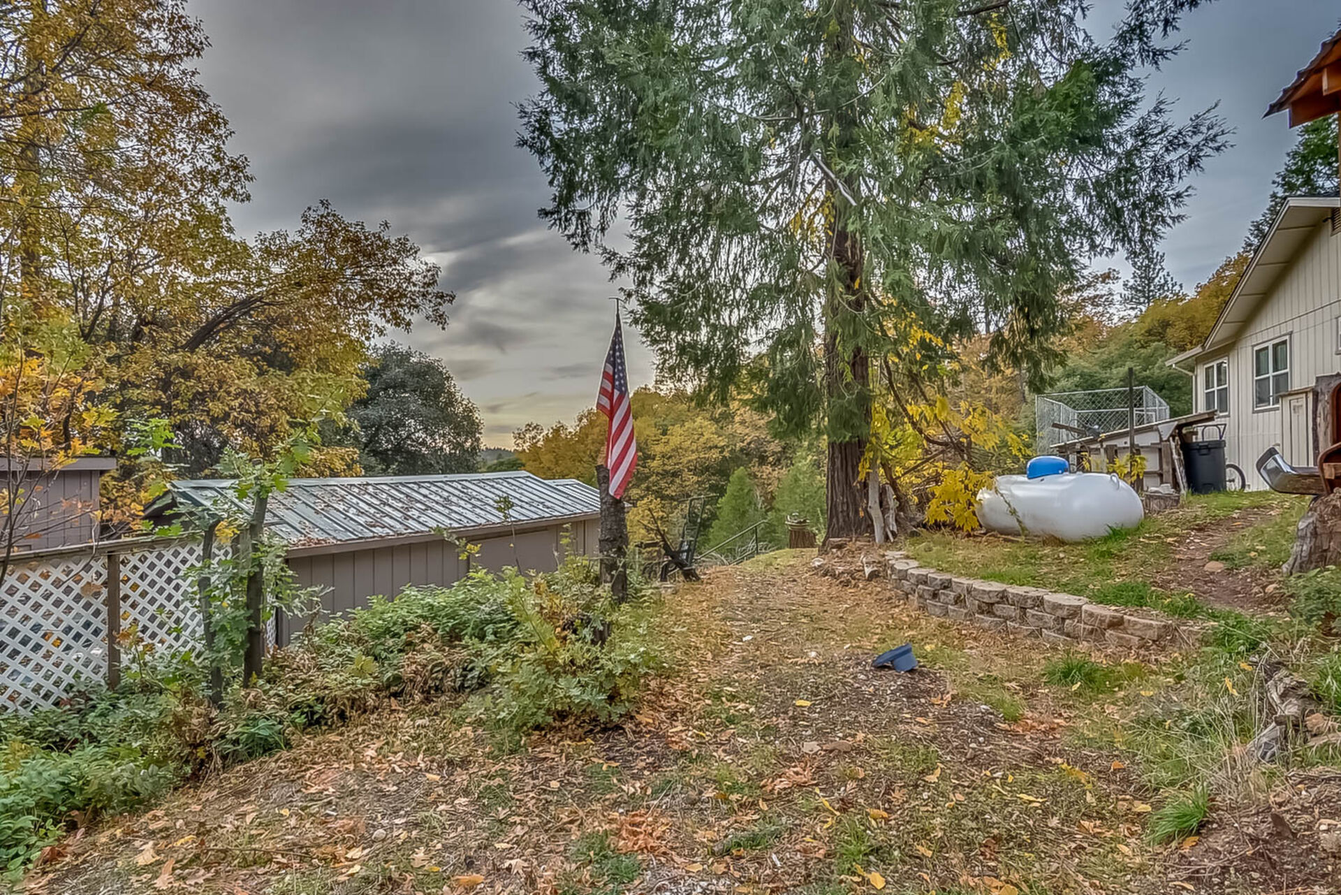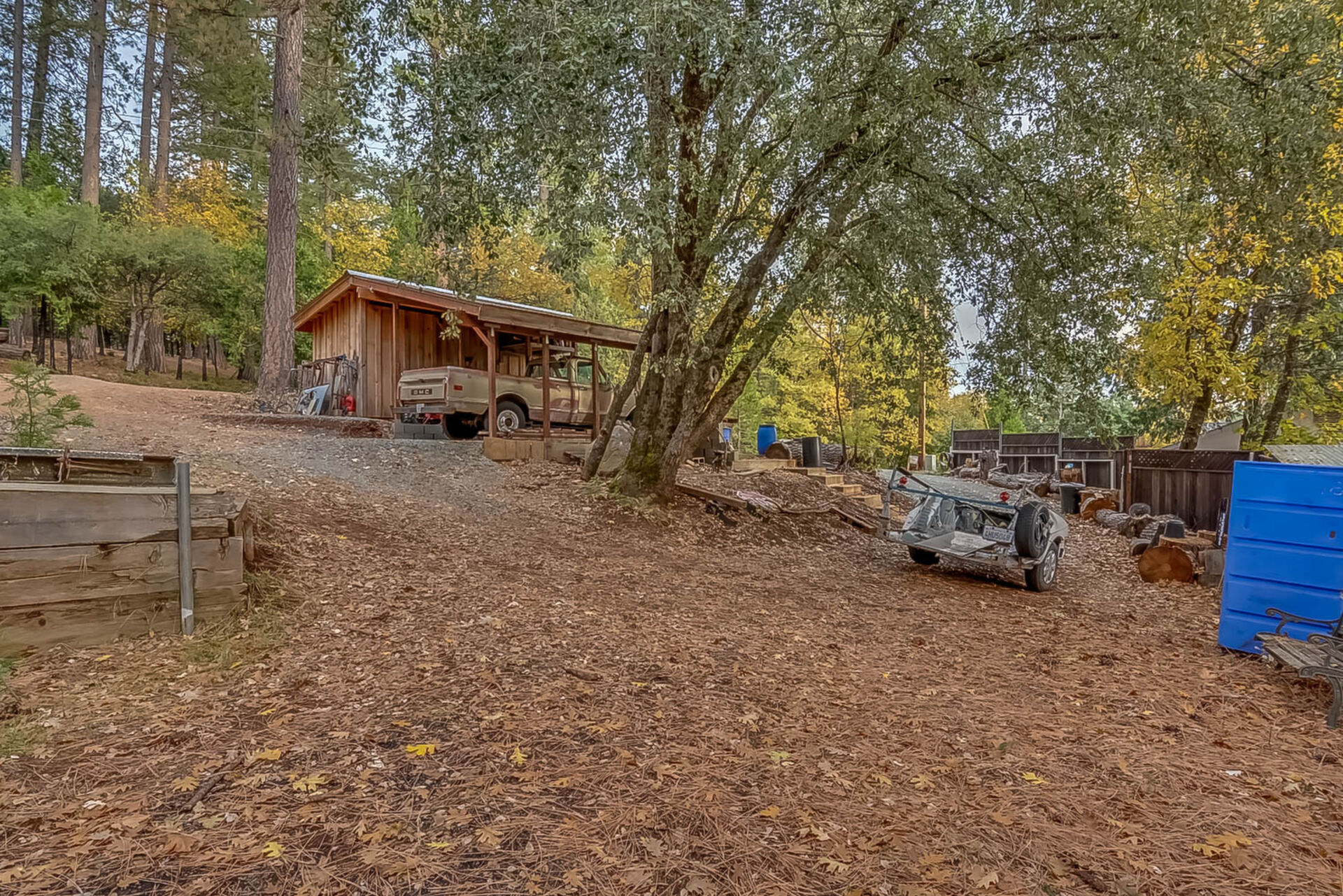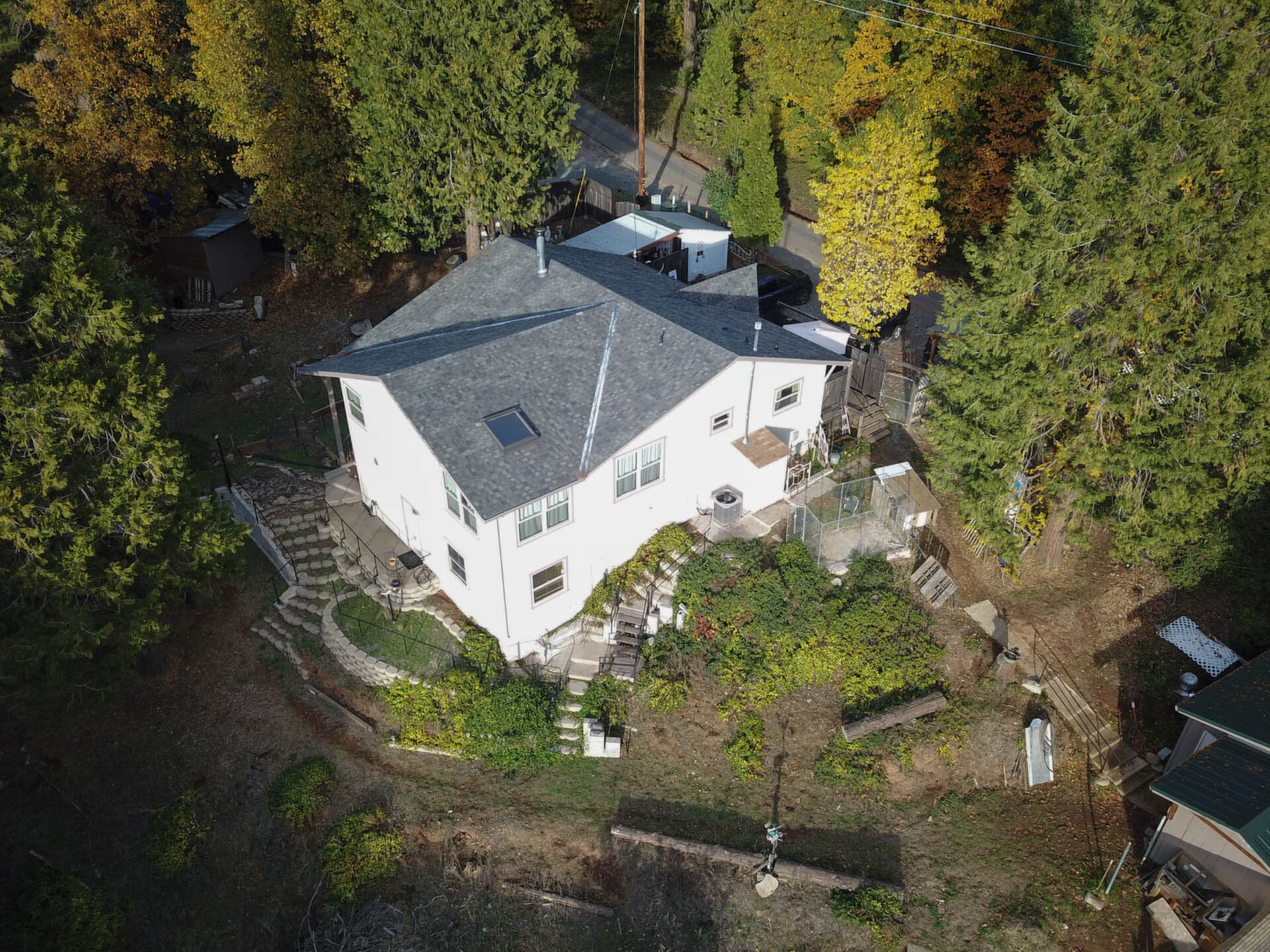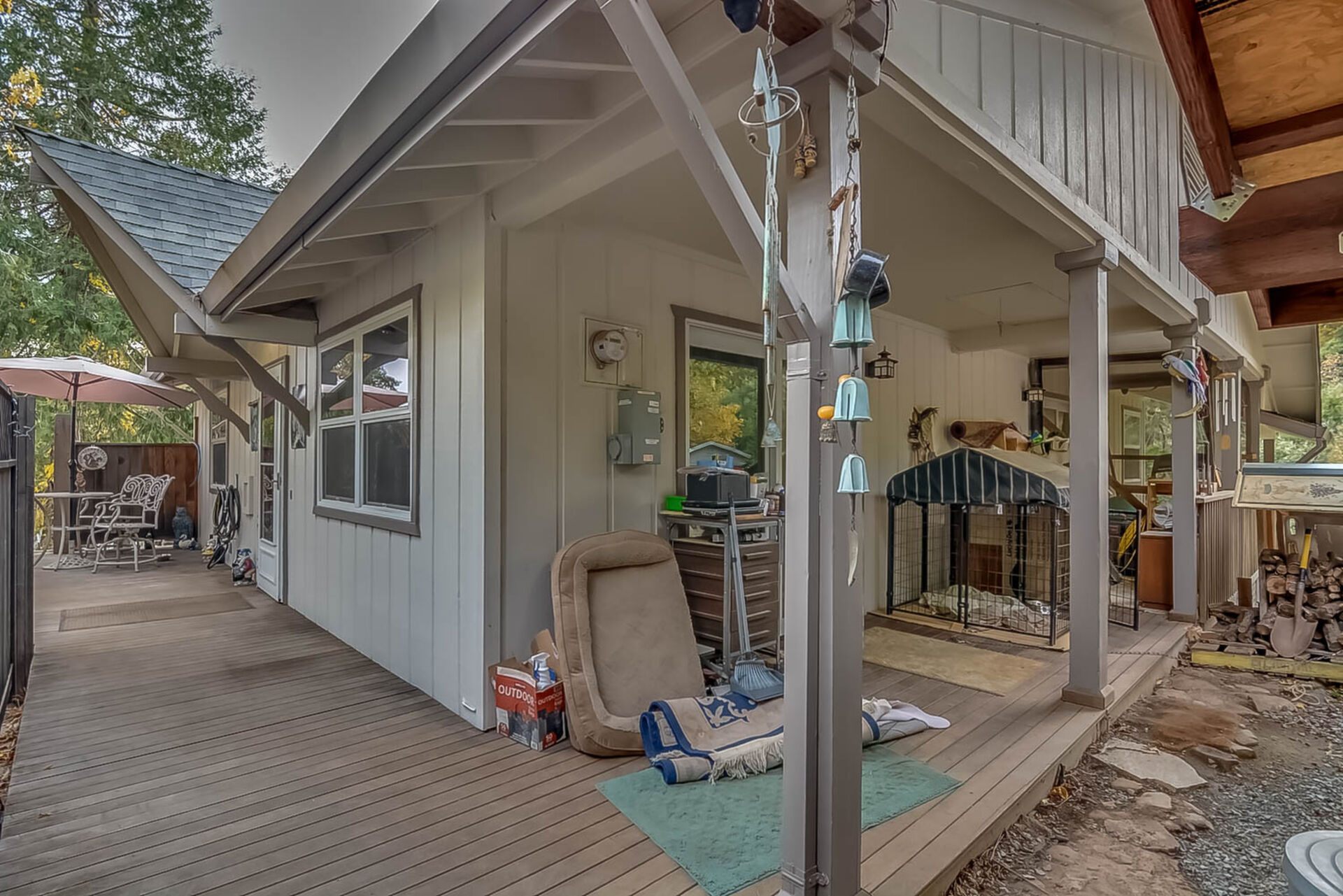 Happy Holidays! 2 LOTS included in this listing. The main lot features a 1500 sq ft home nestled back in a hollow just far enough above the highway to feel private. 90 degree view over the canyon and ridges is perfect for sunrise or sunset. Ample living space inside and out. Quartz countertops in kitchen with tile floors. Tile showers, soaking tub in master with access to adjacent room. Large sitting room with great views over the canyon and seasonal creek. Bamboo flooring throughout. Pella windows and sliding doors. Central HVAC is 8 years new and the roof is approximately 10. Hearthstone wood burner centrally located. Ceiling fans throughout. Back up generator with service connection that supports the entire home included. Basement area stores a water heater and separate laundry and a second laundry is located in the outbuilding directly off back deck with its own water heater. Detached garage with separate street entrance as well as a private gate. Cedar Batten Board building at street level can be used at for a studio, office, storage.... Fruit trees, poultry pen and storage sheds complete the main property. This listing also includes adjacent .4 acre lot with separate address and APN. Separate shop and carport with RV access. Pleas call for more details SOON!