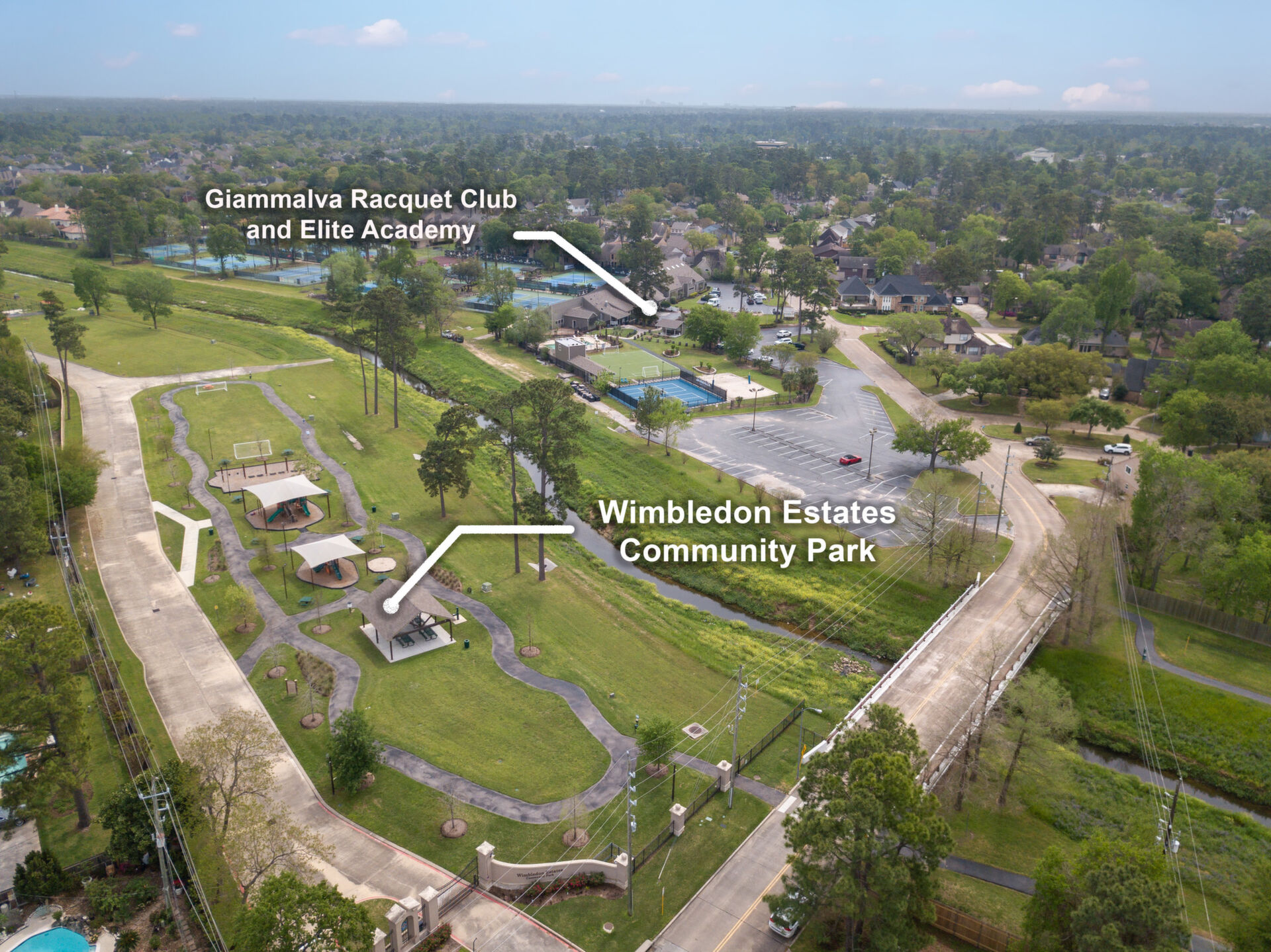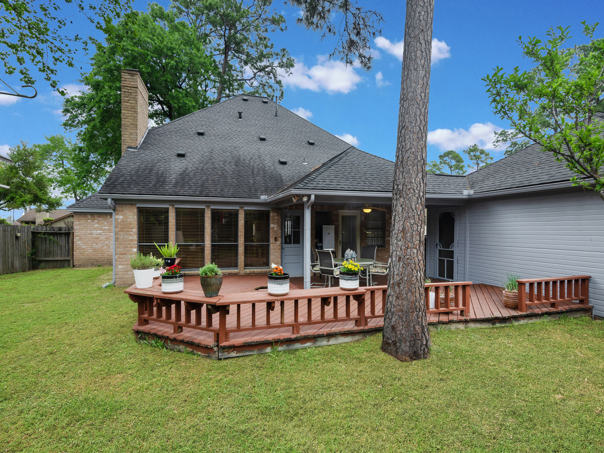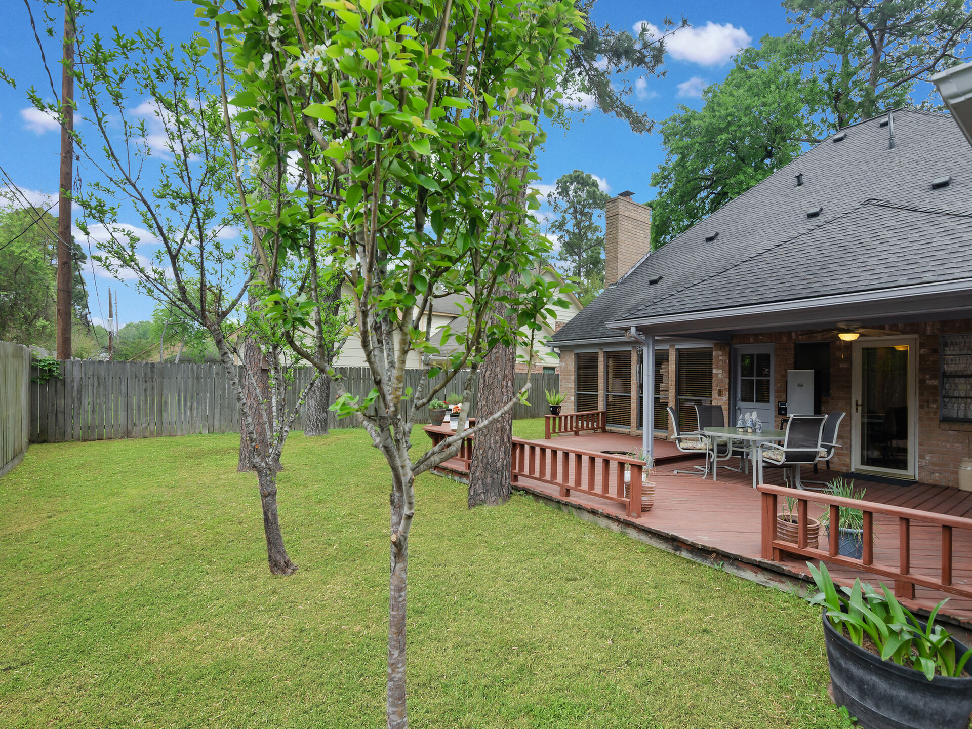 Desirable location in Wimbledon Estates Racquet Club Community. Exemplary Klein ISD schools, low tax rate and wonderful resident amenities. Situated on quiet cul-de-sac, well maintained, this charming 2- Story home features 4 bedrooms, 2.5 bathrooms, large primary bedroom features his & hers closets & vanities. The dining room has a beautiful glass chandelier and has access to the kitchen. Kitchen is light & cheery place to prepare meals and has gleaming oak kitchen cabinets granite countertops, convenient built in kitchen desk. The family room has beautiful wood panels and wood accents on ceiling as well as a brick surround fireplace with solid wood mantel. The large family room also has a wet bar perfect for entertaining. Window coverings & recently added new carpet & upstairs home study. Outdoor living features include; 2- car garage complete with workbench, large, covered wood deck perfect for entertaining. The residents only park has amazing well-maintained amenities to enjoy!