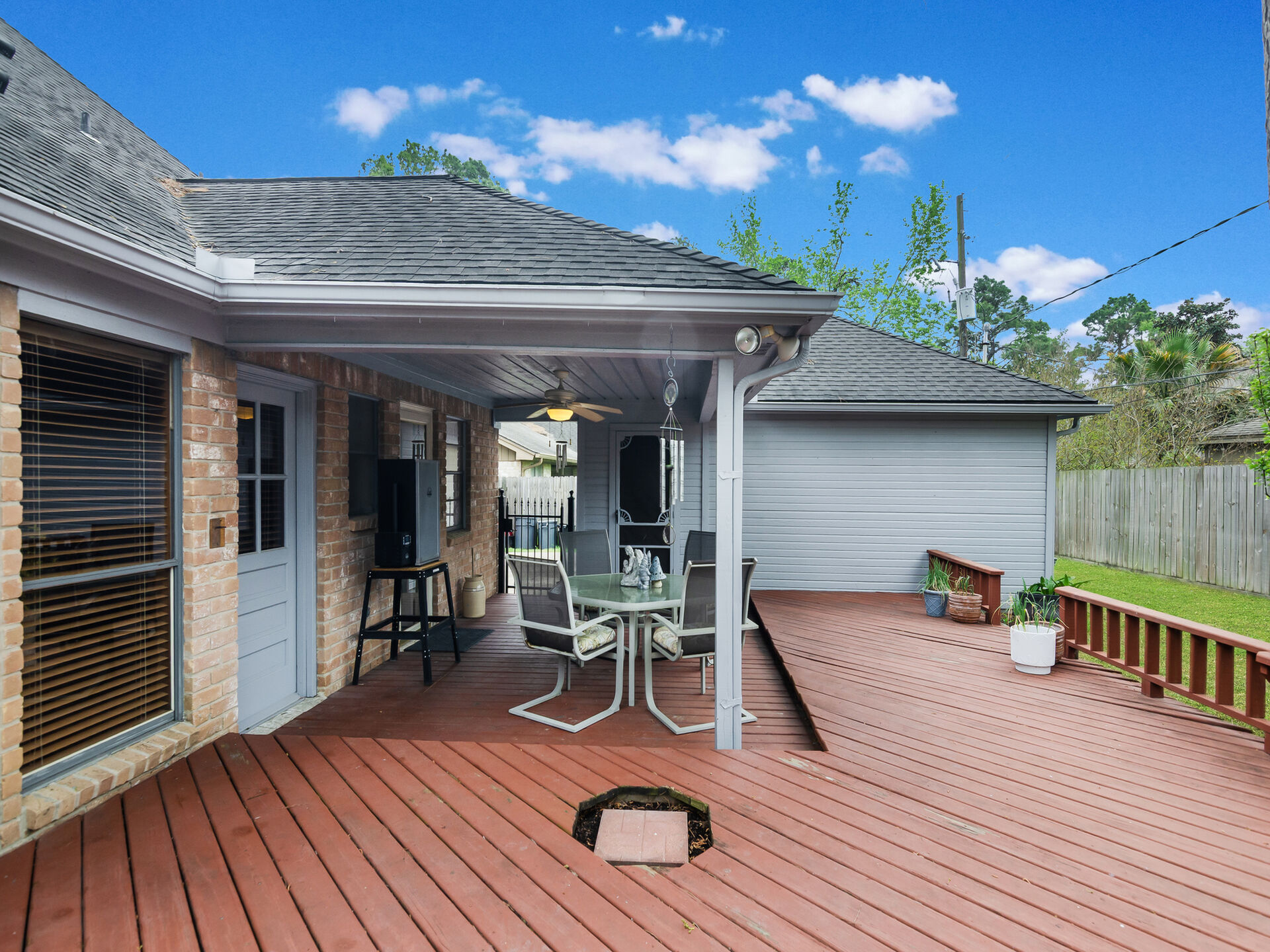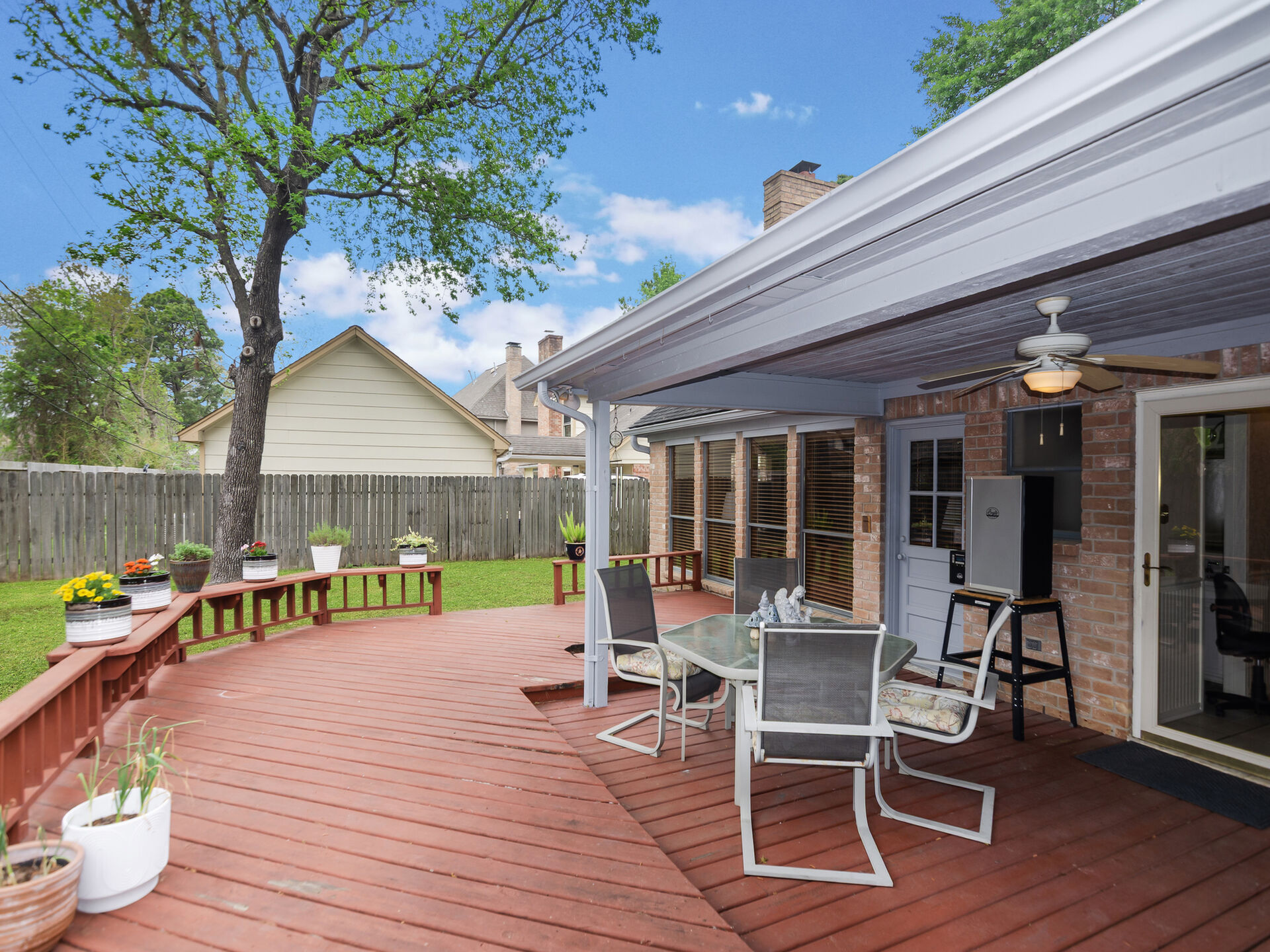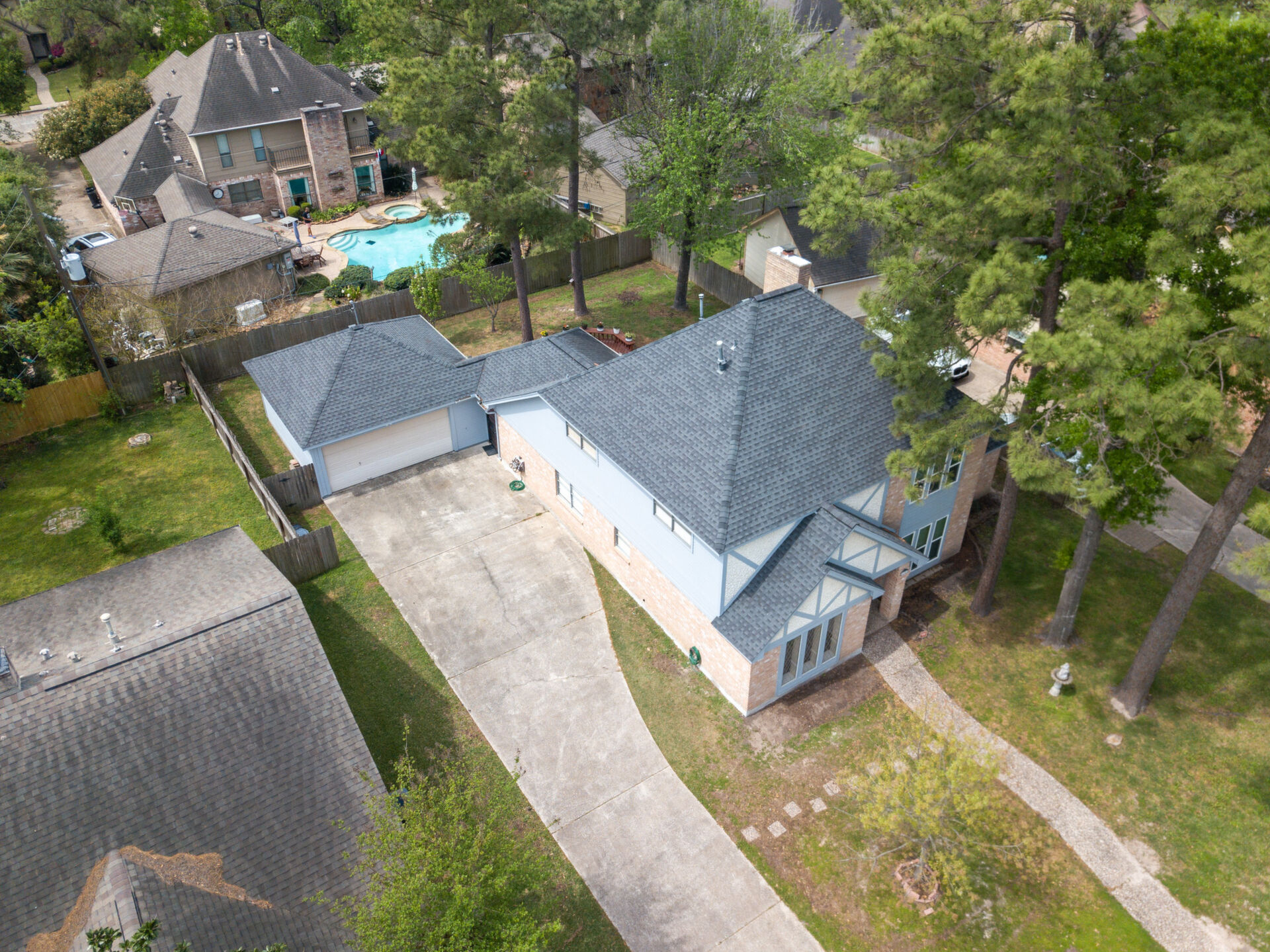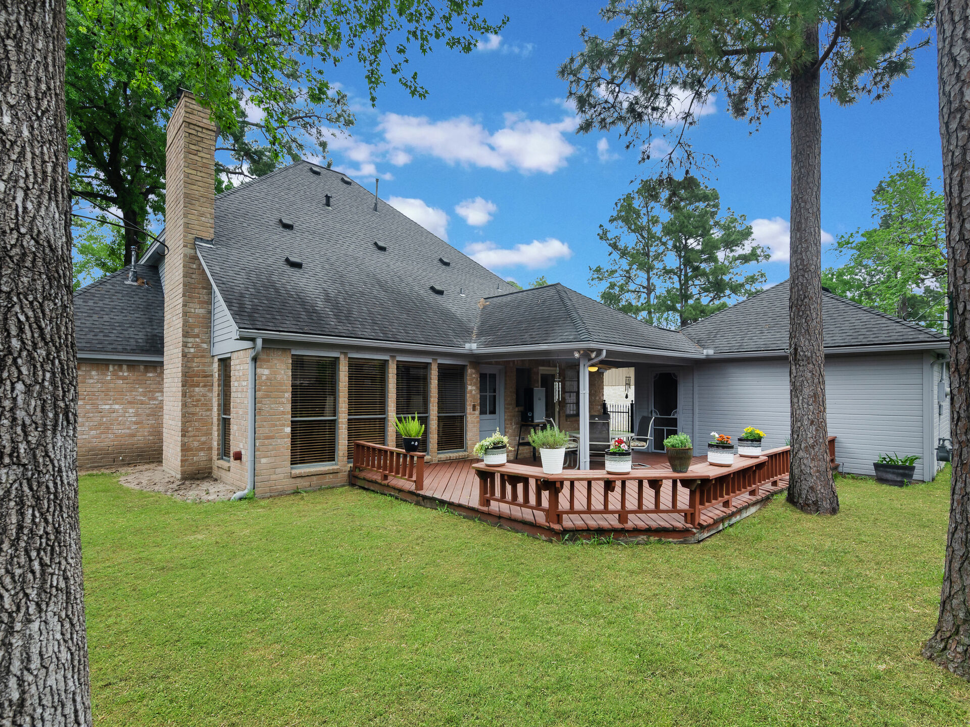 Desirable location in Wimbledon Estates Racquet Club Community. Exemplary Klein ISD schools, low tax rate and wonderful resident amenities. Situated on quiet cul-de-sac, well maintained, this charming 2- Story home features 4 bedrooms, 2.5 bathrooms, large primary bedroom features his & hers closets & vanities. The dining room has a beautiful glass chandelier and has access to the kitchen. Kitchen is light & cheery place to prepare meals and has gleaming oak kitchen cabinets granite countertops, convenient built in kitchen desk. The family room has beautiful wood panels and wood accents on ceiling as well as a brick surround fireplace with solid wood mantel. The large family room also has a wet bar perfect for entertaining. Window coverings & recently added new carpet & upstairs home study. Outdoor living features include; 2- car garage complete with workbench, large, covered wood deck perfect for entertaining. The residents only park has amazing well-maintained amenities to enjoy!