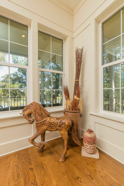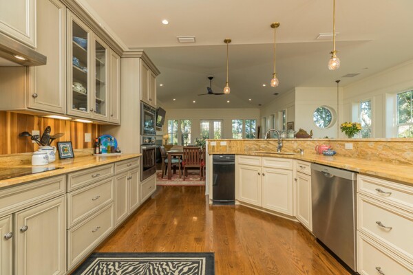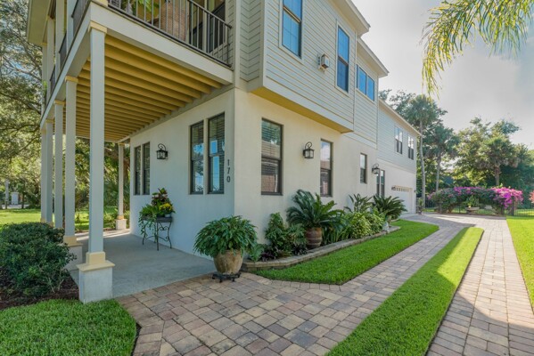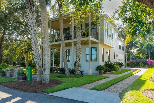 DOWNTOWN WATERFRONT DREAM HOME with ELEVATOR; Peaceful, like-new Coastal-style house, with direct sweeping views of Intra-coastal salt marsh and peek of Lighthouse, too! Located in a sweet spot of our favorite neighborhood among historic mansions, where horse-&-carriages trot by on their way to work, walking to the Historic district! LUXURIOUS tree-house appeal, high-end features like 3-stop paneled elevator, vaulted ceilings, fireplace, built-in shelves & cabinets, wall panels, skylight, recessed lights, crown thru-out, full-wall bath tile and nautical portholes to peek out at majestic trees! Spacious dual masters (up & down) & BR #3 for guests! Open living up, with masterful use of design, clever storage benches and craftsman trim details. Stately yard is professionally landscaped (think golf course!) for year-round bloom, metal-fenced backyard for pets with irrigation system to keep flowers flourishing! Smart paver walkways, ribbon driveway, 25' paver patio for BBQ's!From the winning team of Les Thomas Design & John Valdes construction - means modern style, open living and structural integrity (such as pressure-treated frame over poured-solid concrete, low-maintenance Hardi-panel, stainless fasteners--built for strength and durability. Interior features like: large dual master bedrooms with en-suite baths, crown moldings throughout, wood floors, Stunning kitchen boasts granite, tongue & groove paneling under solid wood, 42" kitchen cabinets, with premium stainless appliances. The fireplace sits along a built-in window seat for reading by the fire! With top-of-the-line insulated windows and sliders, this place is built to last, at a 10' NGVD, and a hip roof for low insurance!