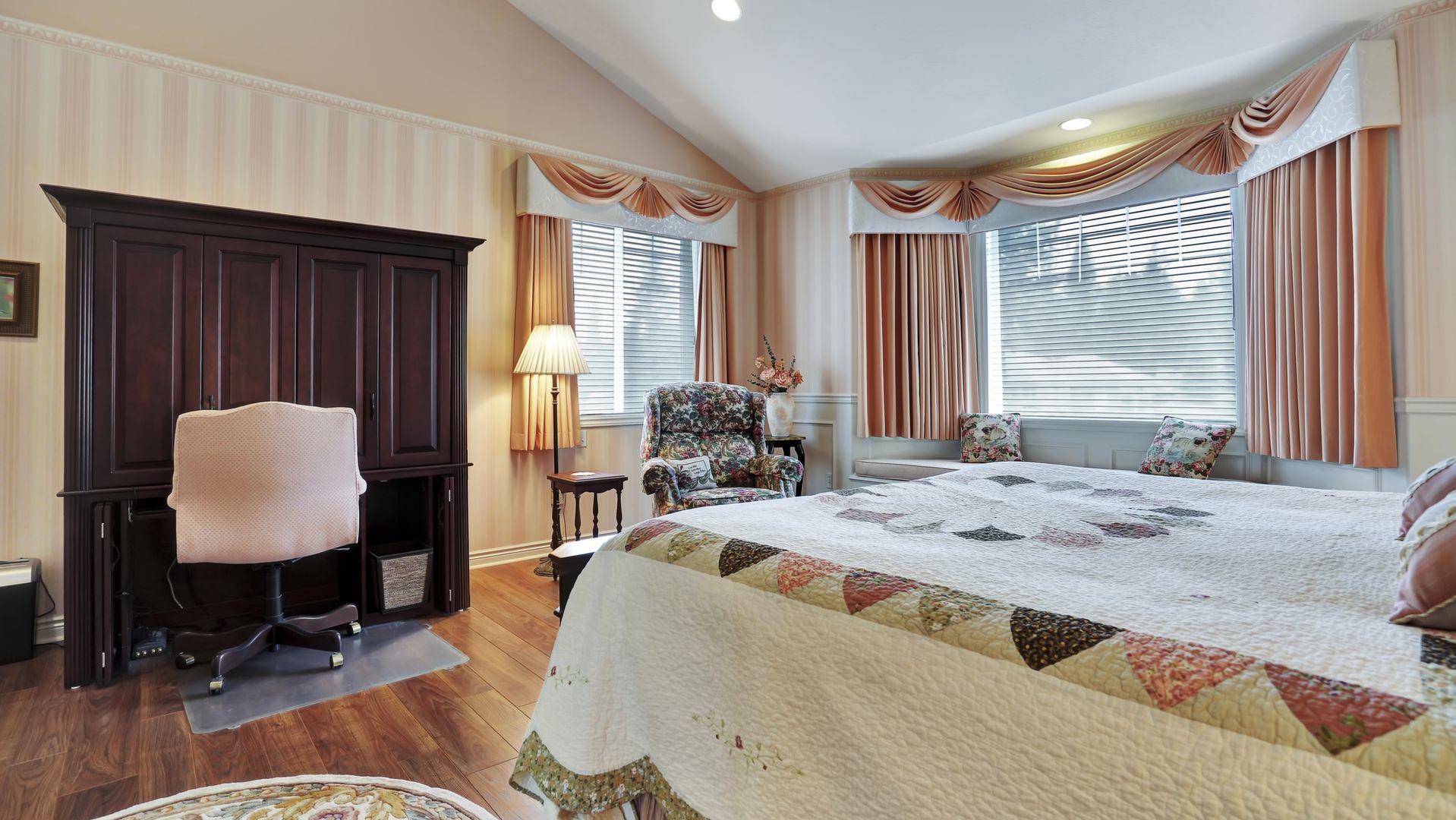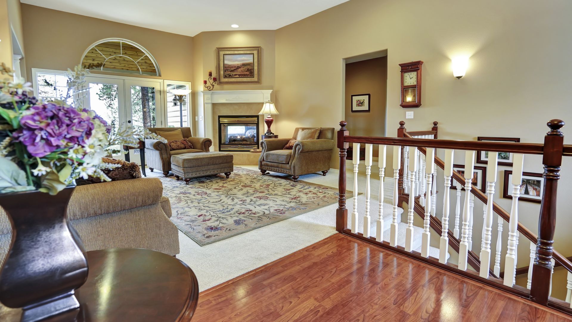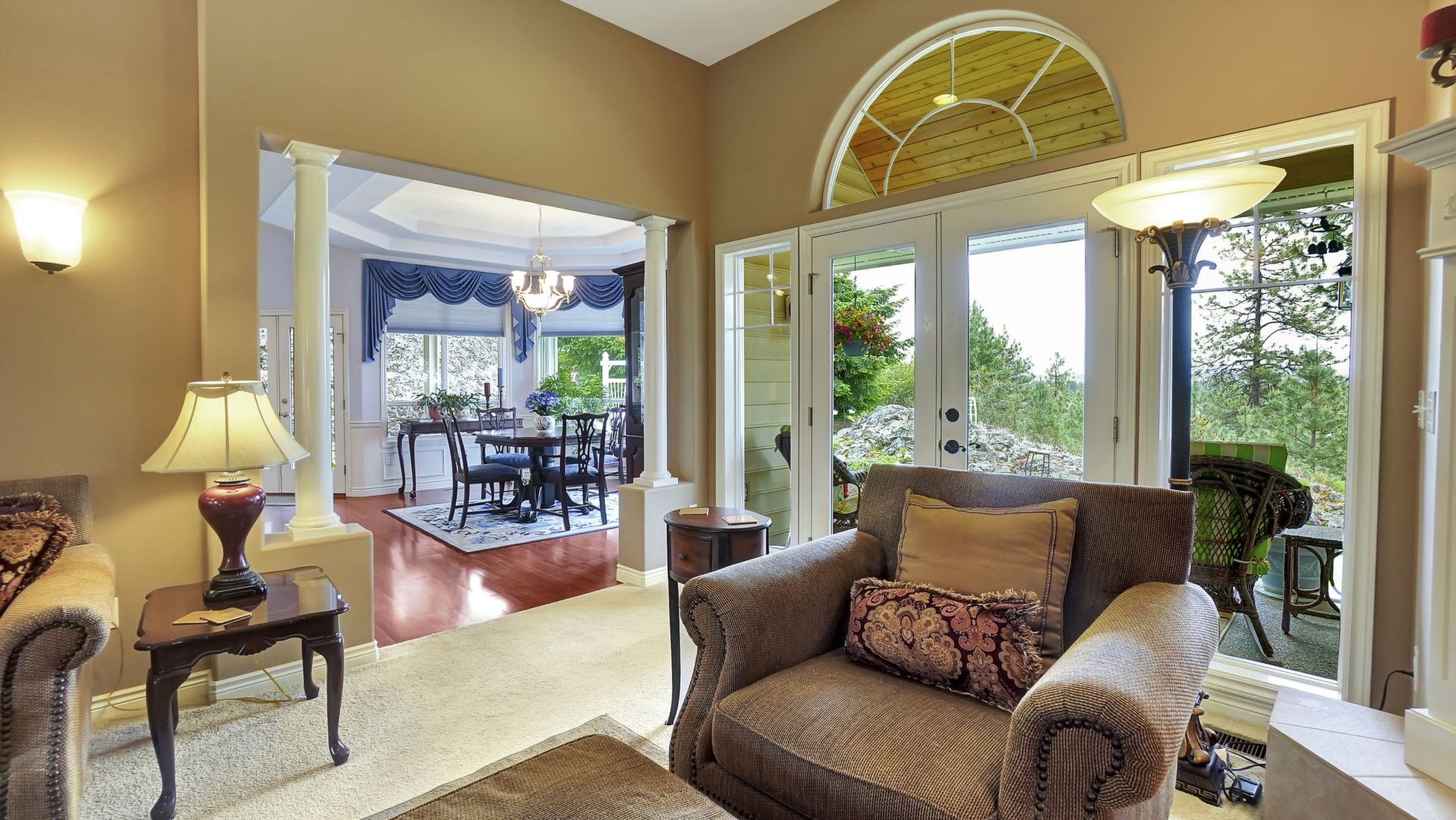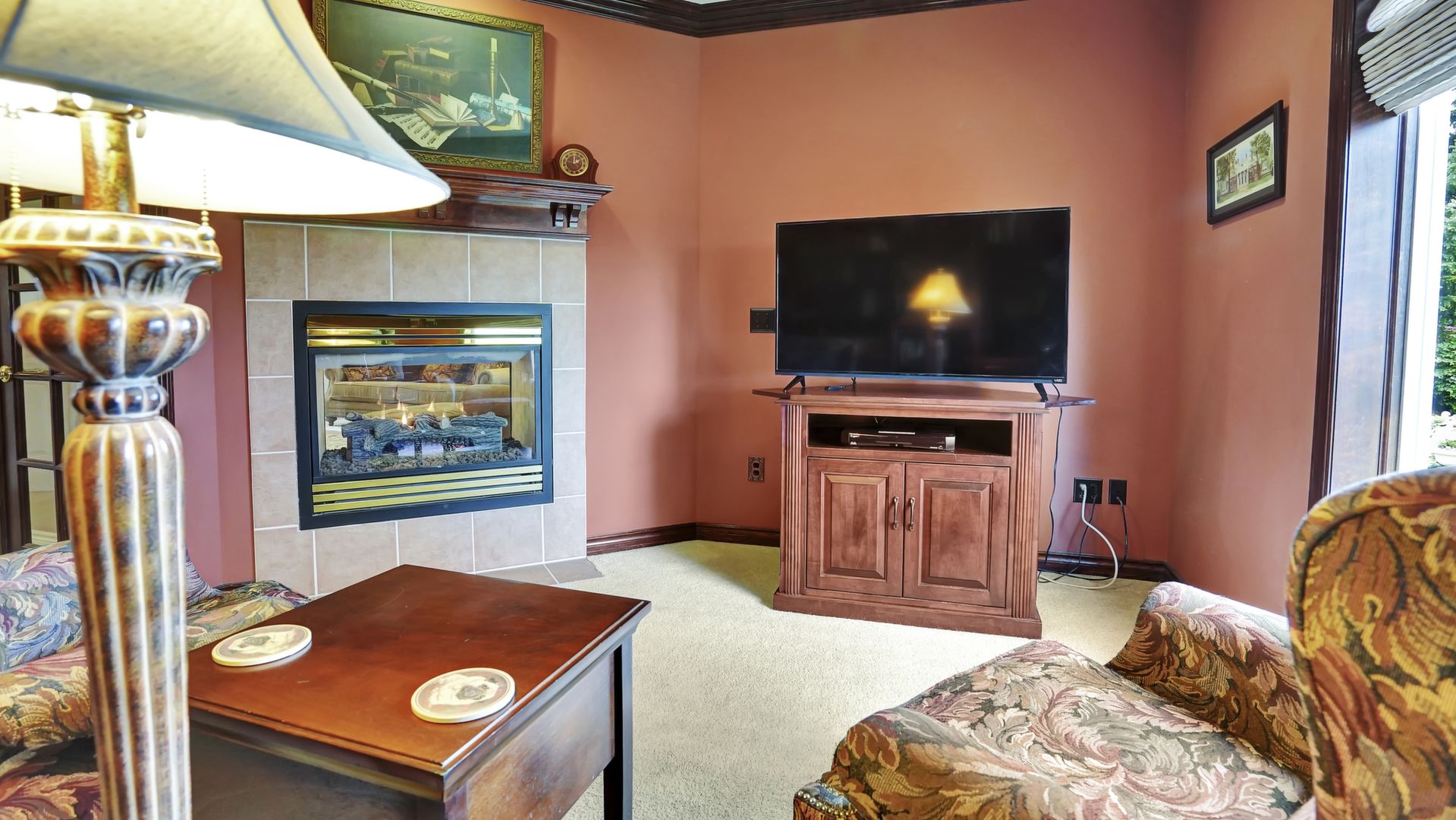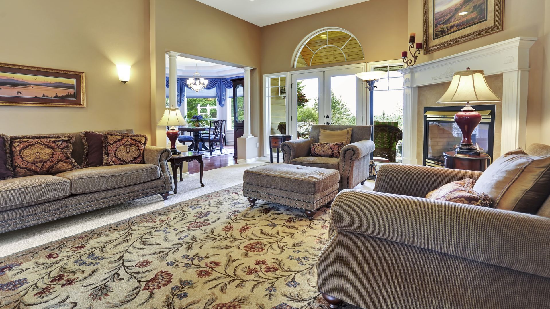 Additional amenities include a 3-car garage, natural gas barbecue, 2 fireplaces, 2-person jacuzzi tub, wine cellar, and cent vac.