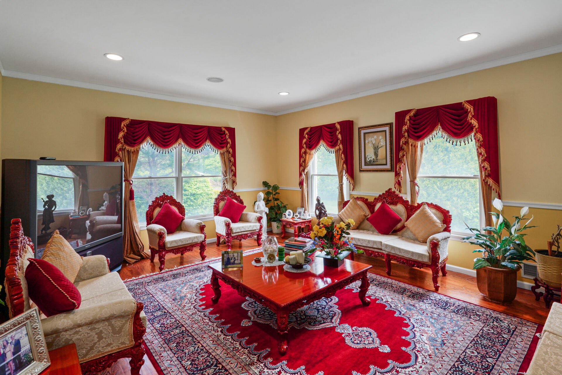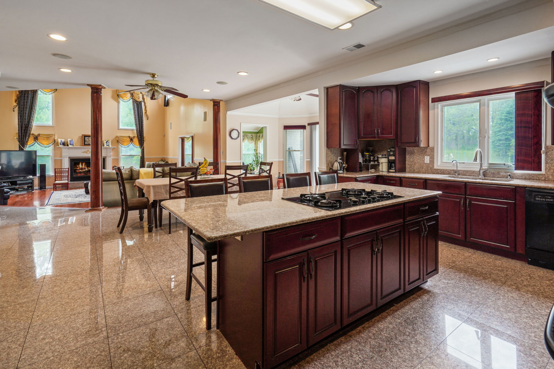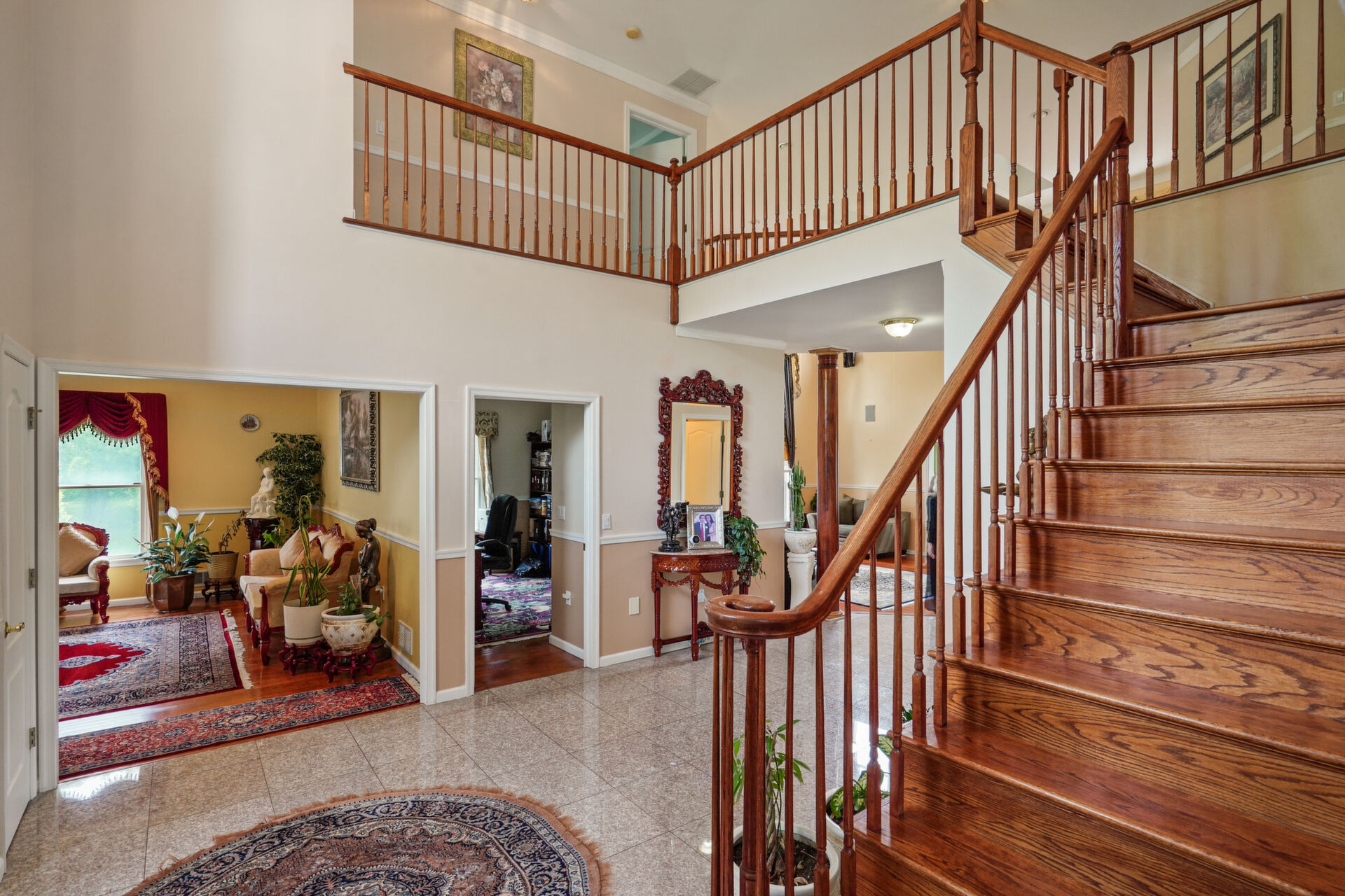 This Beautiful and spacious custom brick colonial sits on 1.5 acres of mature, lush landscaping. 6 bedrooms, 6 1/2 baths, expansive kitchen opened to 2 story family room with fireplace, office, sunroom, finished 3rd floor and custom walkout basement with full kitchen, full bath, custom bar, additional separate room and ample space is not to be missed!