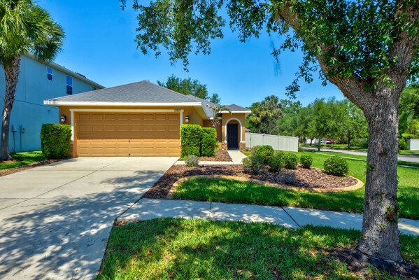 METICIOUSLY MAINTAINED 3 BEDROOM 2 BATH SPLIT OPEN FLOOR PLAN, CORNER LOT IN THE HEART OF the HIGHLY DESIRED FISH HAWK subdivision of CHANNING PARK! This Taylor Morrison built "Kensington" model will fulfill all of your WANTS and NEEDS! Gorgeously landscaped yard with CUSTOM curbing, low maintenance fully irrigated {irrigation serviced 1/25} OVERSIZED, FULLY FENCED yard within a minute to the RESORT STYLE Clubhouse PLUS A RATED Fish hawk Schools, life doesn't get any better than this! CONCRETE BLOCK home with Elevation C exterior includes STONE ACCENTS, adoring front porch with ThermaTru fiberglass front entry door sets the welcoming message of Home Sweet Home. Accented with Arched Niches and Door Frames this SPLIT floor plan offers NO CARPET, rather sprawling Luxury Vinyl WOOD flooring seamlessly flowing to the porcelain Tiled wet areas. Enjoy this GOURMET KITCHEN with ALL NEW STAINLESS STEEL LG Appliances, GAS RANGE, CONVECTION OVEN, Recessed Lighting, American Woodmark Timberlake Cabinets, DOUBLE CLOSET PANTRY, Extended BREAKFAST BAR, Wilsonart Laminate Countertops that flow into the FORMAL dining area with CUSTOM chandelier, RECESSED CEILINGS, PLENTY of Natural lighting, 2 inch Faux Wood Blinds throughout! OVERSIZED Living room expands to the PRIVATE REAR SCREENED LANAI with triple sliding pocket glass doors to truly expand your outdoor entertaining space. Master En-suite offers TRAY ceiling, DUAL OVERSIZED WALK-IN CLOSETS, DUAL STERLING SINKS with MOEN fixtures, PRIVATE WATER CLOSET, WALK-IN GLASS ENCASED tiled Shower, Comfort Height Vanity and plenty of storage space. Guest Bedrooms are ample in size, equipped with built-in closets and share a perfectly appointed guest bathroom with shower/tub combination and natural lighting. Inside Laundry Room with DUAL Cabinets, UTILITY SINK with access to the oversized 2 car garage is the best of convenient access. RHEEM 3 Ton 15 Seer Heat Pump System {2 Years New} with warranty includes a BREATHE EASY Sterilization Lamp, DOUBLE PANE WINDOWS with low emission glass, R-30 Batt insulation, R-4 Exterior insulation (exterior walls). Security System, Honeywell Thermostat, 30 year Dimensional Roof Shingles, Designer six panel 6'8 high hollow core interior doors, Decora rocker light switches, Ceiling Fans, EXTENDED DRIVEWAY. This home truly has IT ALL! Channing Park offers an array of amenities including: Skate Park, Heated Pool, Splash Pad, Soccer Field, ENDLESS SIDEWALKS, FITNESS CENTER, DOG PARK, TOT LOT, Playground, Miles of nature trails and close to all the shopping and restaurants that Fish Hawk has to offer. The CDD is exceptional LOW: $249. PER YEAR! MOVE-IN TODAY! What are you waiting for?