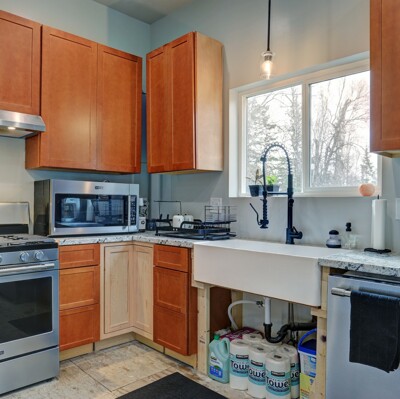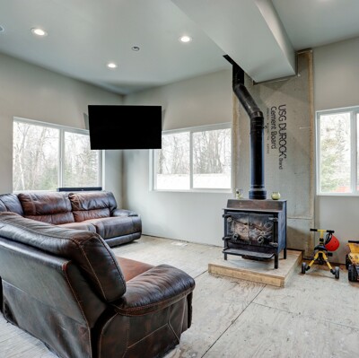 The main house is a 3 bedroom 2 bath 2,437 square foot cozy log home with a full basement, and an addition that could serve as a home office, studio, project or guest room. This house has a newly built attached 3 car garage, unfinished but has material to complete roof. There is an 20x40 detached insulated garage with wood stove, electricity, and water that can be used for a shop or converted to a horse stable. There is also a 15x15 cottage style insulated well house with heat, electricity, and water, and includes material to complete siding. On the back of the property there is a newly built two story 3 bed 2.5 bath 1,536 square foot dwelling that features cathedral ceilings, brand new top of the line appliances, built in speakers in each room throughout, recessed dimmable lighting, modern fixtures, and 6 ft freestanding tub and vessel sink with matte black delta faucets included. Owner is selling as is for buyer to complete with their own desired style of flooring and trim.