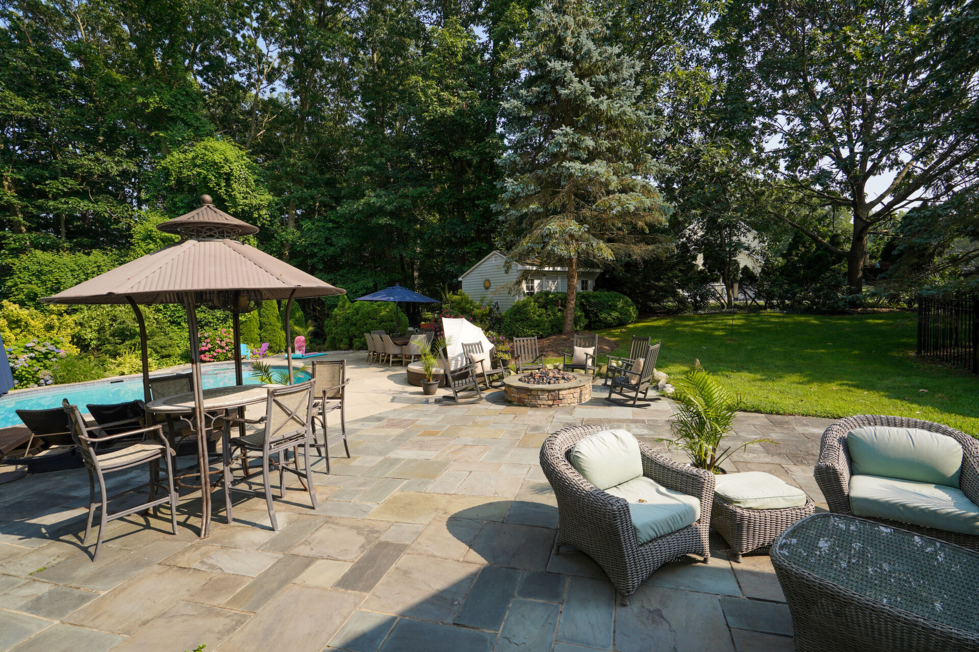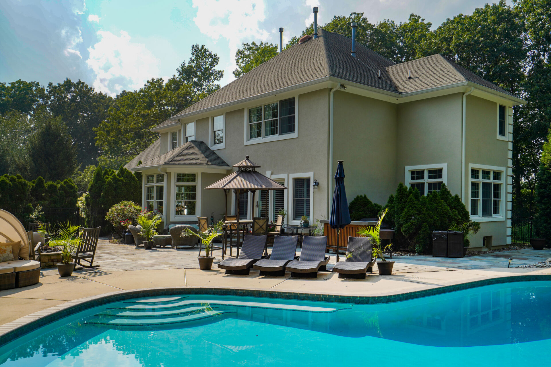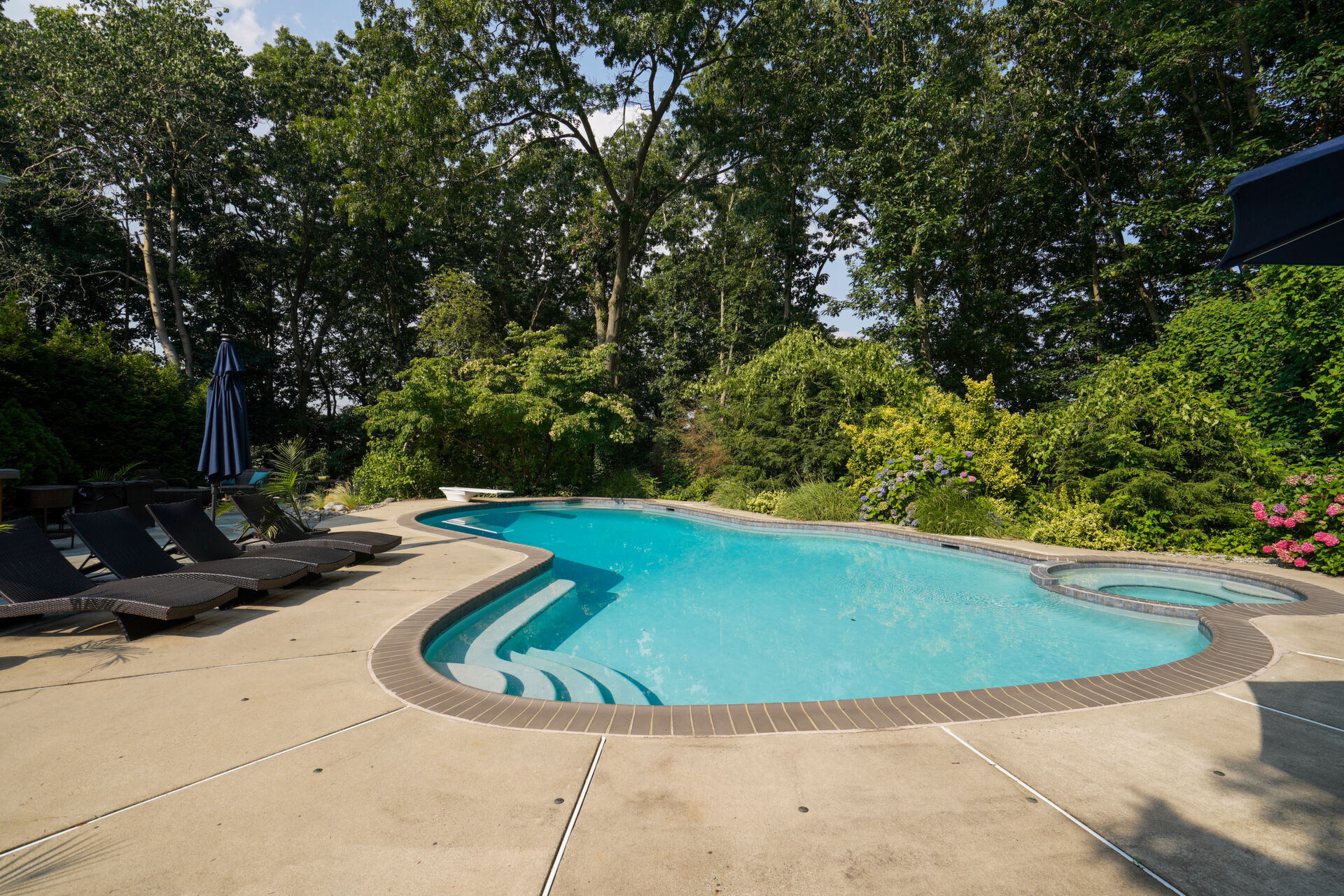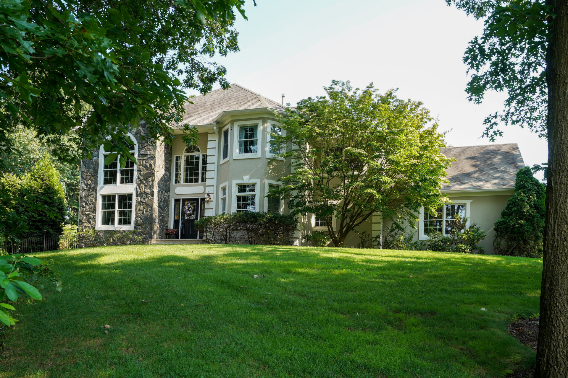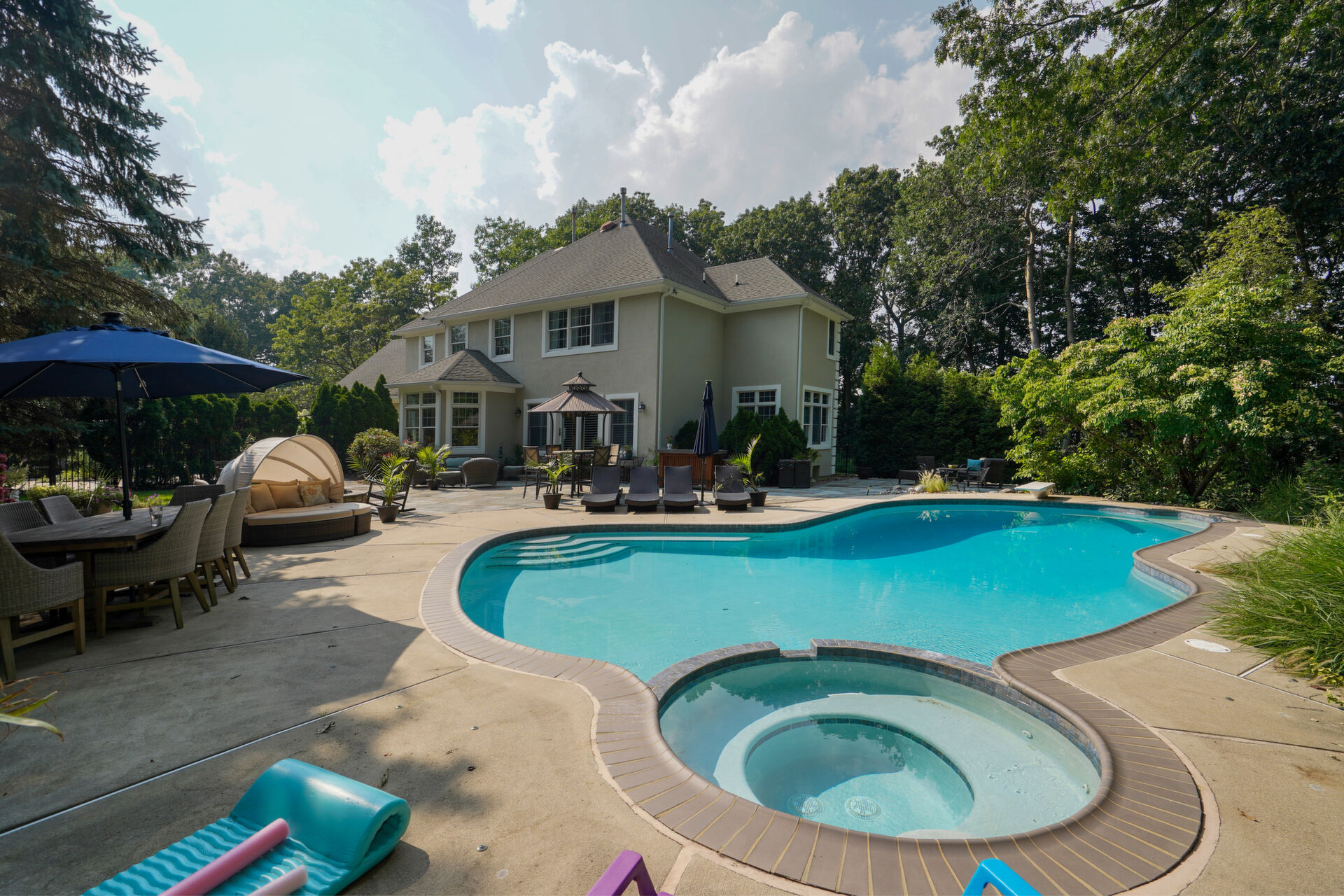 Private, custom colonial nestled on a wooded picturesque lot in one of Wall's most sought after neighborhoods. Newly renovated, warm and elegant kitchen with quartz countertops, center island, high-end appliances and double sided fireplace adjoined to family room. The breakfast nook overlooks the beautiful manicured property and is an inspirational added bonus to the light-filled open floorplan. The master bath is not to be missed with custom double sink cabinetry , oversized shower and air bubble massage tub with heater. Step outside onto the blue stone patio with built-in firepit and custom inground pool and spa. Paradise awaits you!