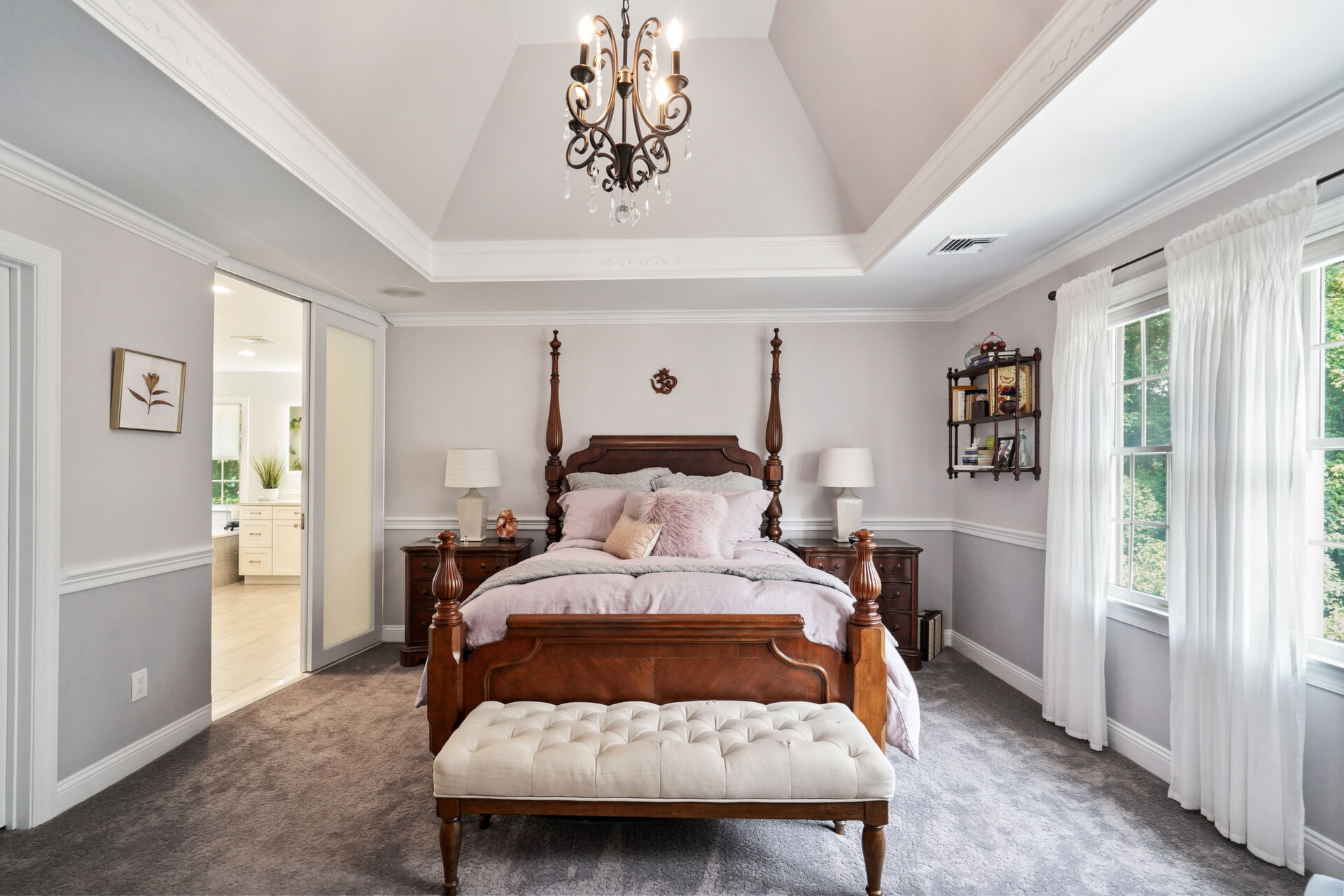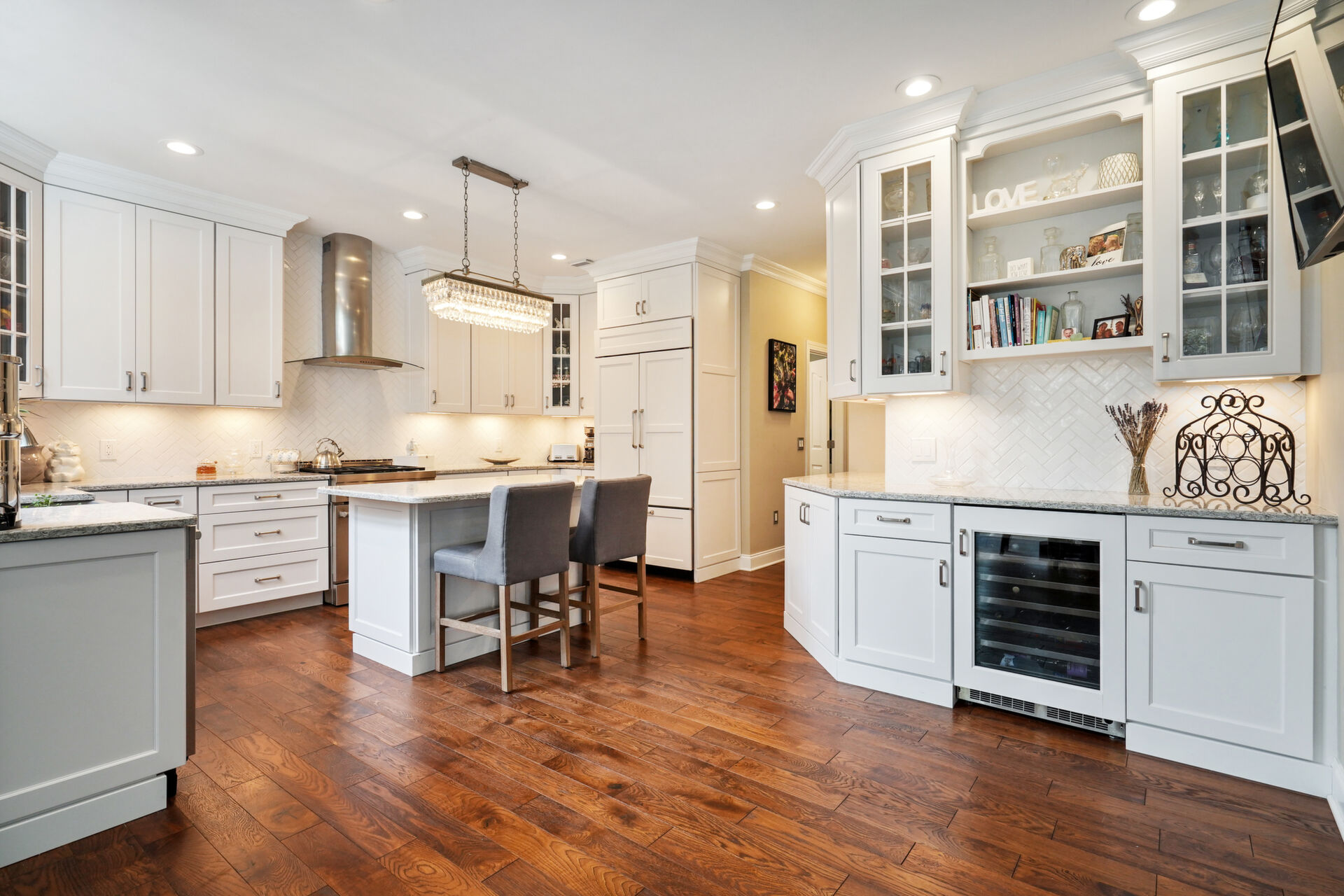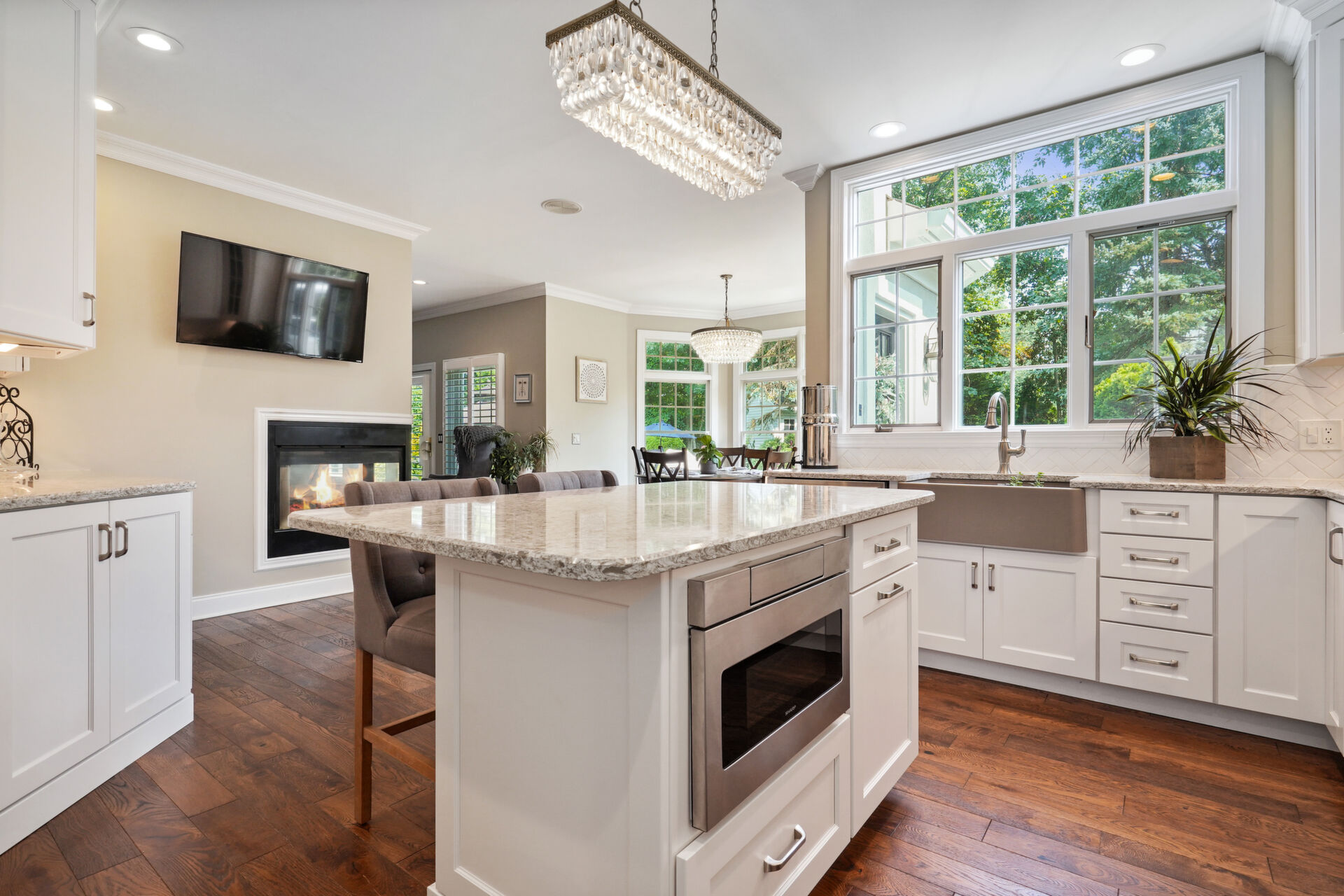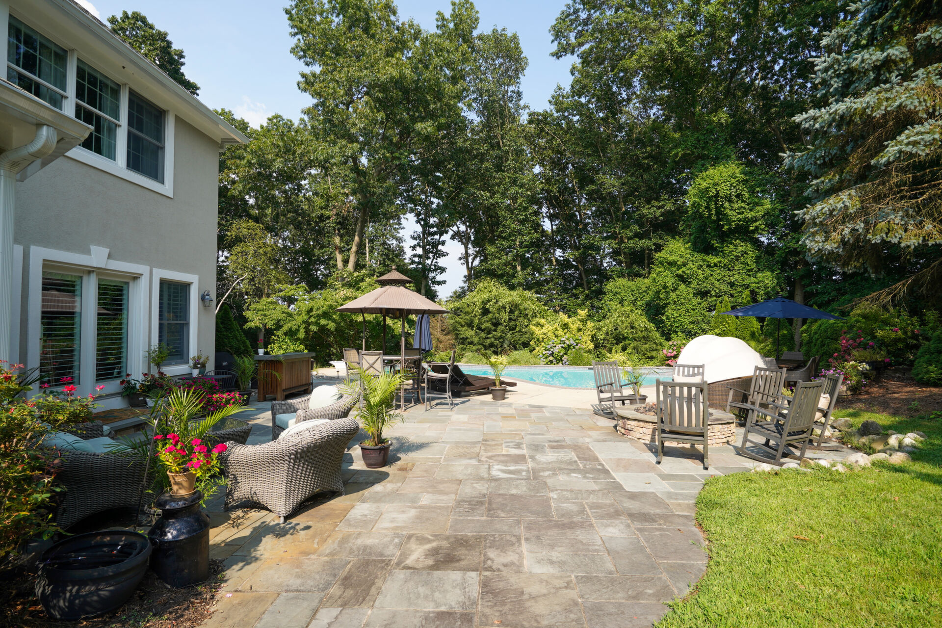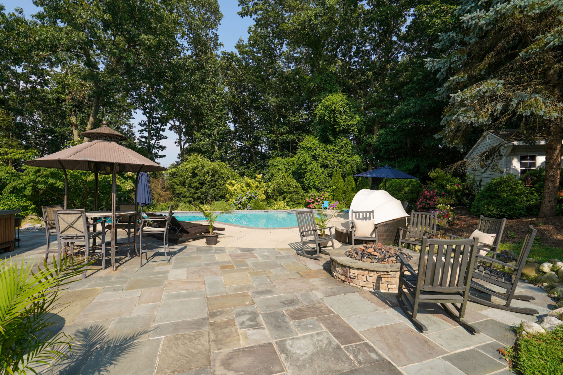 Private, custom colonial nestled on a wooded picturesque lot in one of Wall's most sought after neighborhoods. Newly renovated, warm and elegant kitchen with quartz countertops, center island, high-end appliances and double sided fireplace adjoined to family room. The breakfast nook overlooks the beautiful manicured property and is an inspirational added bonus to the light-filled open floorplan. The master bath is not to be missed with custom double sink cabinetry , oversized shower and air bubble massage tub with heater. Step outside onto the blue stone patio with built-in firepit and custom inground pool and spa. Paradise awaits you!