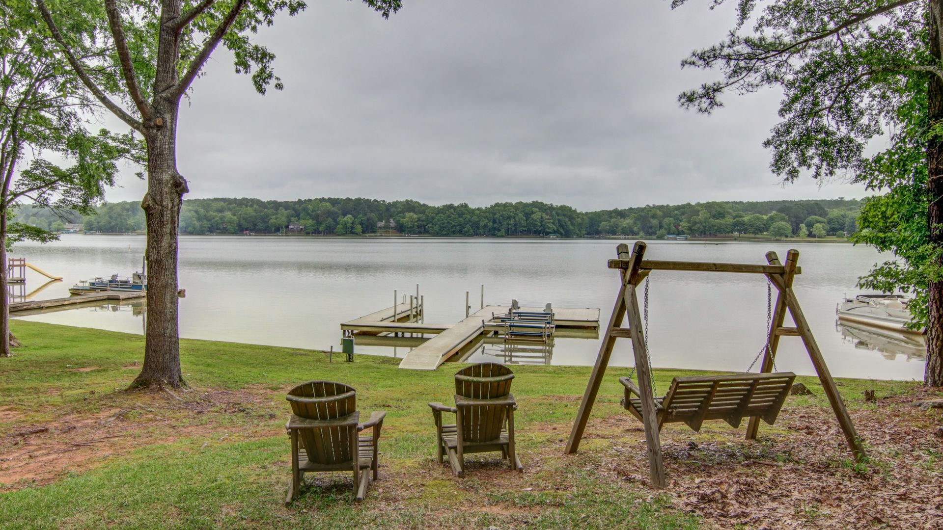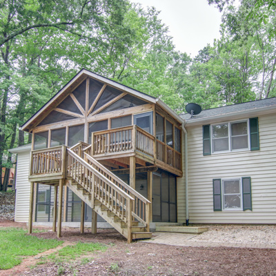 emodeled lakefront home with huge main lake views sits on a gently sloping wooded lot with a max dock and 100+ feet of water frontage. With 2864+/- sq feet there is room for everyone. Tongue & groove ceiling & walls in vaulted great room. Kitchen has granite counter tops/stainless steel appliances. Heart pine floors in GR/KIT/DR. Split bedroom plan with bedrooms and baths on both sides of the Great Room. Vaulted screened porch off the Great Room for relaxing days just watching the water. All rooms are wired for flat screen TV's. Daylight basement has 2 bedrooms, a bath and extra room for storage and a screened porch. Prof landscaping. Community boat ramp. Morgan Cty school system. Easy access to Atlanta and to Athens.